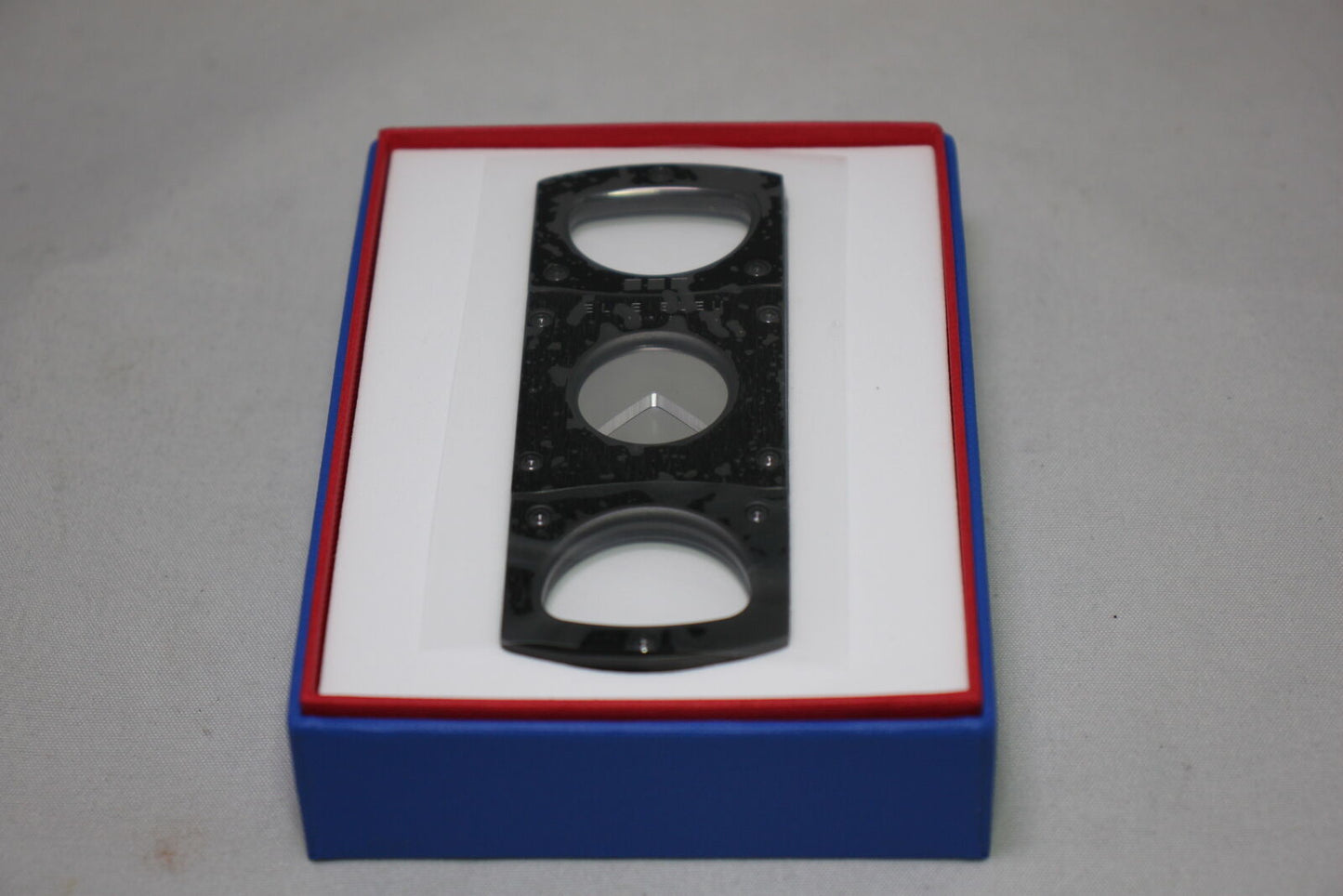 Elie Bleu 2 Finger, Double V, Cigar Cutter, Black Finish | EBC1001 New In Box