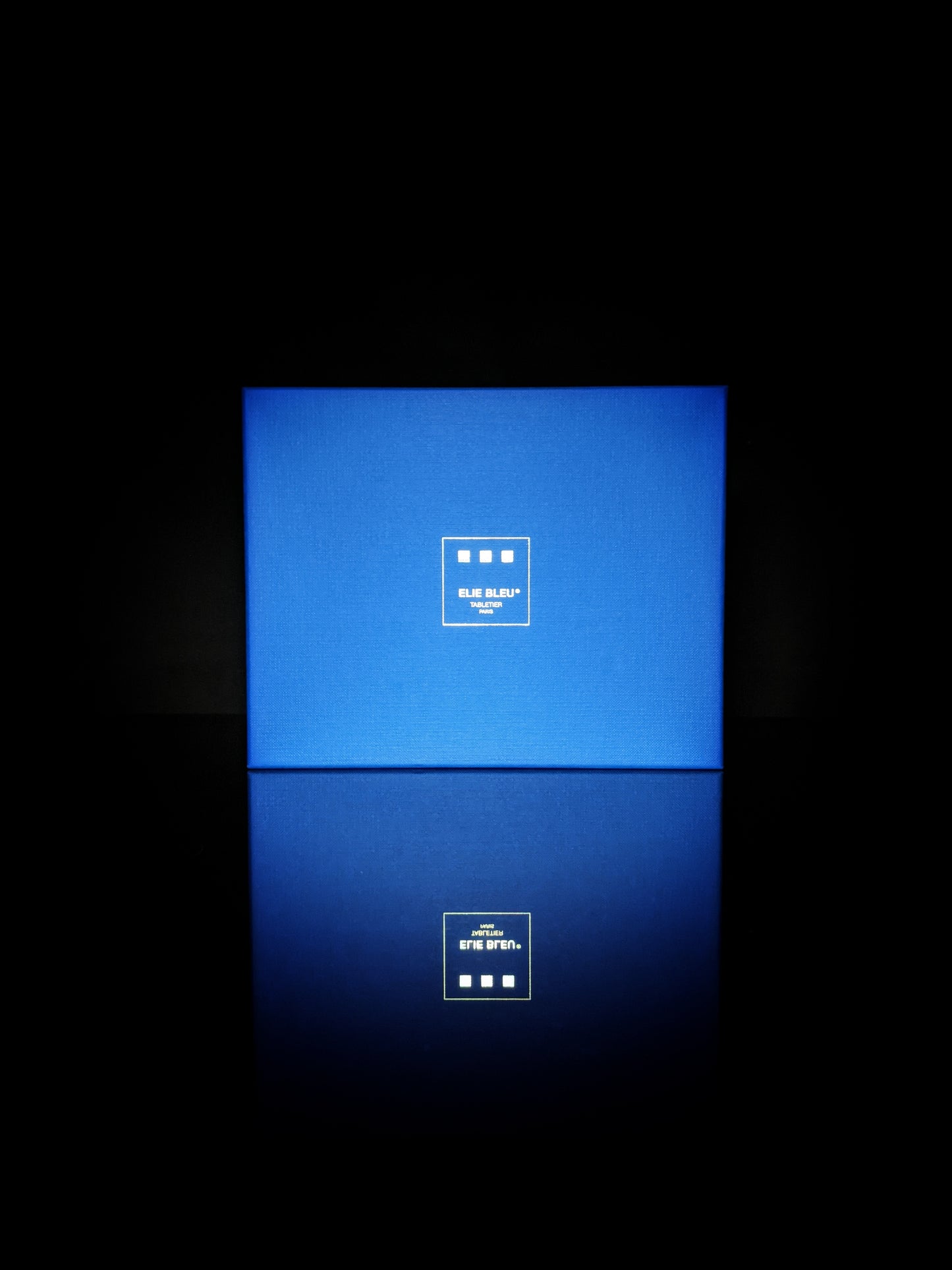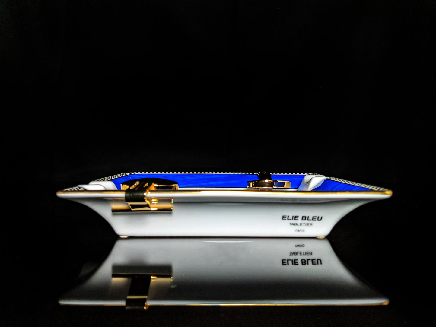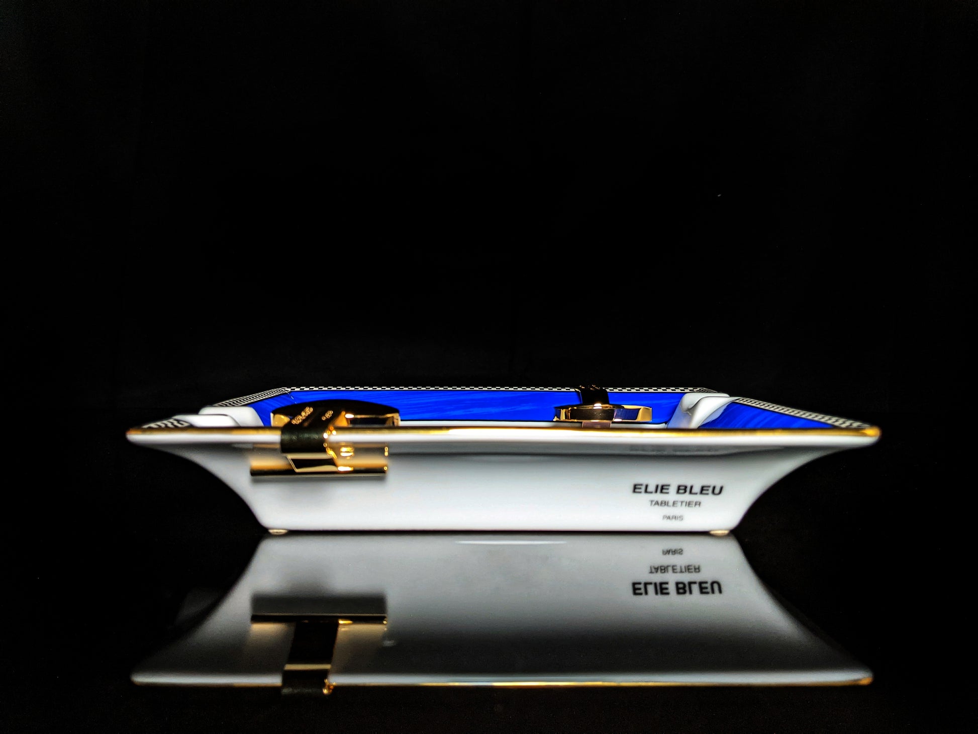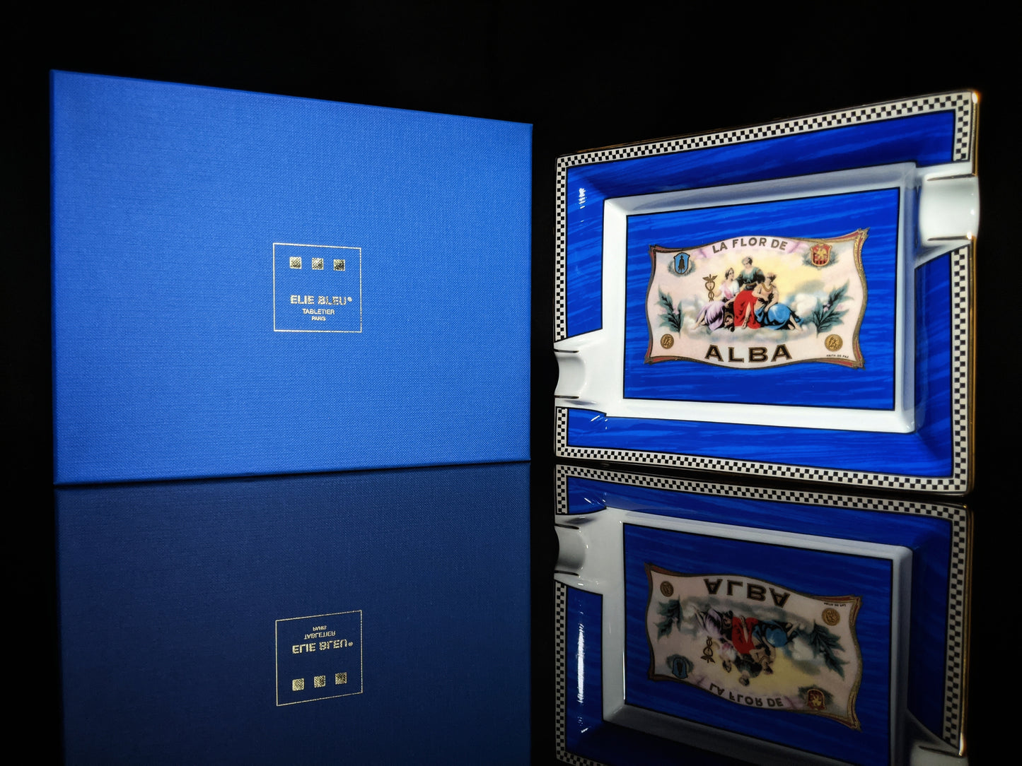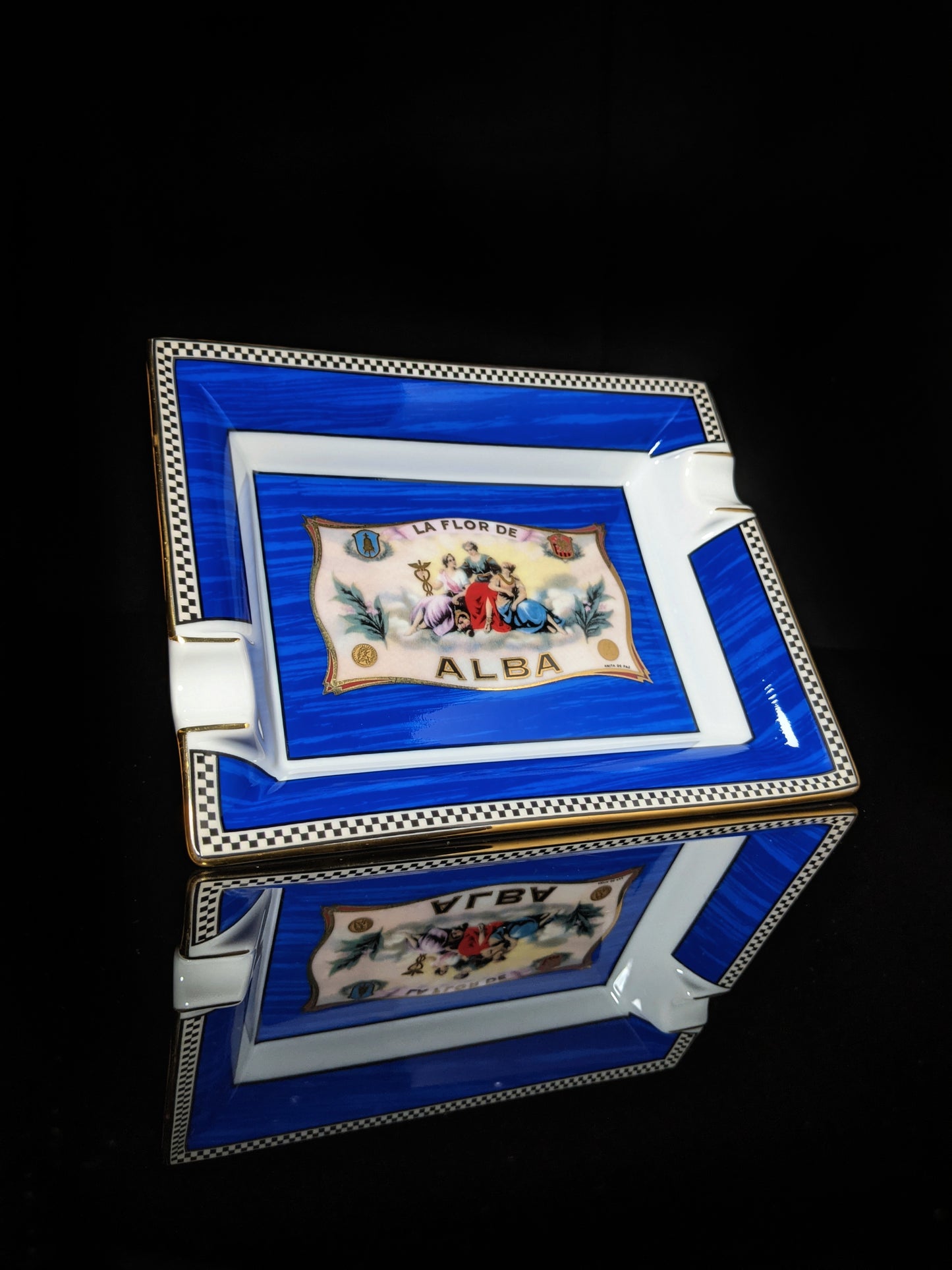 Elie Bleu Alba Porcelain Blue Ashtray with Gold Plated Rests NIB
