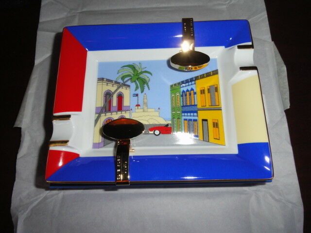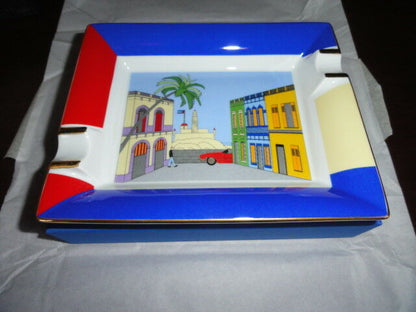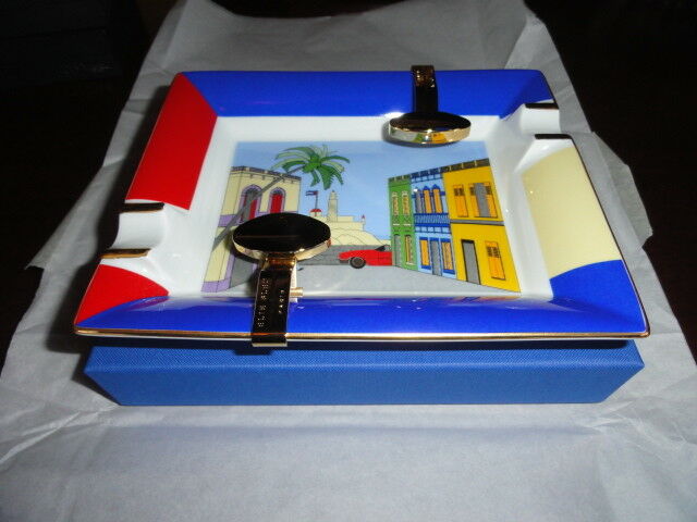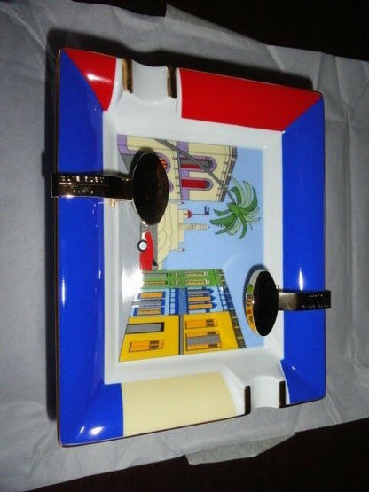 Elie Bleu Casa Collection Porcelain Ashtray with Gold Plated rests
