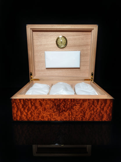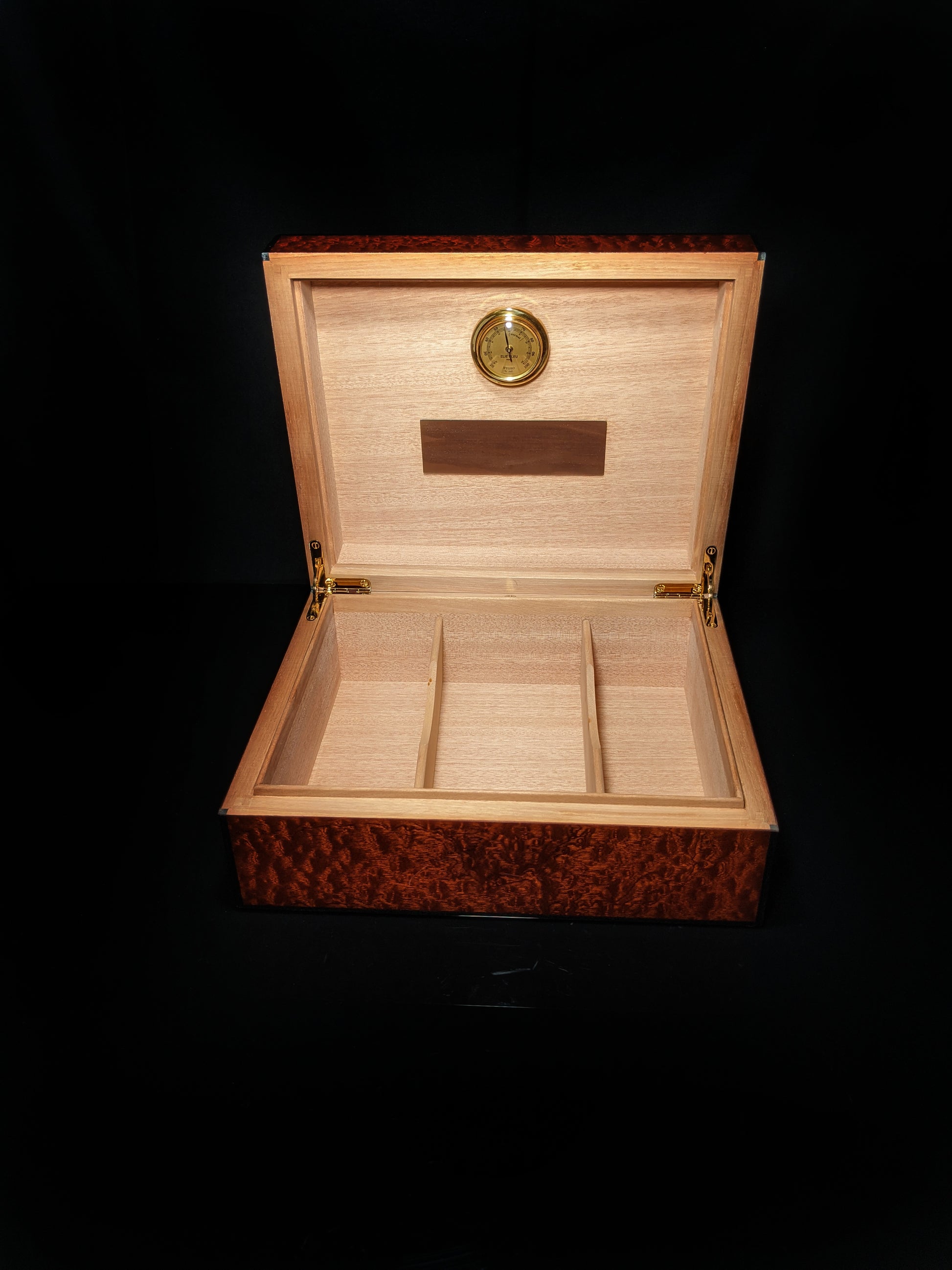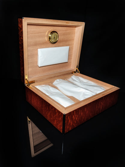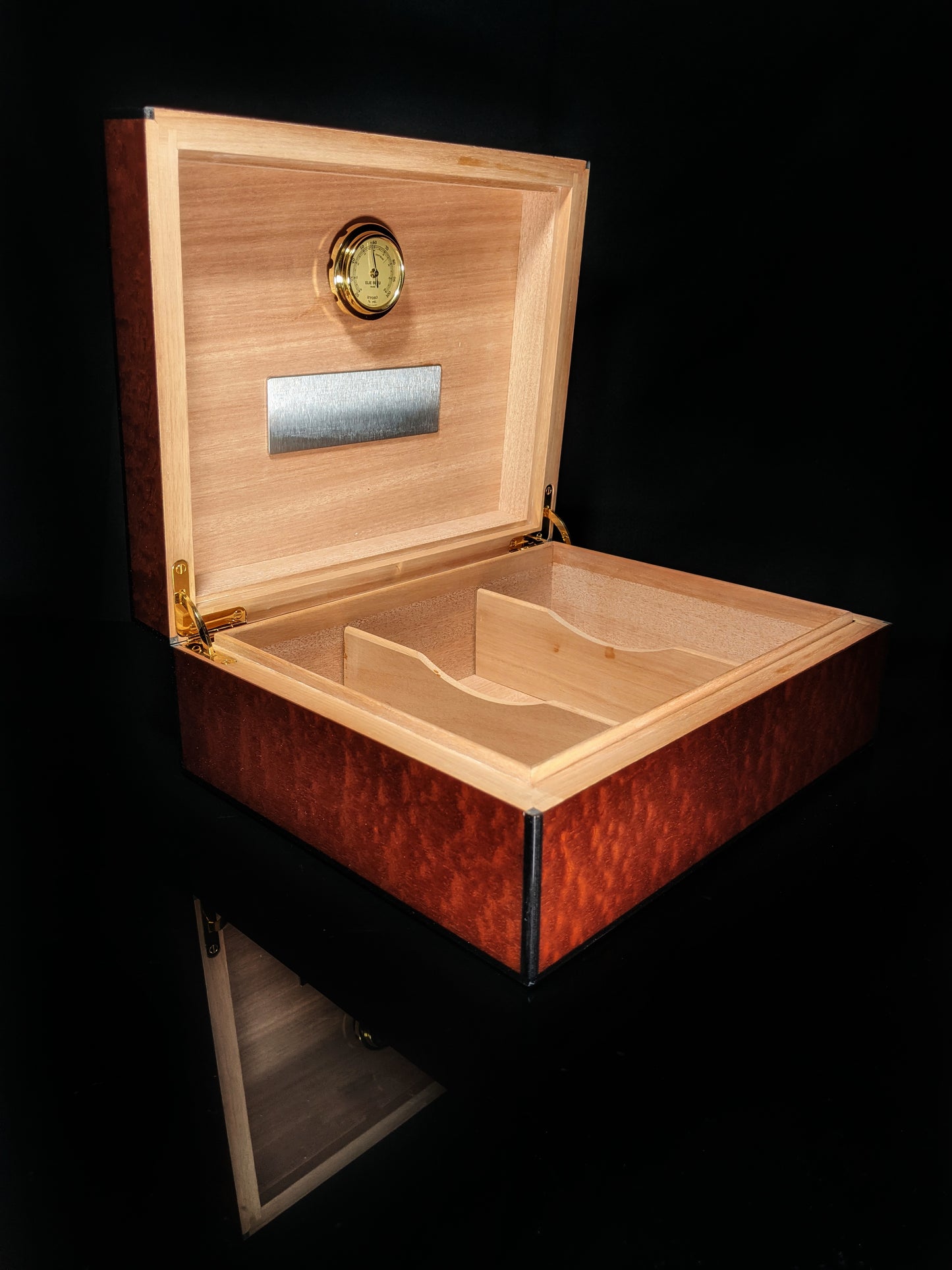 This is a new Elie Bleu Dappled Sapele humidor 75 count. Made in France. We ship Worldwide fully insured with signature required.