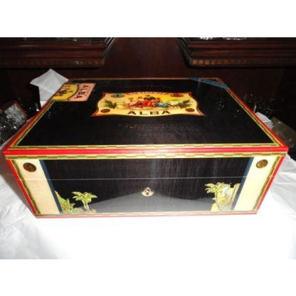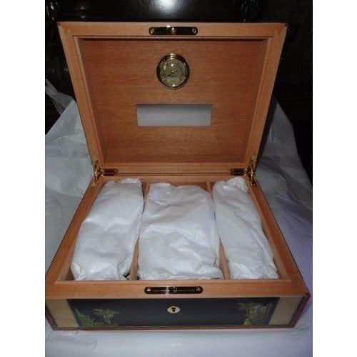 This is a new Elie Bleu Alba Black Sycamore Wood 75 count Humidor. Comes in the original Elie Bleu Presentation Box . Has Elie Bleu Humidifier , 2-dividers and locking lid with key . In stock ready to ship. We Ship fully insured. Signature is required upon delivery. Thank you!