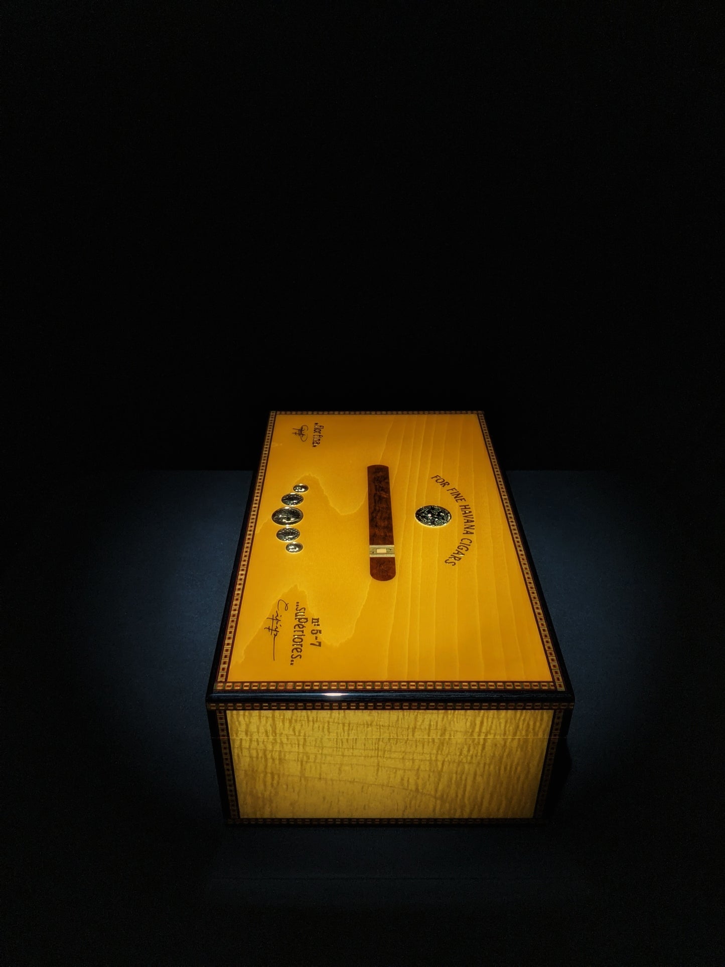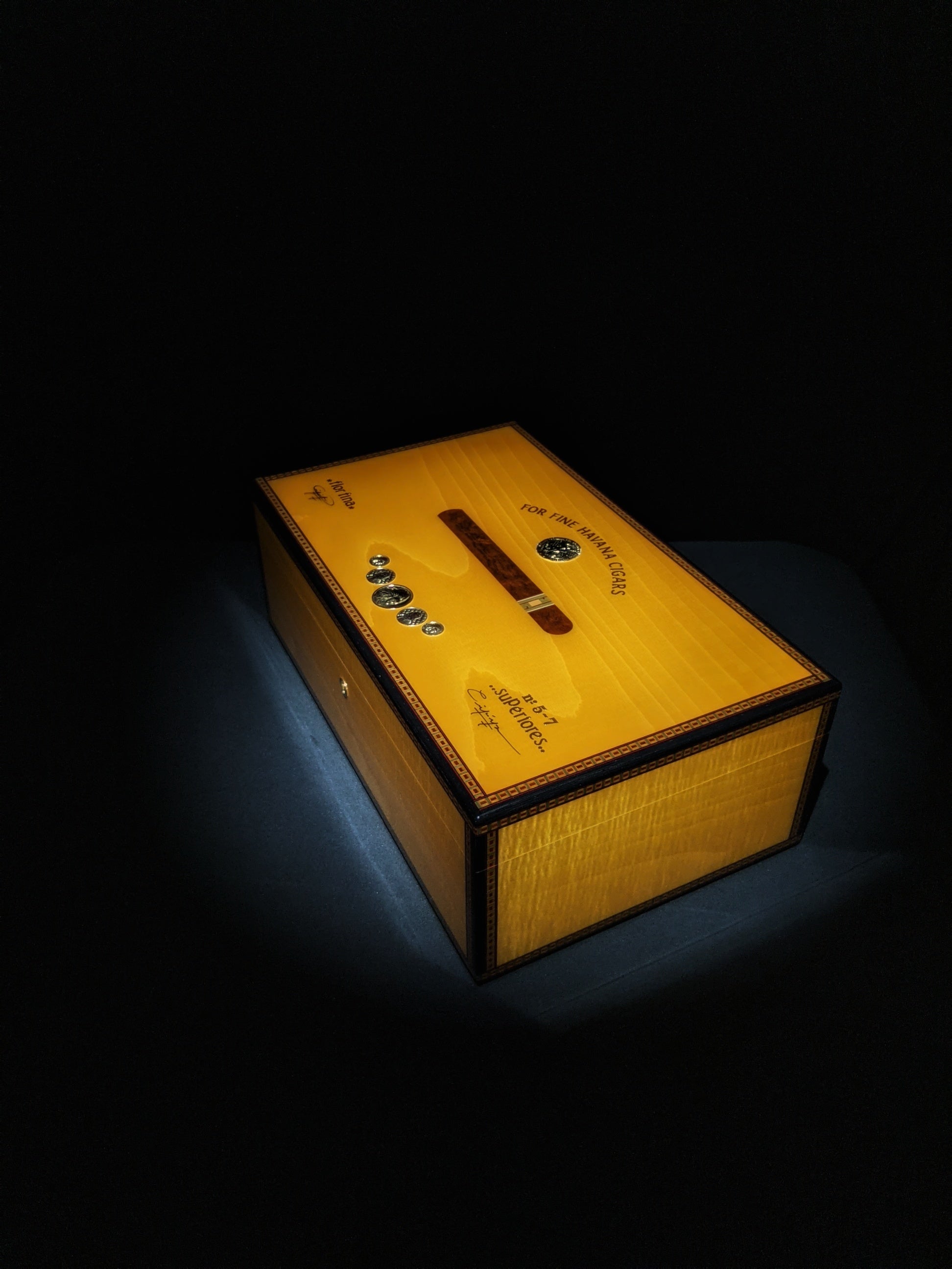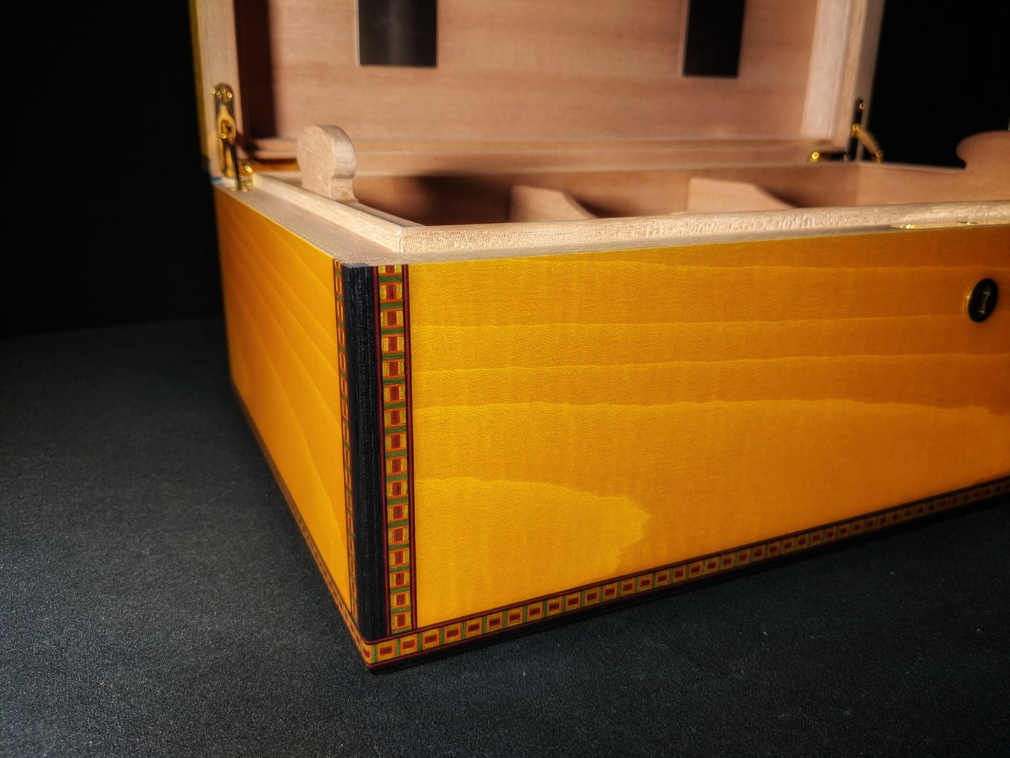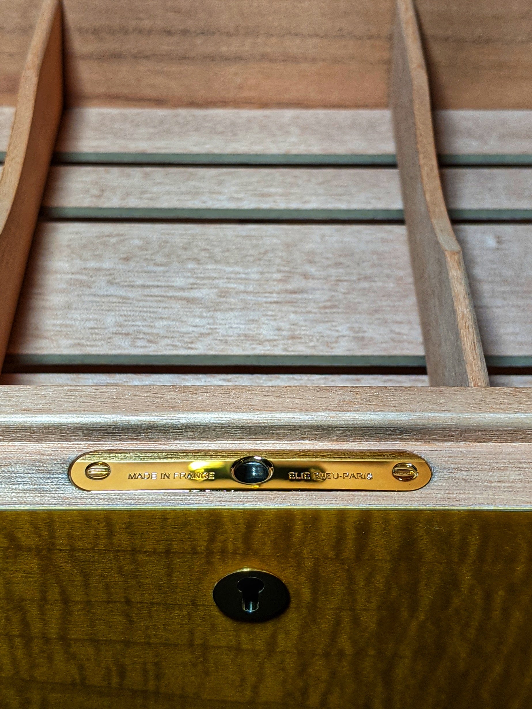 This is a new Elie Bleu Medals Yellow Sycamore Wood Humidor 120 count. Made in France. Comes in the factory presentation box complete with all contents. We ship fully insured with signature required.
