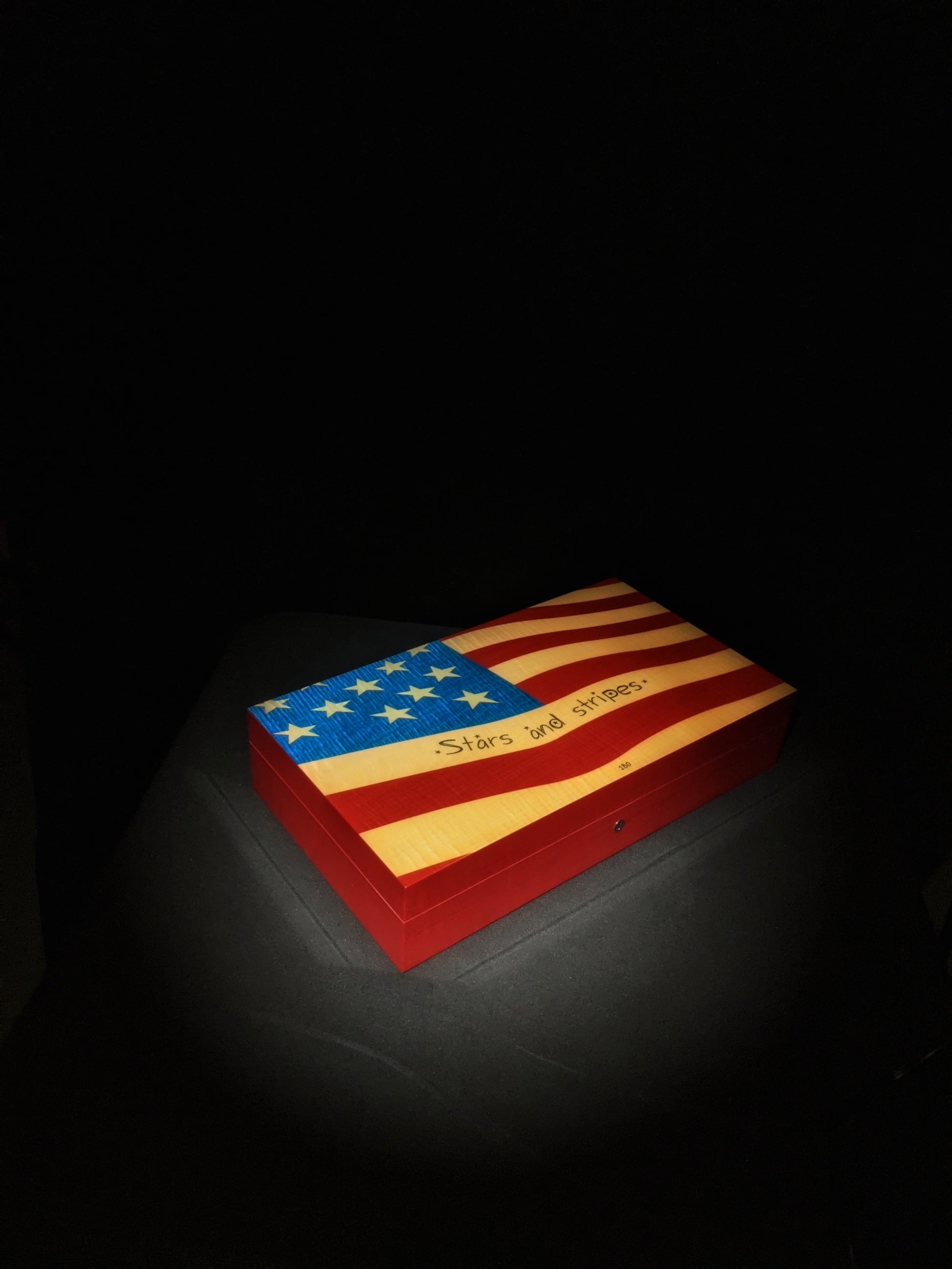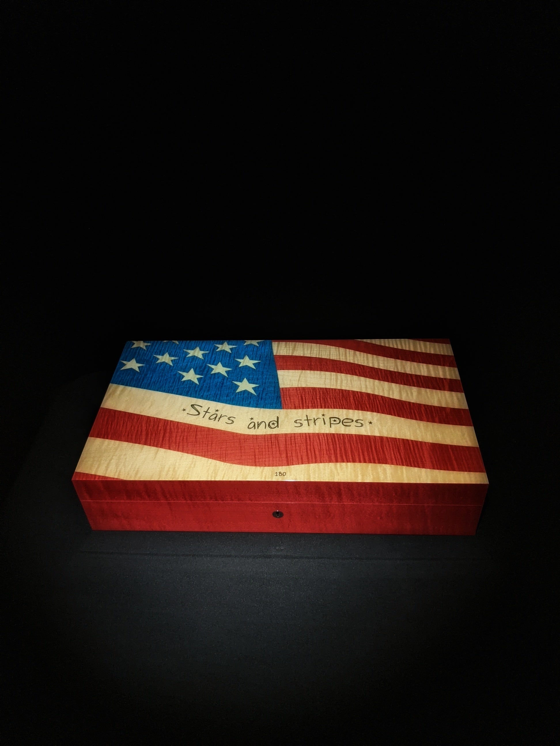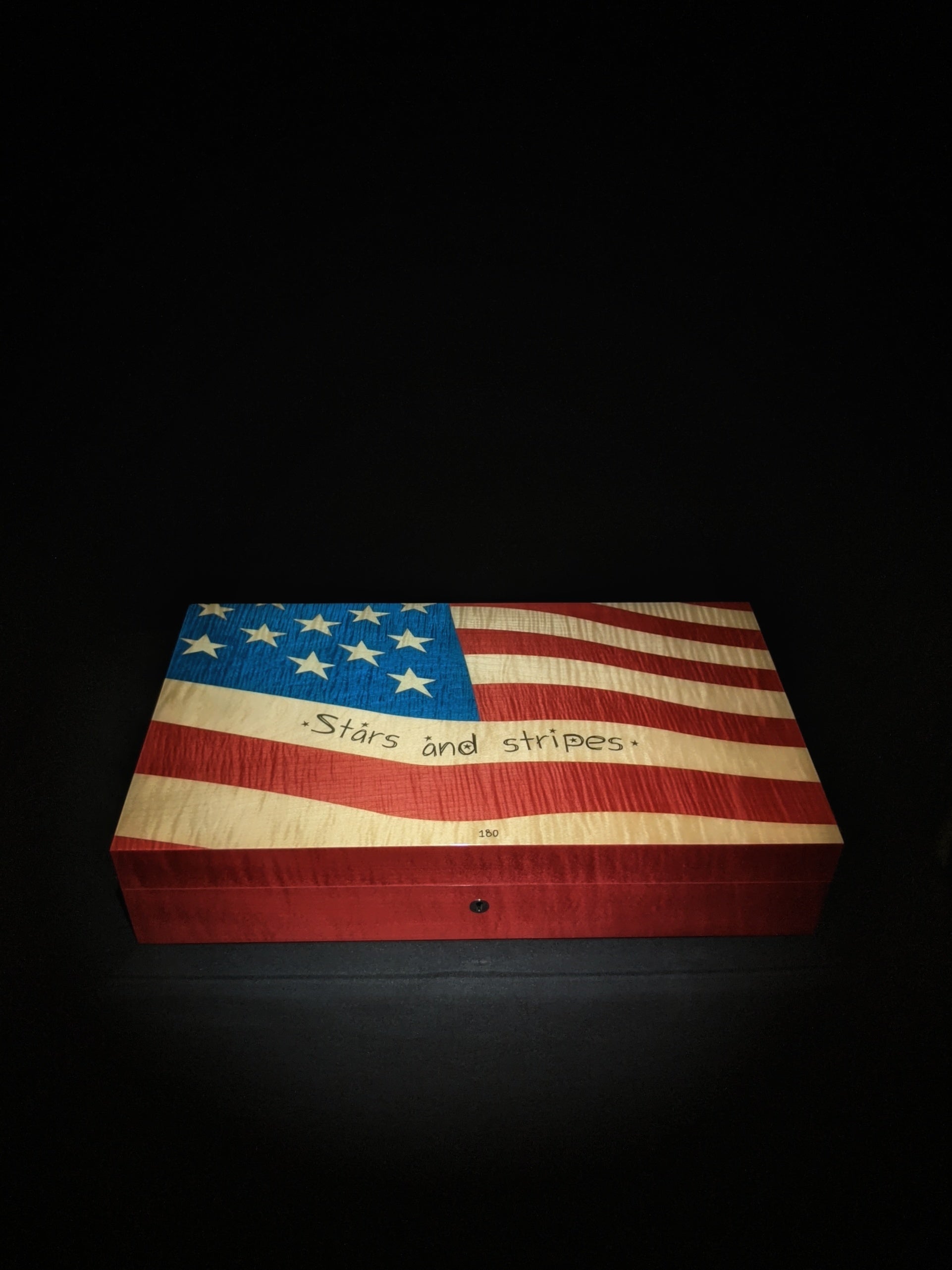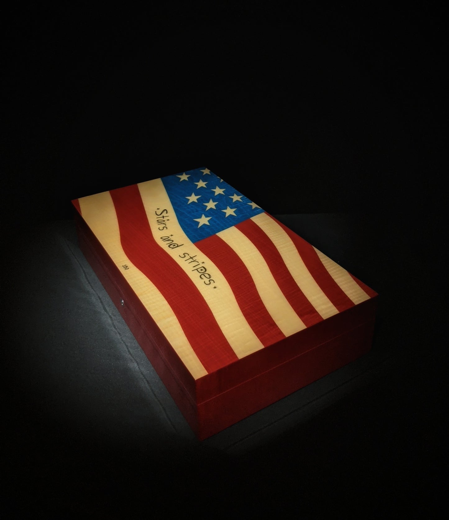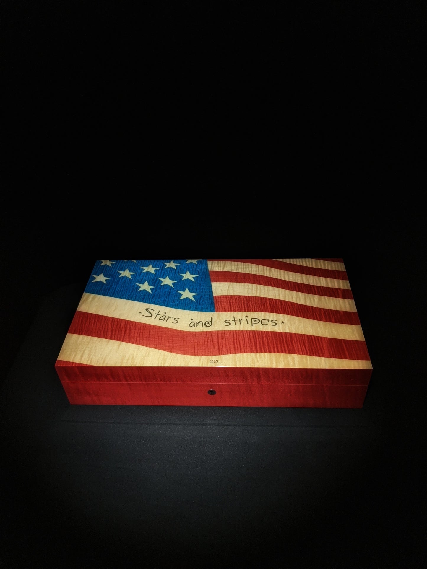 Brand new Elie Bleu Stars and Stripes 110 ct humidor. Made in France.