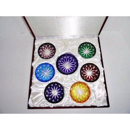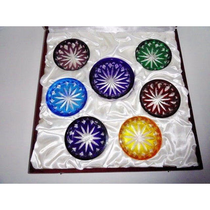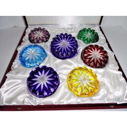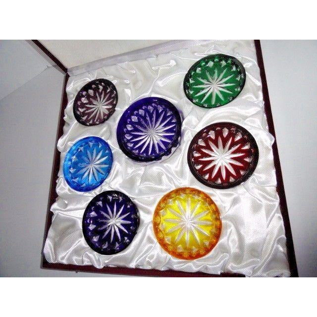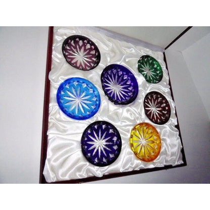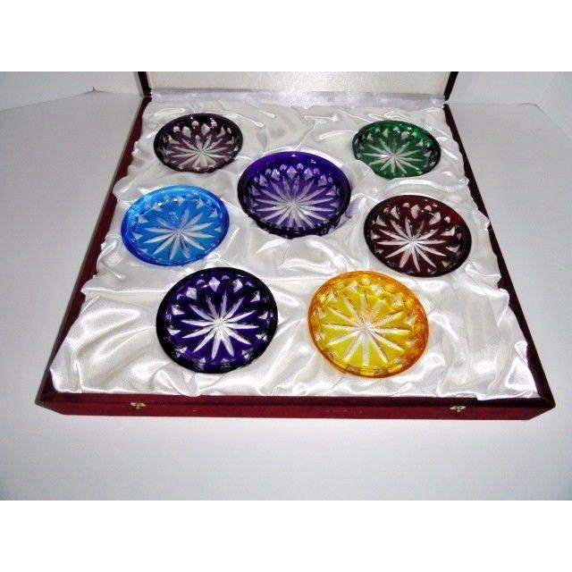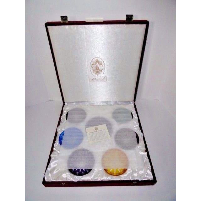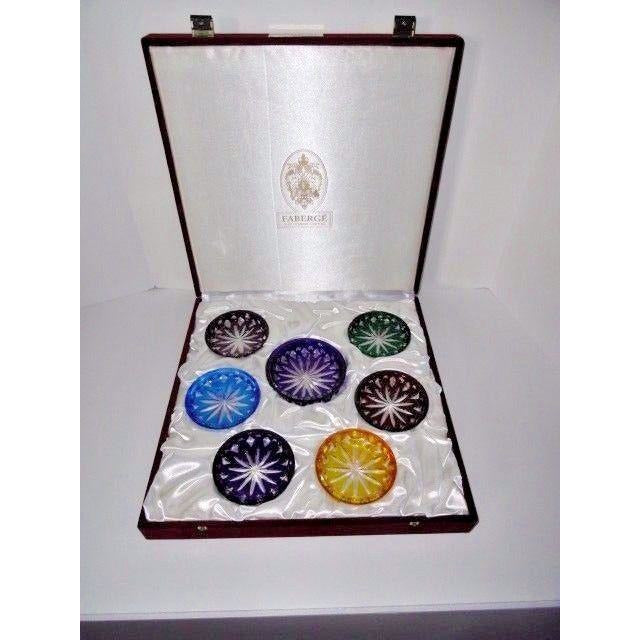 This is a preowned set of Faberge Multi-colored crystal coasters . This was a VIP gift from Caesars Palace. Good condition. Doesn't appear to ever been used. We Ship Worldwide fully insured. Signature required upon delivery.