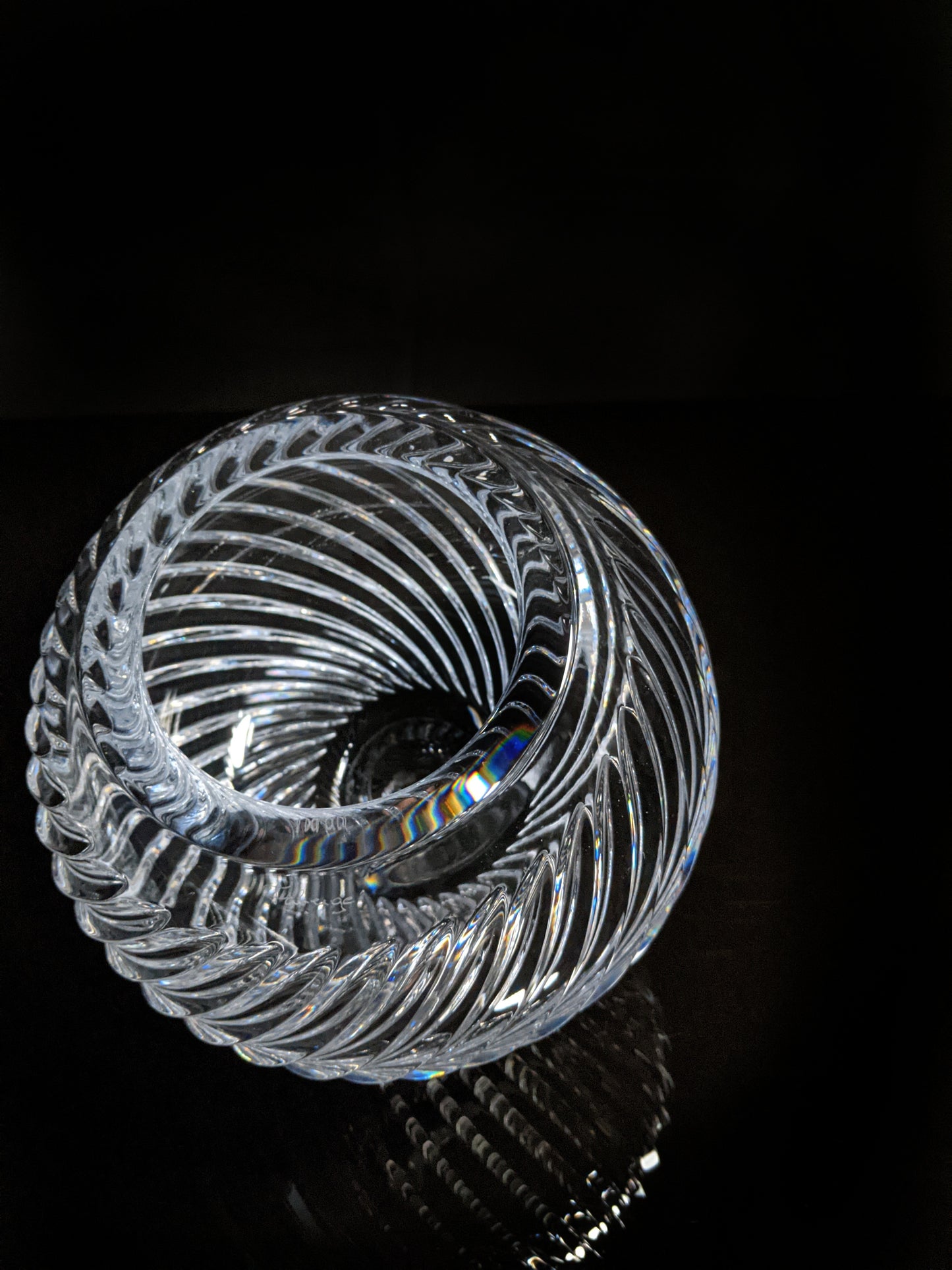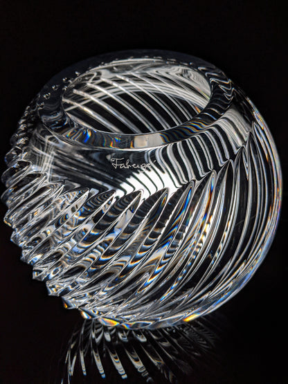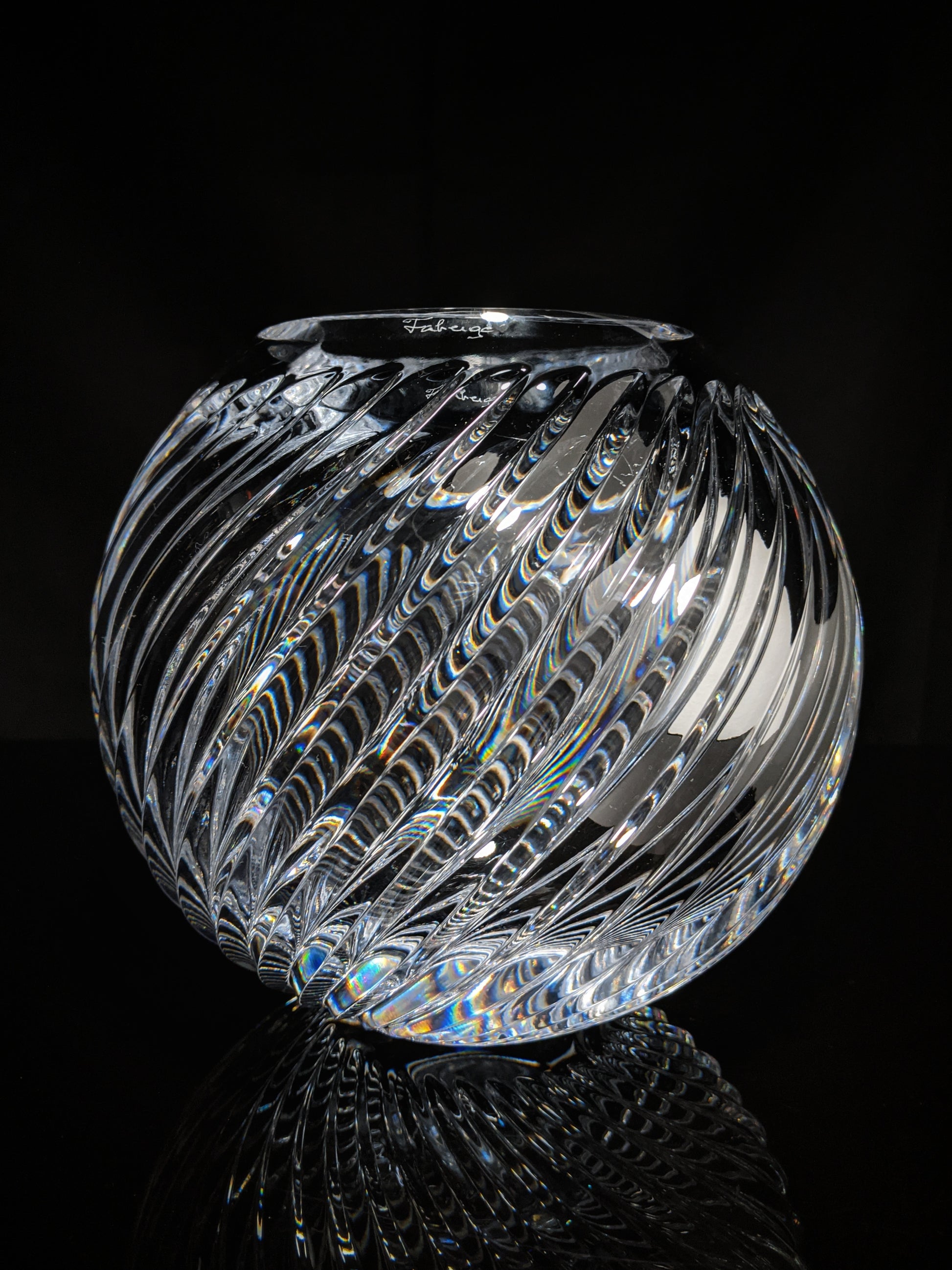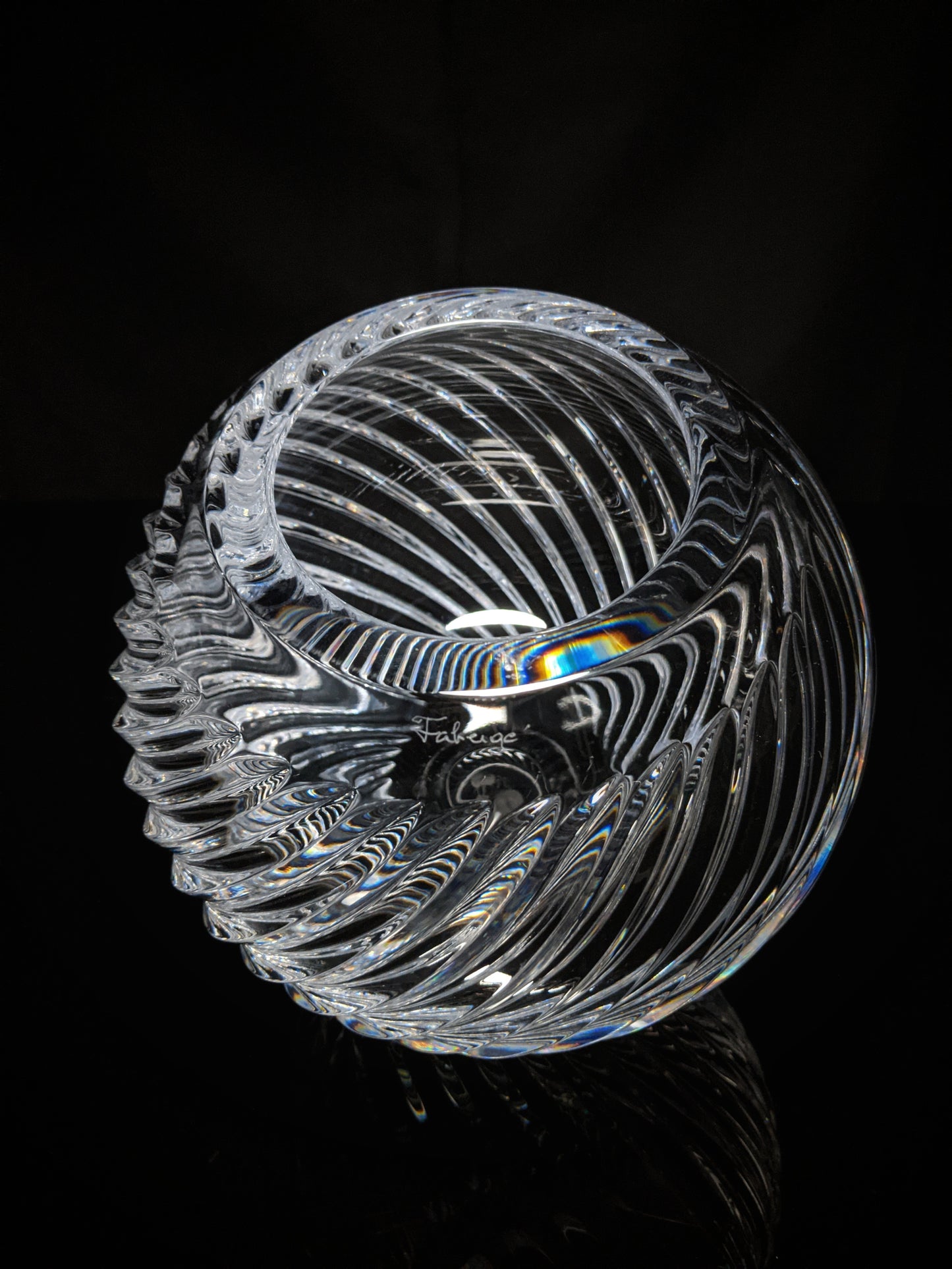 This is a new Faberge Atelier Crystal Collection Vase . Handcrafted in Slovenia . Made from stunning clear Atelier Crystal. Perfectly clear, flawless and sparkling hand cut crystal. Beautifully presented in a royal blue Faberge Box. Measures approx 9" in diameter and stands 7.5" Tall with a 3.75" opening. Weighs almost 11 pounds. We ship Worldwide fully insured