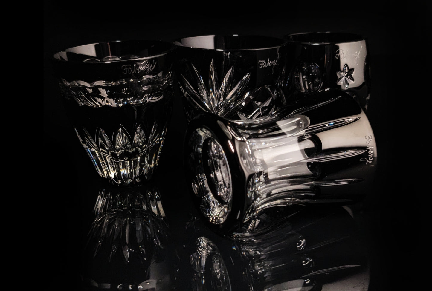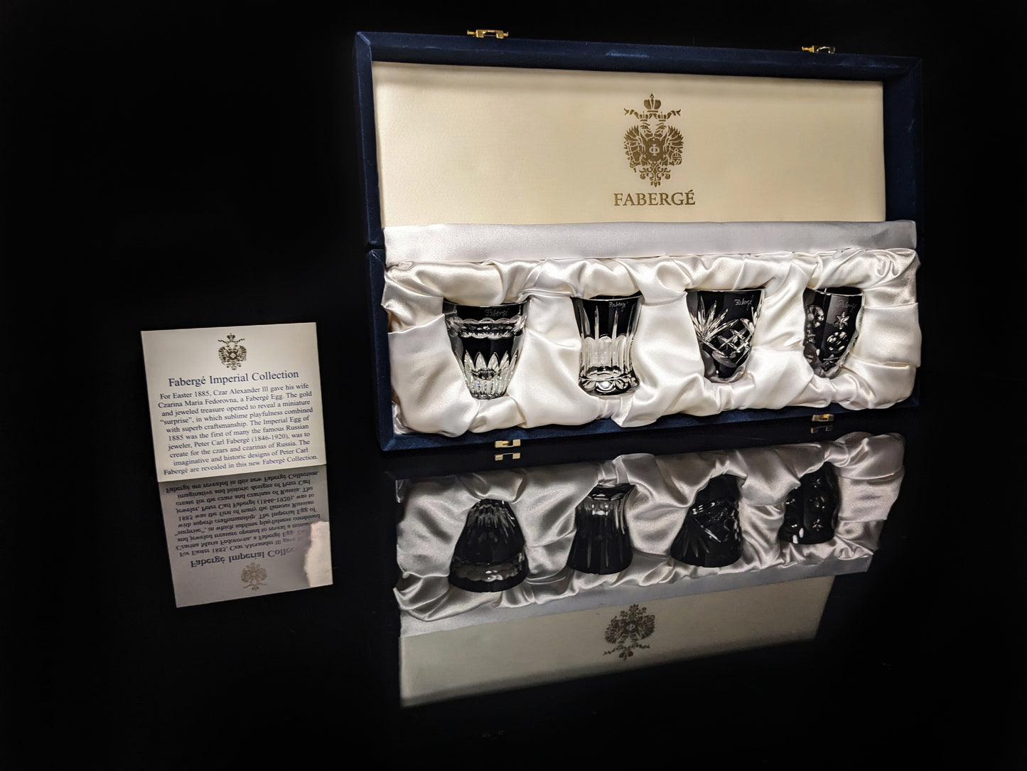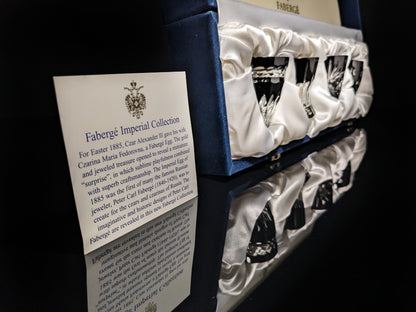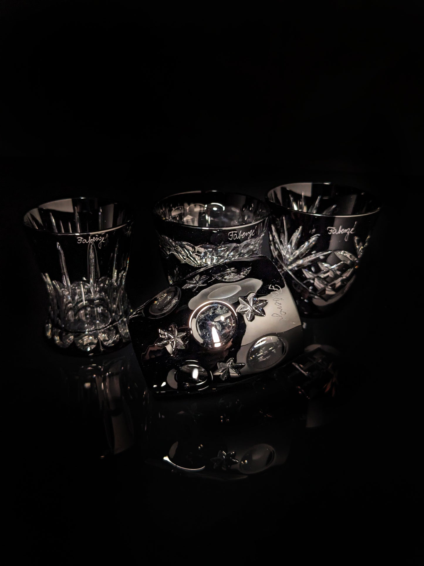 Faberge Black Shot Glasses in the original faberge case. Made in Slovenia. We ship worldwide fully insured. Signature is required upon delivery.