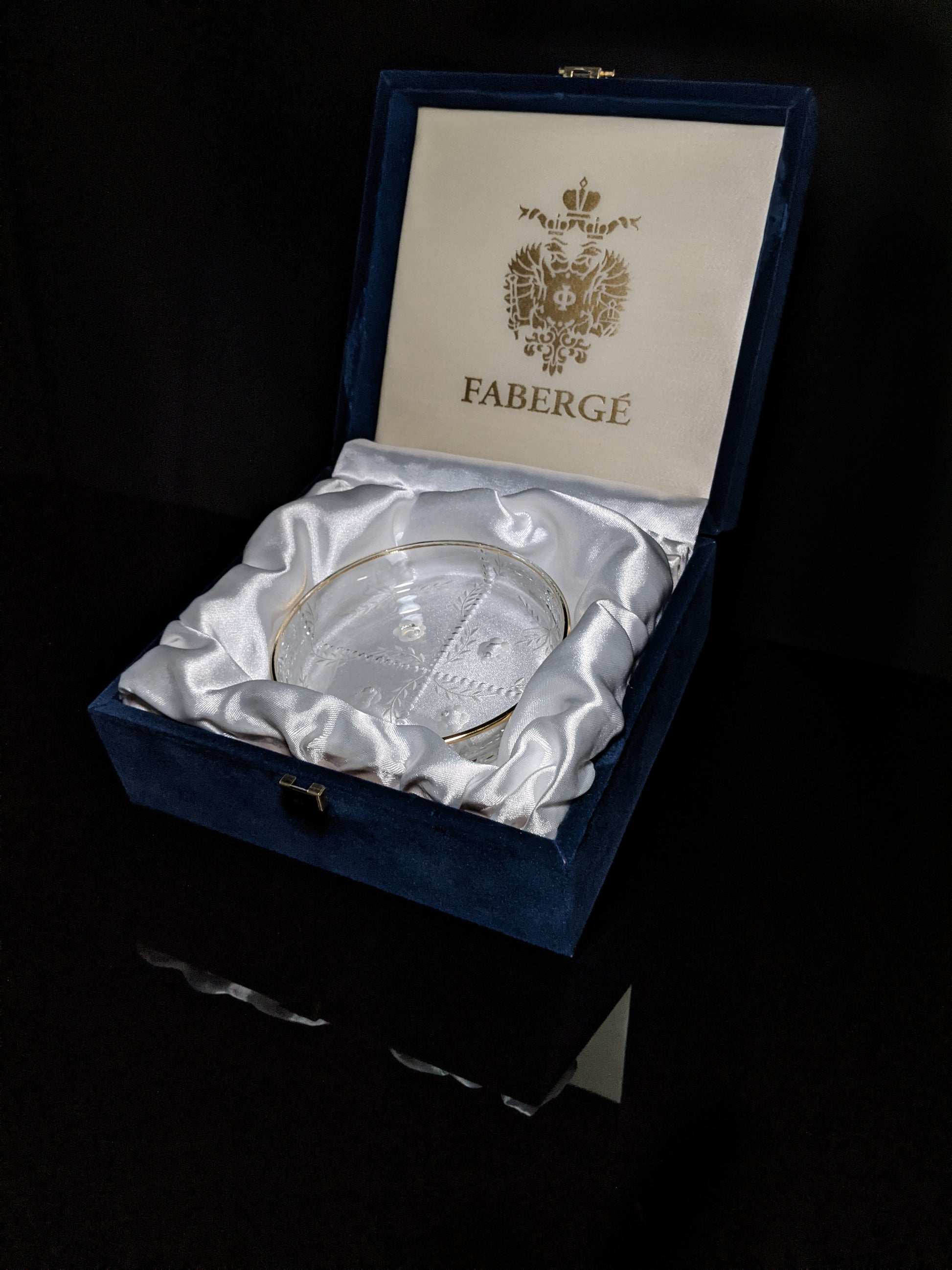 This is a new Faberge Louis XVI Bottle Coaster in the original box. Style # : 504-33 . Measures approx 4.75" in diameter by 1" . We ship Worldwide fully insured. Signature required upon delivery.