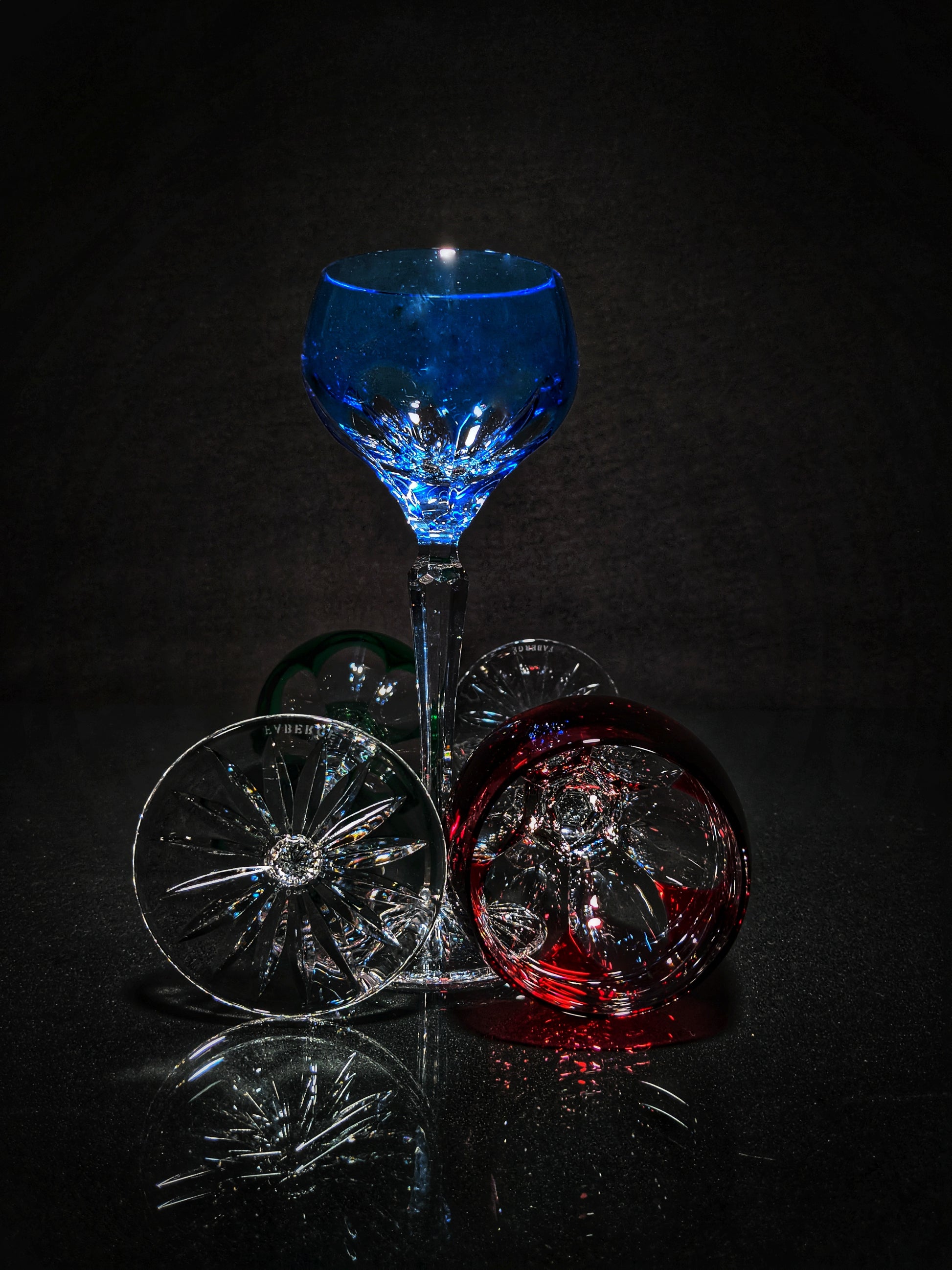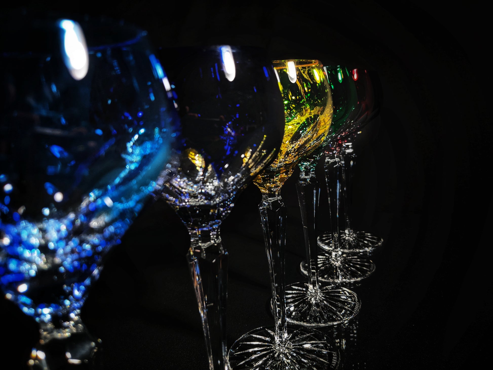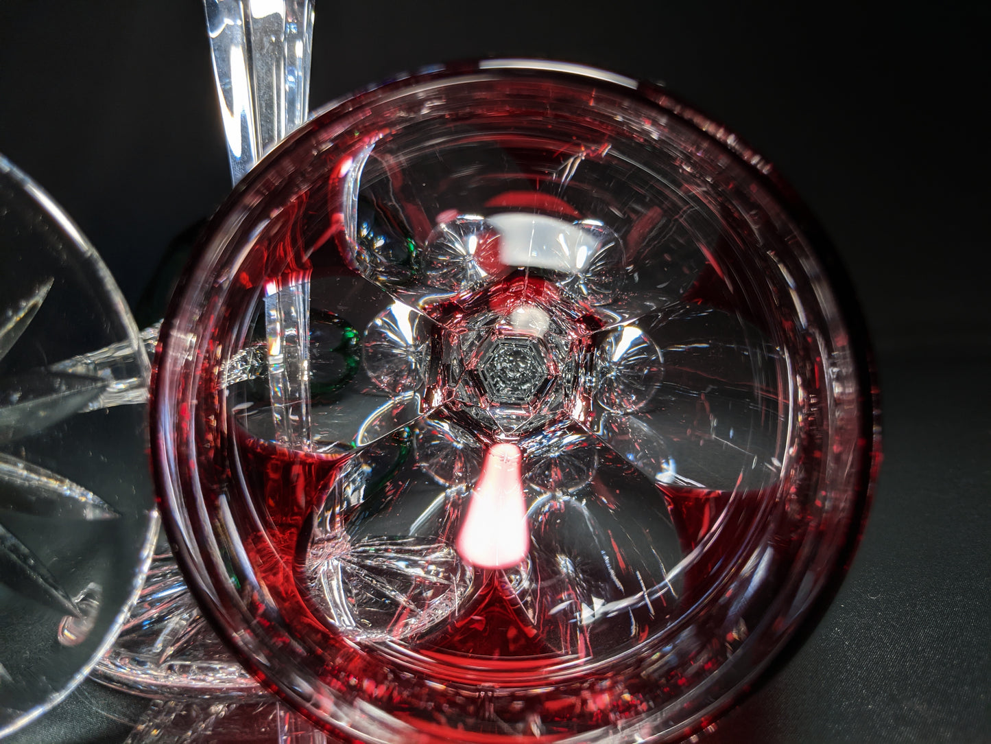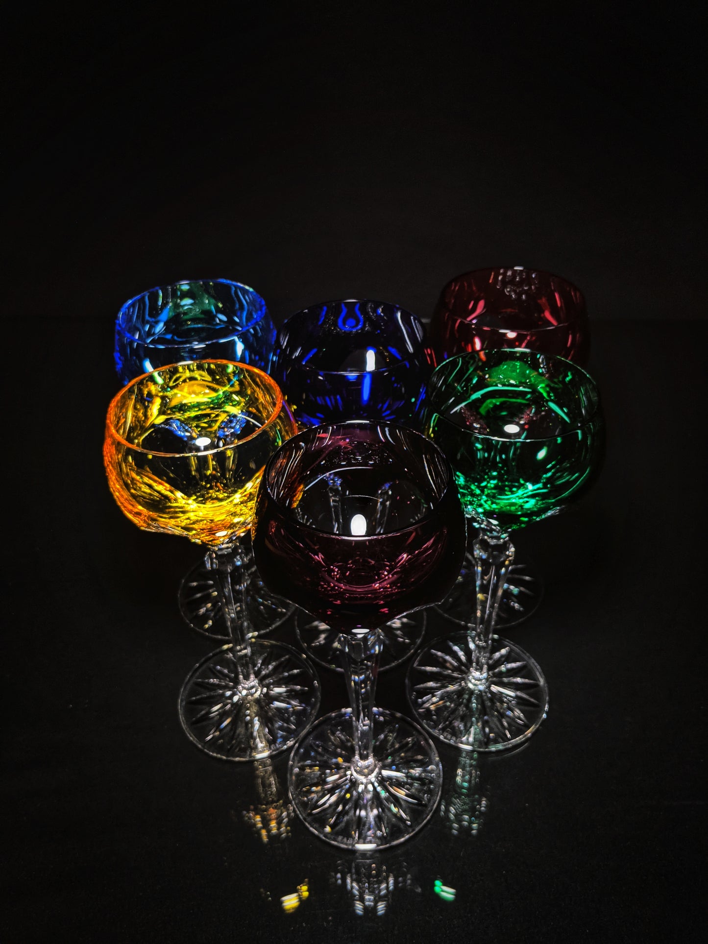 Faberge Colored Crystal Lausanne Hock Glasses. 8 1/2" H x 3 1/4" W