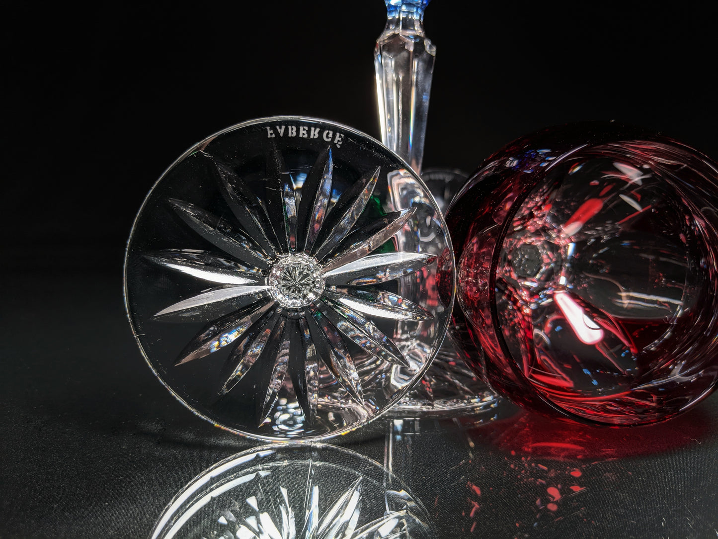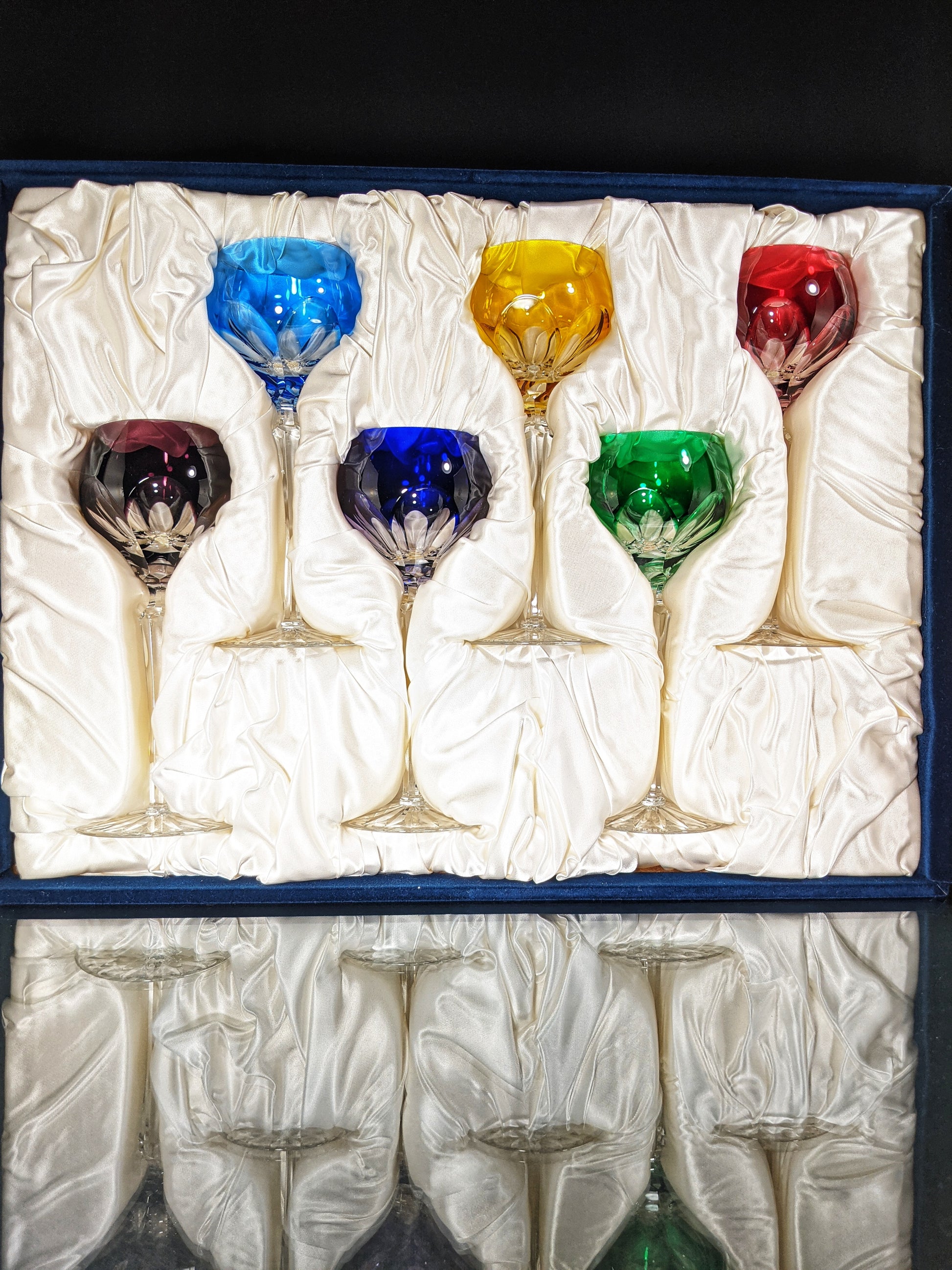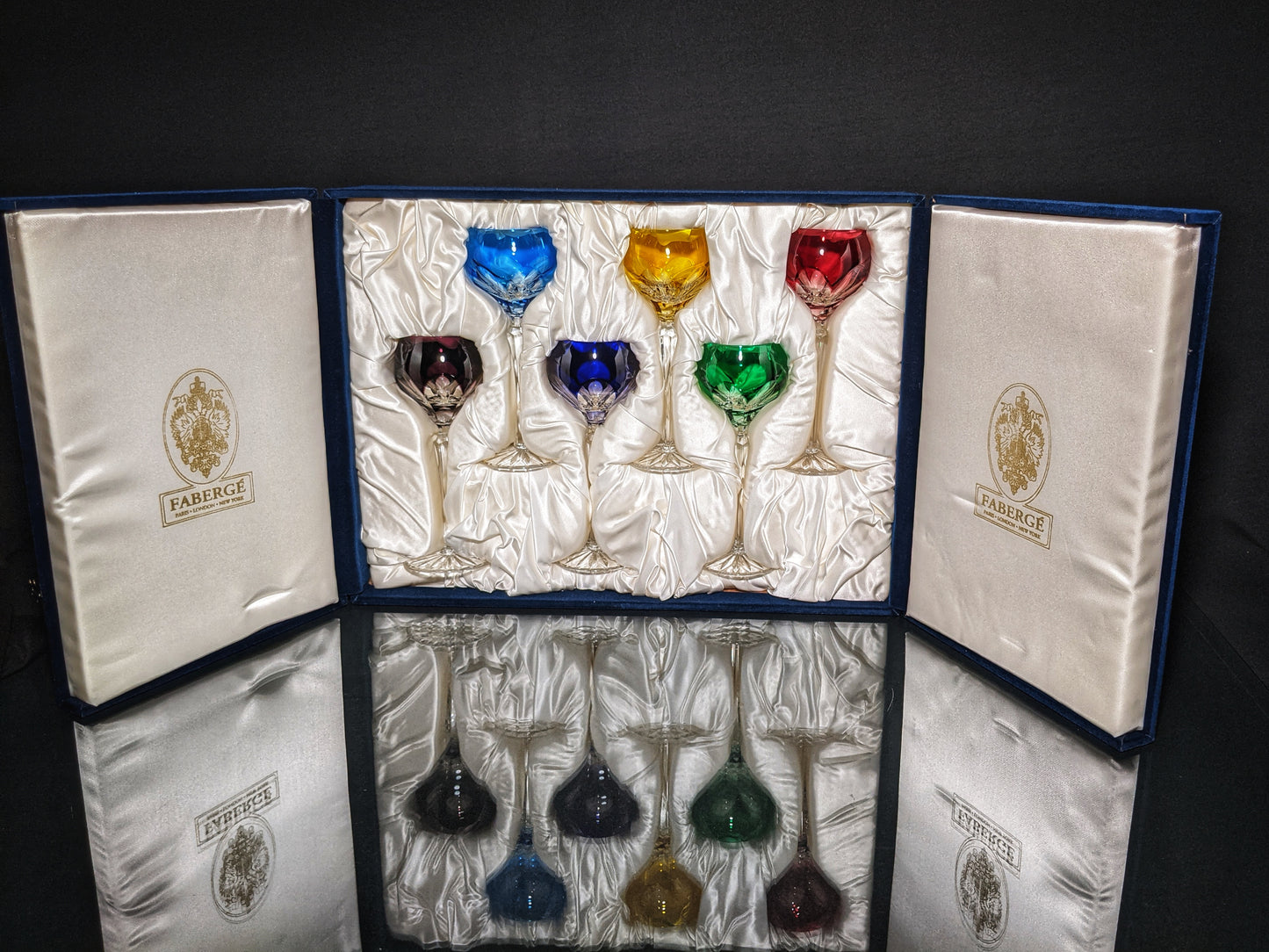 Faberge Colored Crystal Glasses set of 6 in the original presentation case