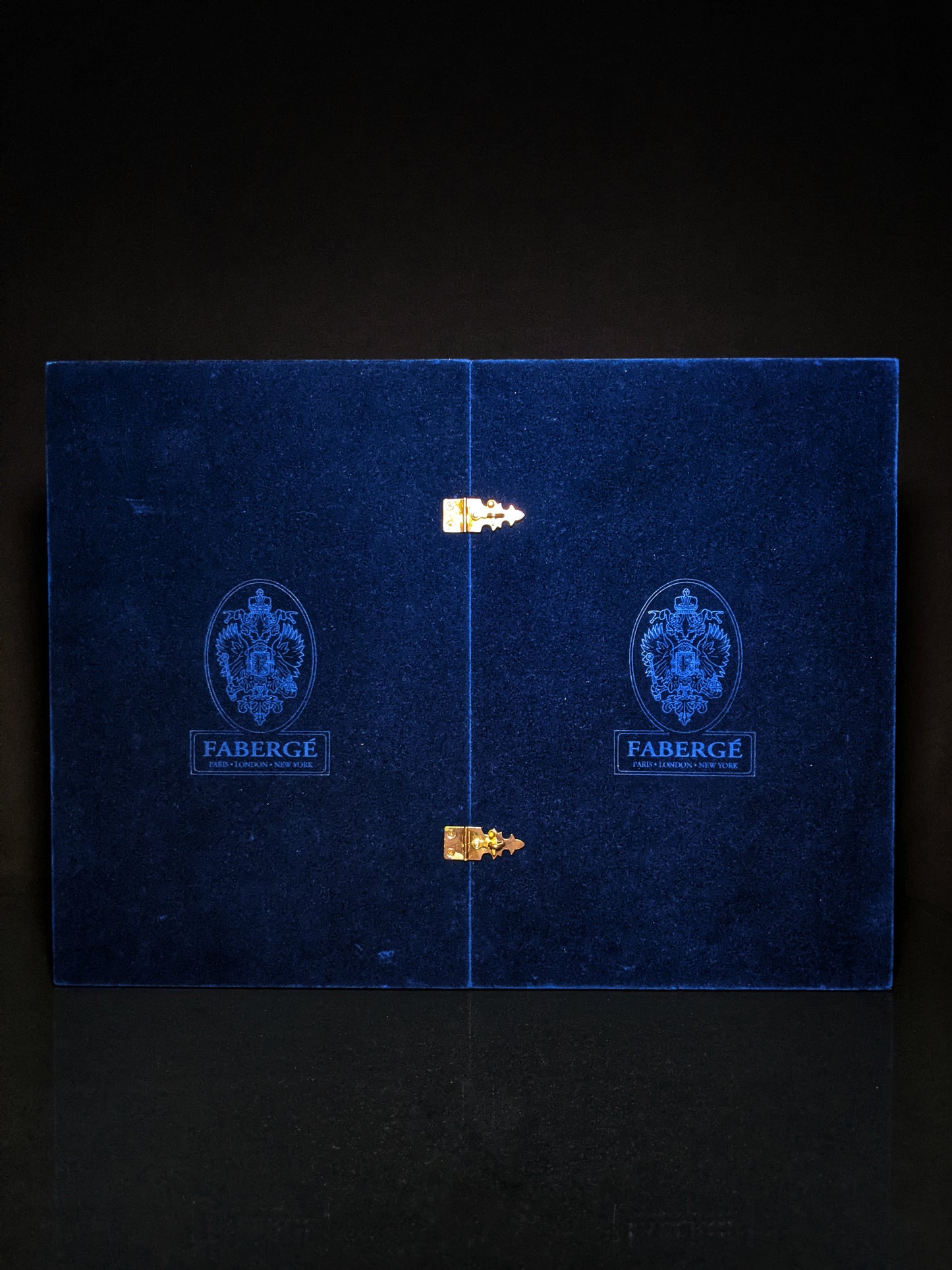 This is a new set of 6 Faberge Colore Crystal Glasses. Made in Slovenia. These are all etched Faberge on each glass. Comes in the oriiginal Faberge blue velvet presentation case. We Ship Worldwide fully insured. Signature is required upon delivery.