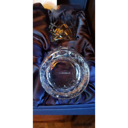 New Faberge crystal glasses. Set of 4. Made in Slovenia. Measure 4.5" Tall with 3.75 " diameter at rim.These Faberge crystal glasses come in the original Faberge presentation box. We ship worldwide fully insured. Signature is required upon delivery.