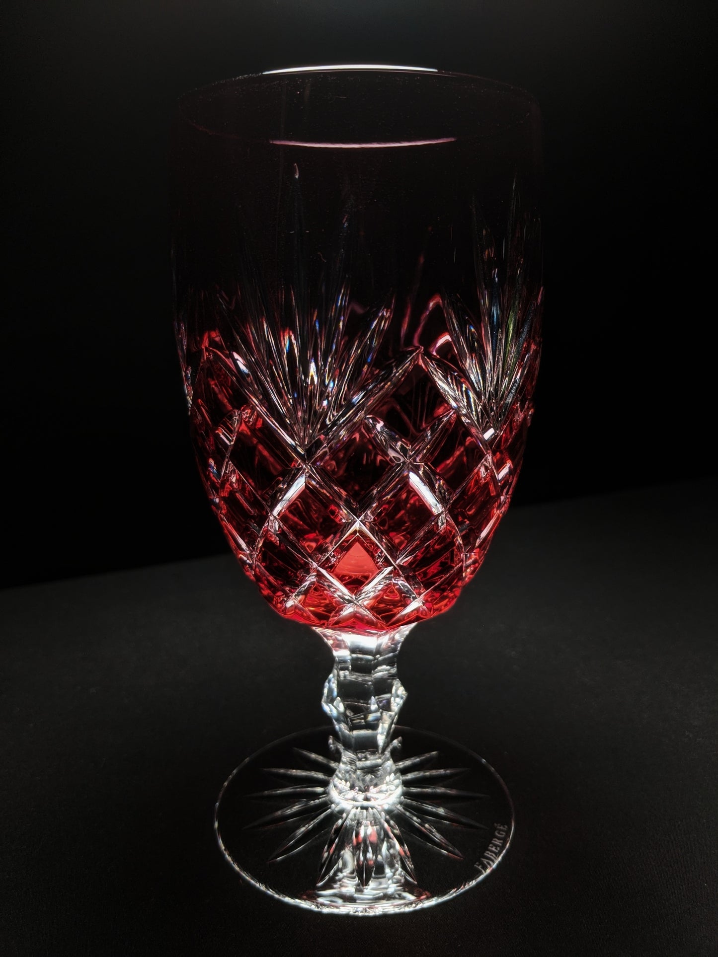 This is a pristine Faberge Odessa Ruby Red Crystal Water or Ice Tea Glass . Stand approx 7.25" Tall and with 3.125" opening at rim . Has the Faberge name etched on base. Comes without the original Faberge Presentation Blue Velvet box. Wrapped in bubble wrap to keep safe. We ship Worldwide fully insured.