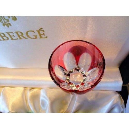 This is a pristine new Faberge Lausanne Crimson Red Vodka Shot Glass Comes without the original Faberge Presentation Box without booklets . This is a colored crystal colored glass with Faberge etched on the upper outside rim. We ship World wide full insured . Signature is required upon delivery.