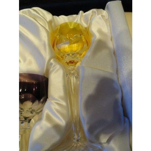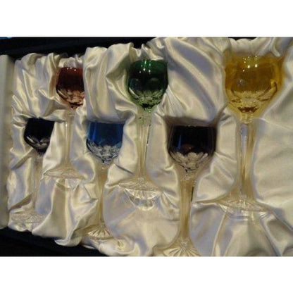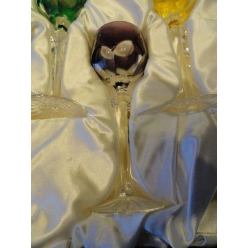 This is a pristine Faberge Lausanne Liqueur Glass Set of 6 . Comes in the original Faberge Presentation Box with booklets . These are all different colored crystal colored glasses each with Faberge etched on them. We ship World wide full insured. Signature is required upon delivery. Thank you!