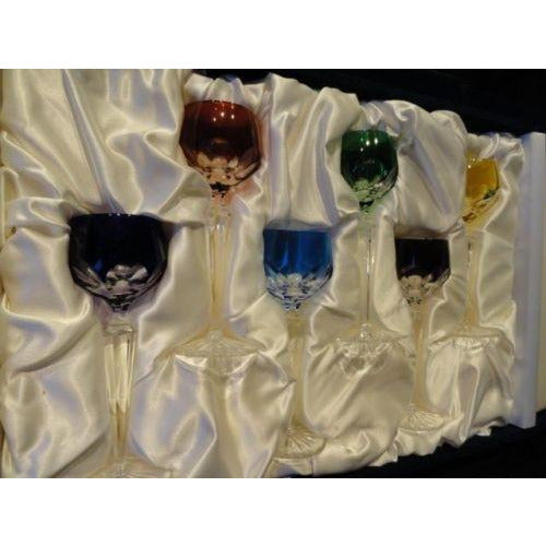 This is a pristine Faberge Lausanne Liqueur Glass Set of 6 . Comes in the original Faberge Presentation Box with booklets . These are all different colored crystal colored glasses each with Faberge etched on them. We ship World wide full insured. Signature is required upon delivery. Thank you!