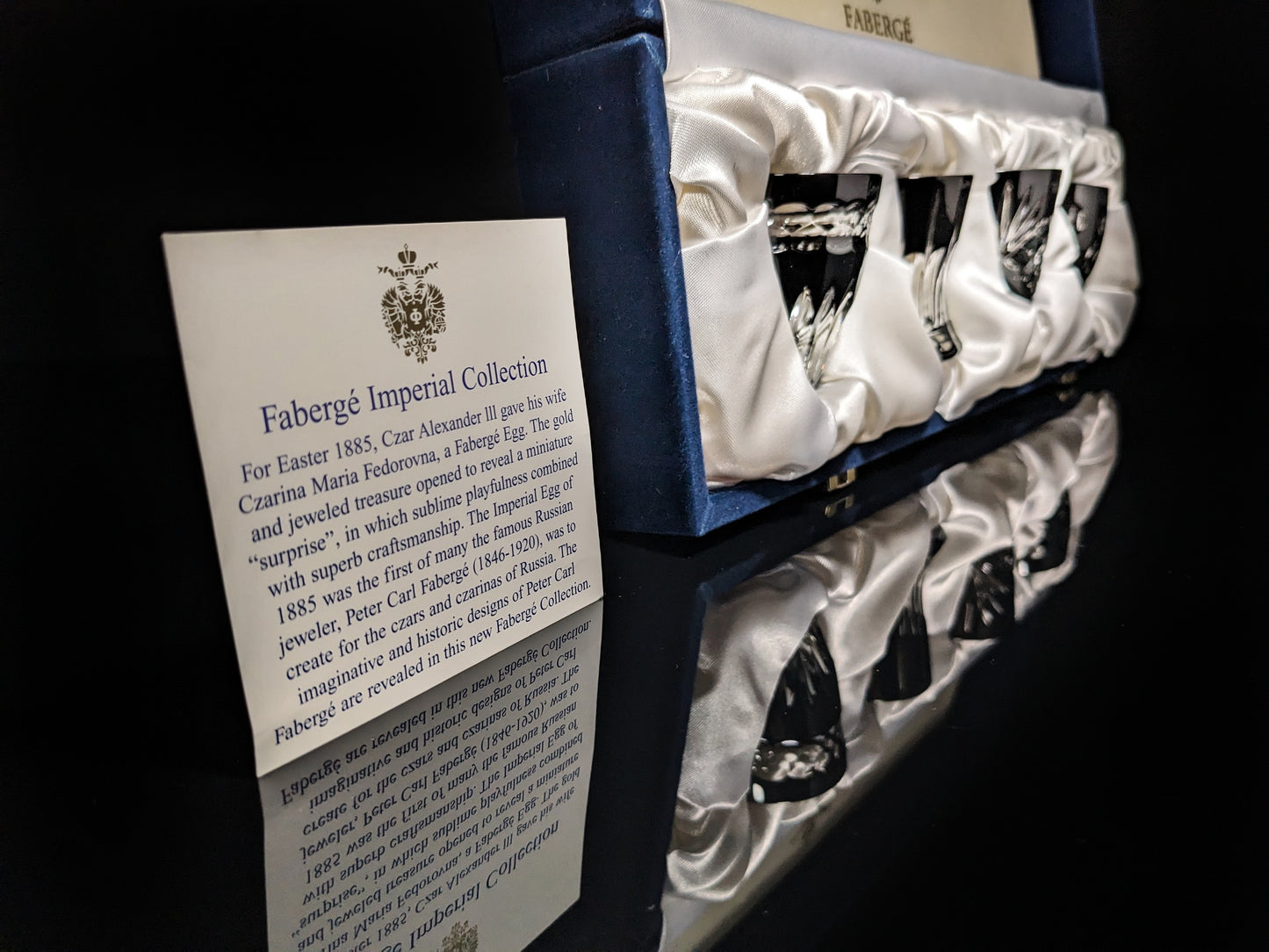 This is a new set of Faberge Na Zdorovya Black Vodka Glasses. Comes in the Faberge Blue Presentation Box. Each Vodka glass has Faberge etched on them. We Ship Worldwide fully insured. Signature is required upon delivery. Thank you!