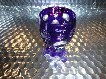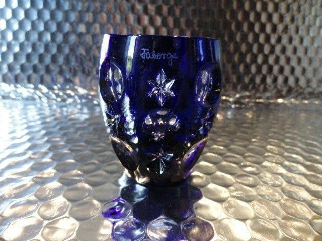 This is a preowned Faberge Cobalt Blue Galaxy Pattern Vodka Shot Glass. Etched with Faberge. Mint Condition. Measures approx 2.25" H 1.125" opening. These are extremely rare as they are no longer being made. We ship Worldwide fully insured. Thank you!