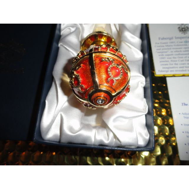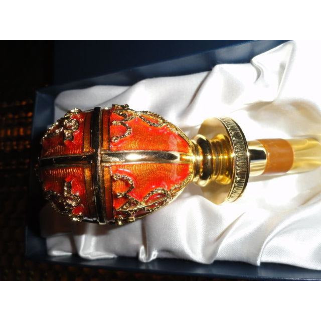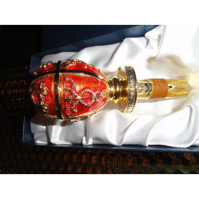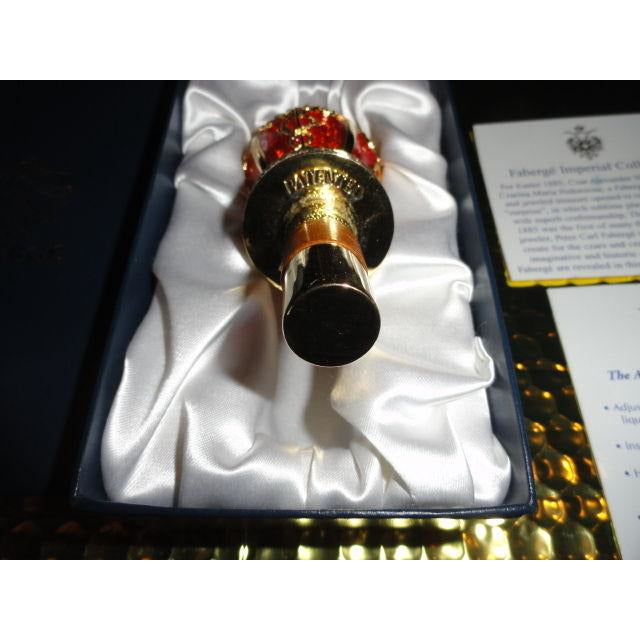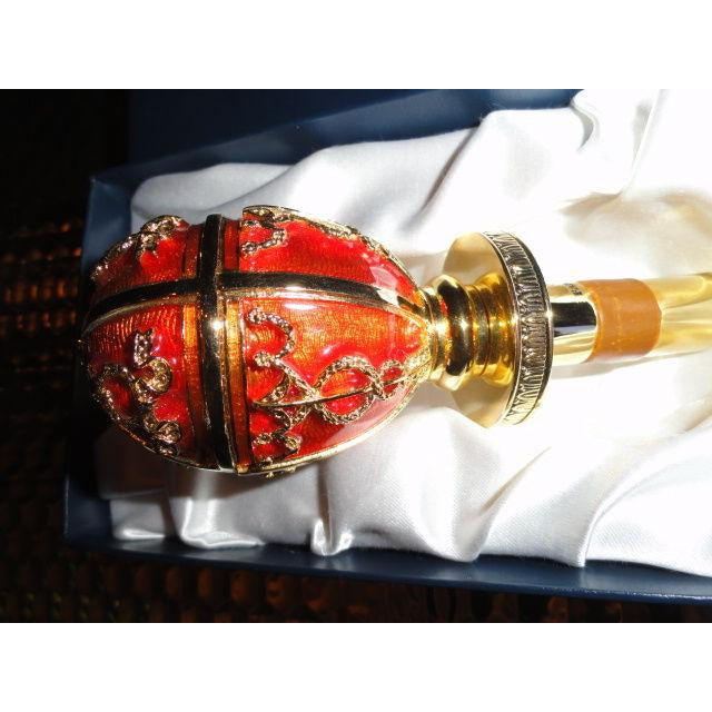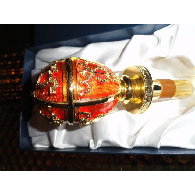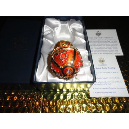 This is a preowned Faberge Red & Gold Enamel Bottle Stopper in the original box. Appears to hardly of been used. Can be used for Wine or Champagne Bottles. Still has the Faberge card in the box. We ship Worldwide fully insured . Signature is required upon delivery.