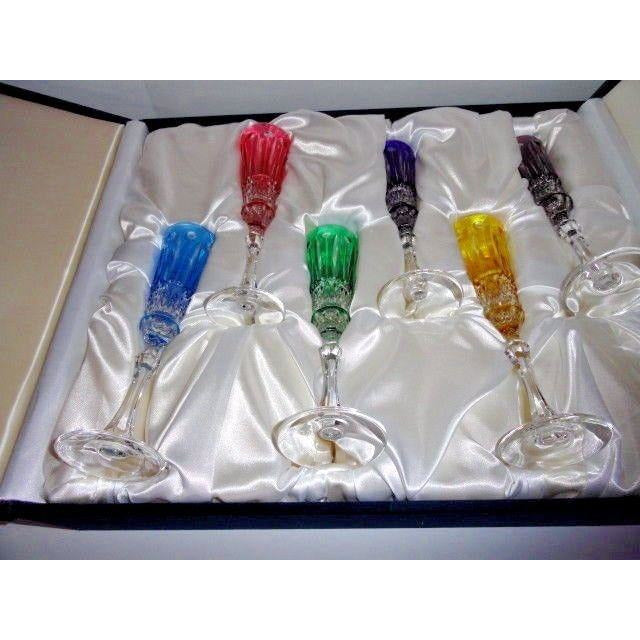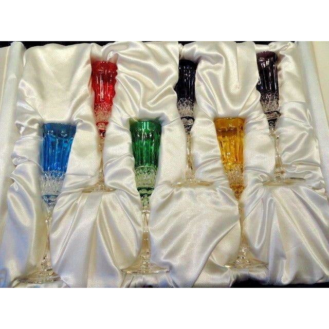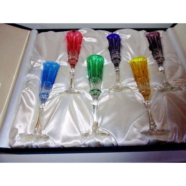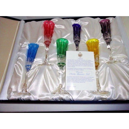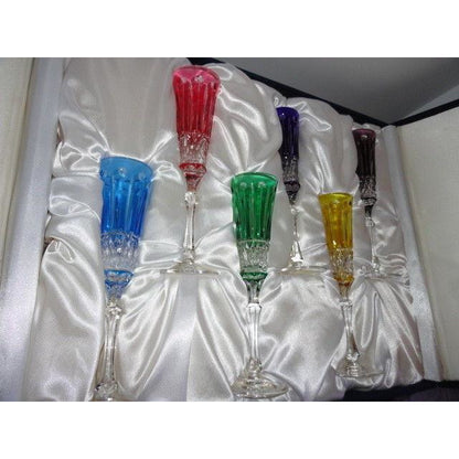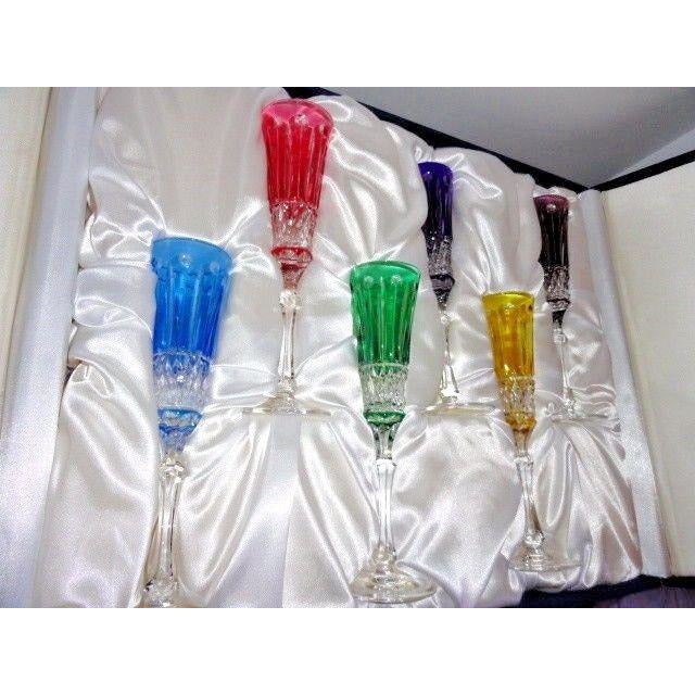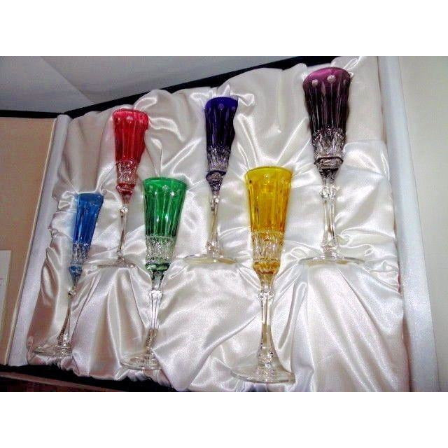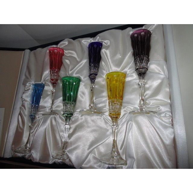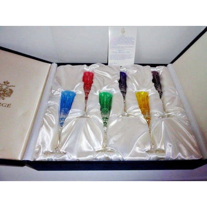 Faberge Xenia Crystal Colored Flutes. Made in Slovenia. These all come without the original box. 9" tall. We ship Worldwide fully insured with signature required upon delivery.