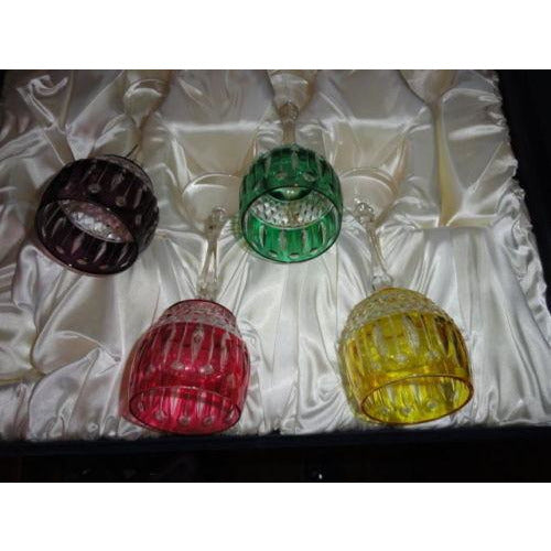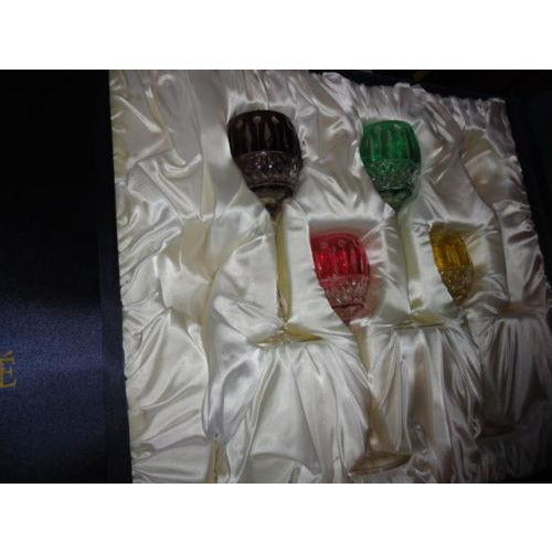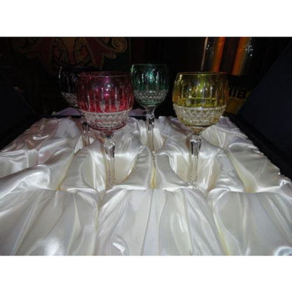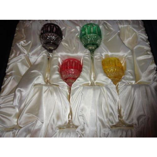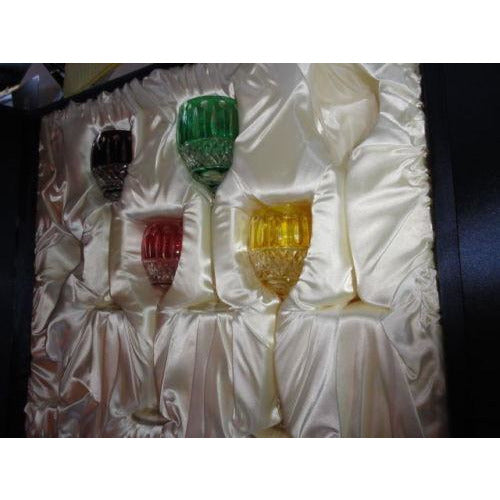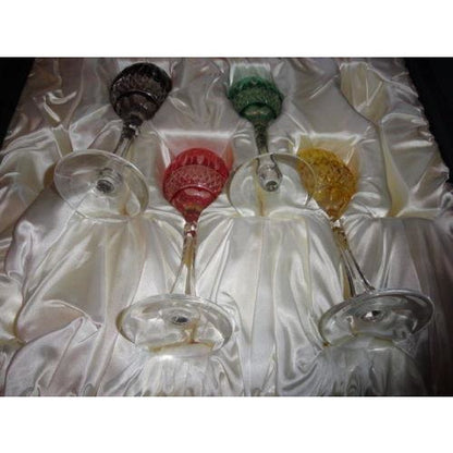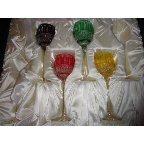This is a new set of six Faberge Xenia Goblet Glasses in the Faberge Presentation box . These measure approx : 8.25" Tall x 3" at base & 2.5" at top rim. We ship Worldwide fully insured. Signature is required upon delivery. Thank you! Cobalt Blue Goblet has been sold . Any other color can be selected as a replacement.