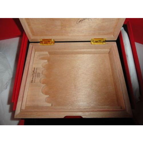 This is a new Fuente 2013 Ltd Edition Opus 22 Travel Humidor in Red Lacquer with shiny gold lettering. Comes in the double red cardboard presentation red boxes with 2 booklets. 1- CD included. Holds 6-8 cigars. No cigars included. Only 375 in Red made . We Ship Worldwide fully insured . Signature is required upon delivery. Thank you!