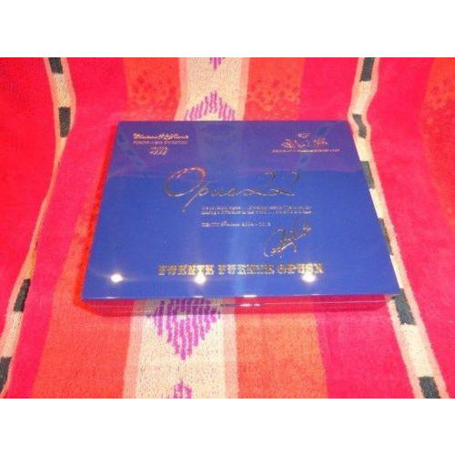 This is a new Fuente Fuente Ltd Edition OpusX 22 Traveldor in Blue Lacquer with shiny gold lettering. Comes in double red cardboard presentation red boxes with 2 booklets and 1- CD. Holds 6-8 cigars. No cigars included. Only 375 in White made . We Ship Worldwide fully insured . Signature is required upon delivery. Thank you!