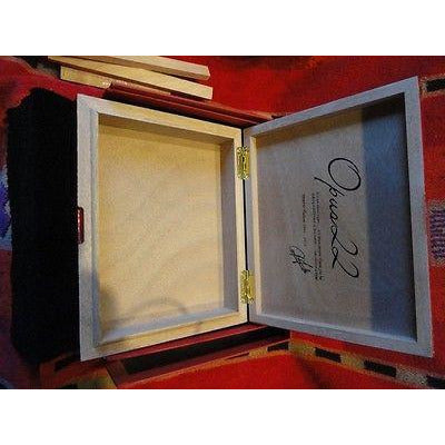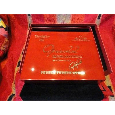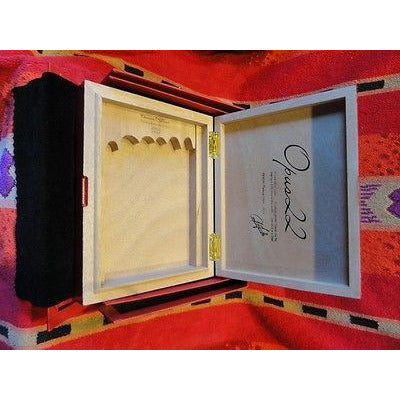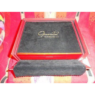 This is a new Fuente Ltd Edition Opus 22 Travel Humidor in Red Lacquer with shiny gold lettering. Comes in the double red cardboard presentation red boxes with 2 booklets. 1- CD included. Holds 6-8 cigars. No cigars included. Only 375 in Red made . We Ship Worldwide fully insured . Signature is required upon delivery. Thank you!