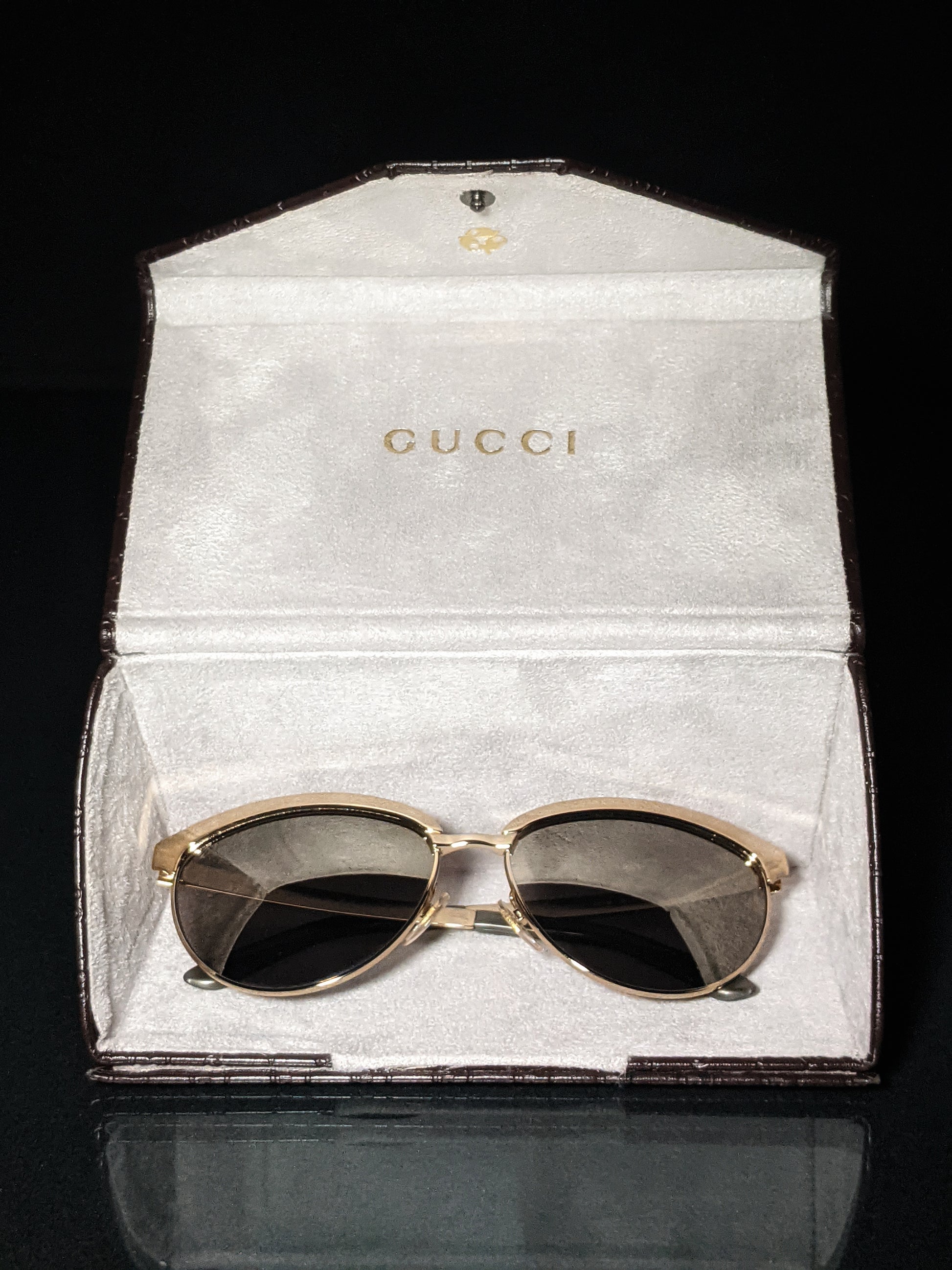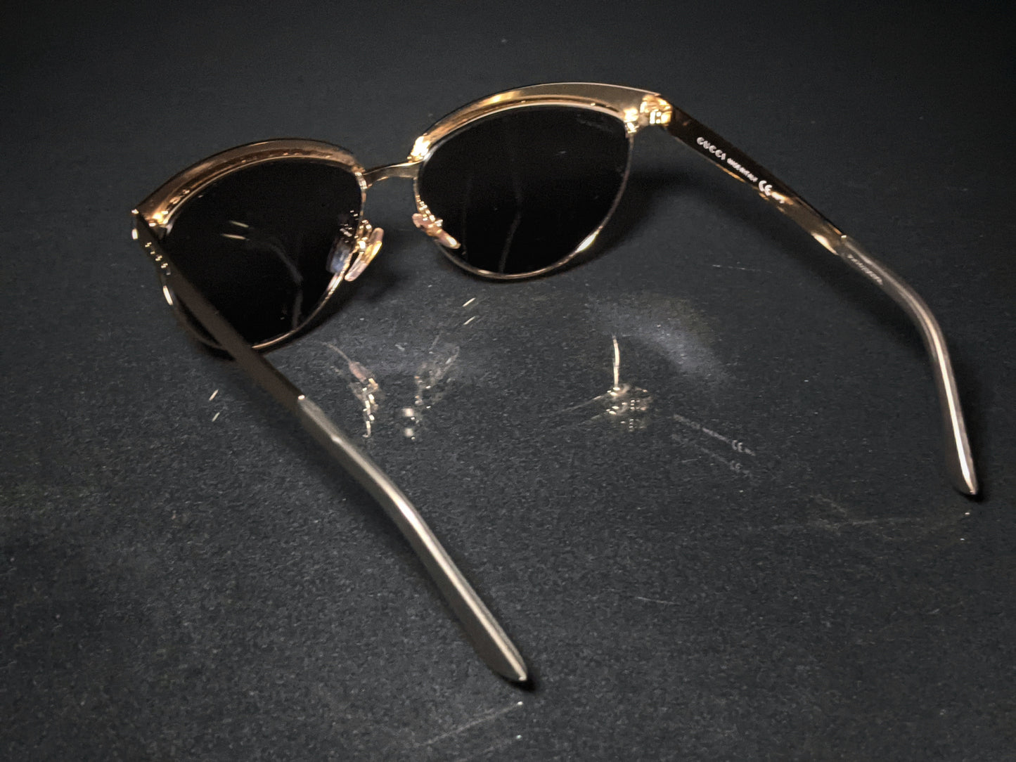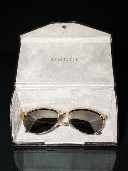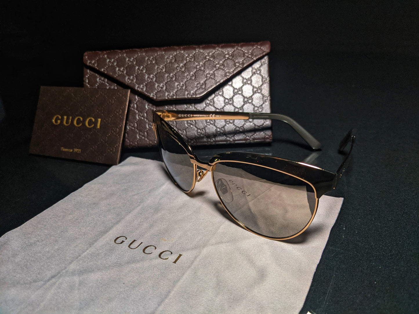 Gucci Ladies Gold Sunglasses. Pre-owned in good condition. These have barely been worn. Come in the original Gucci leather case. We ship worldwide fully insured. Signature is required upon delivery.