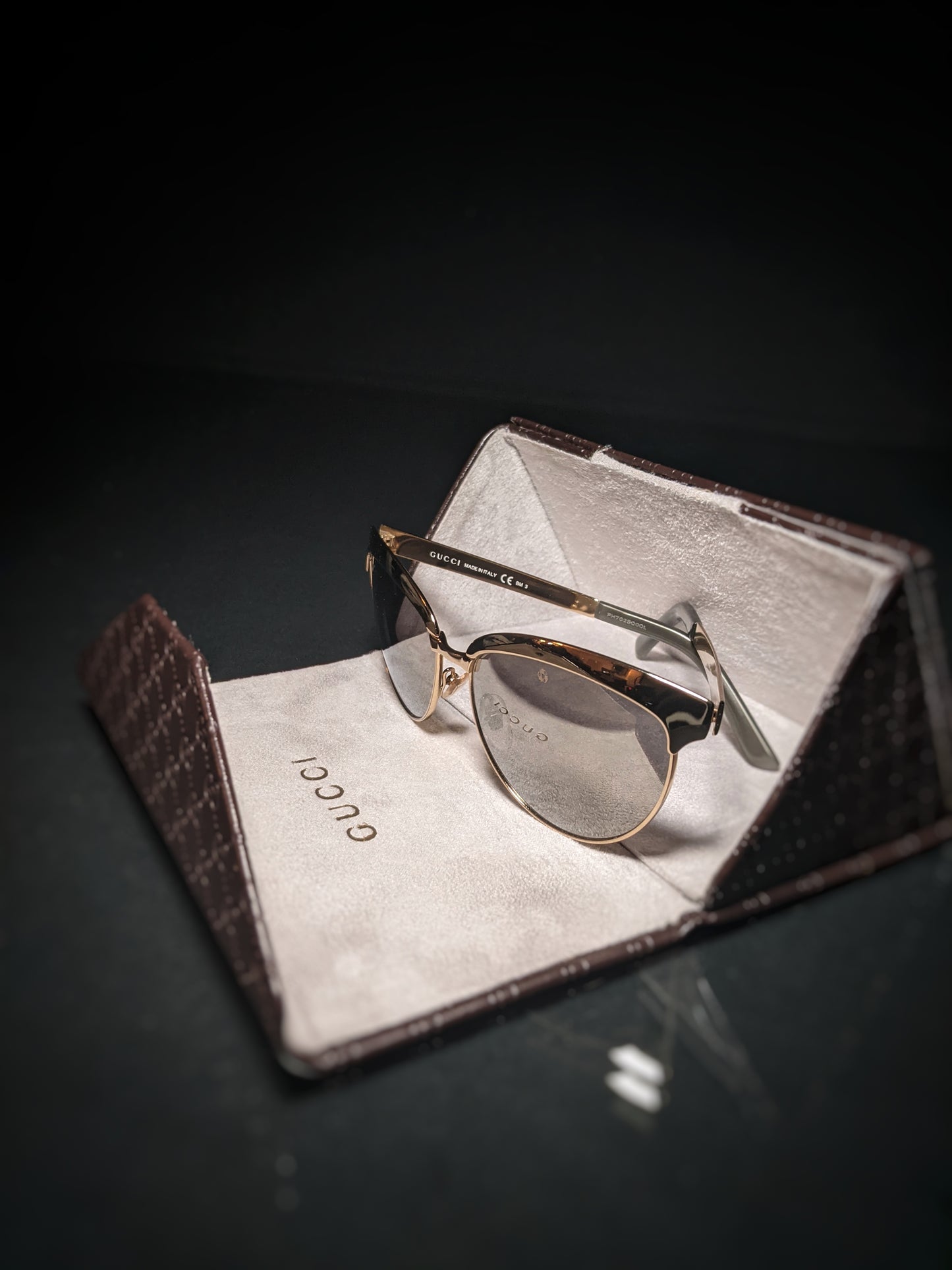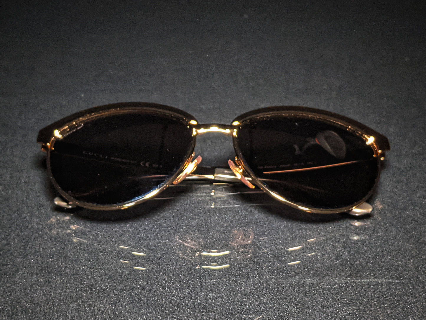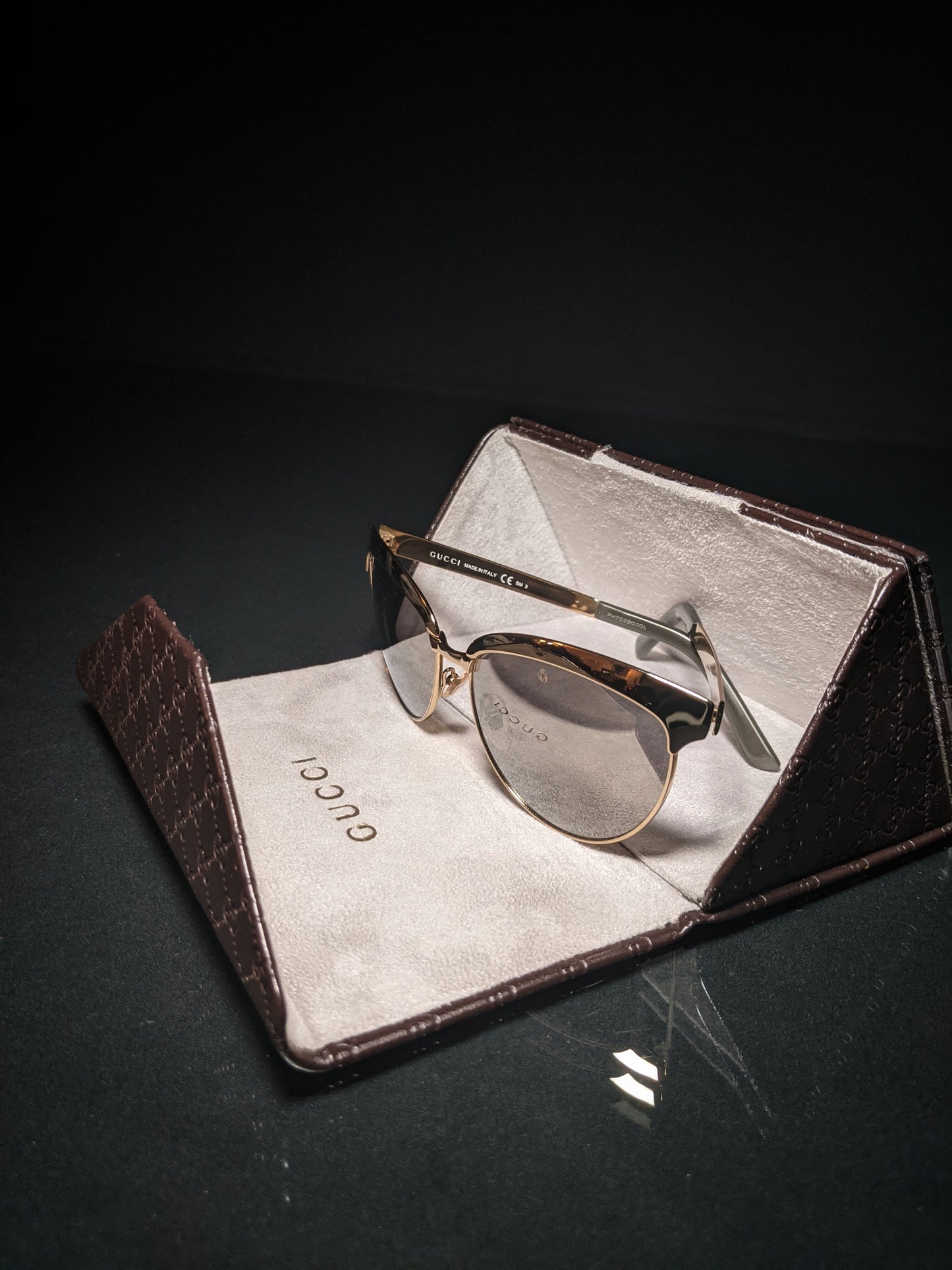 Gucci Ladies Gold Sunglasses. Pre-owned in good condition. These have barely been worn. Come in the original Gucci leather case. We ship worldwide fully insured. Signature is required upon delivery.