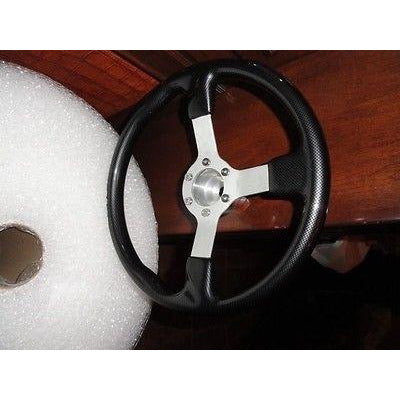 Gussi Boat Steering Wheel Black Carbon Look with Brushed Spoke & Polished Adapt