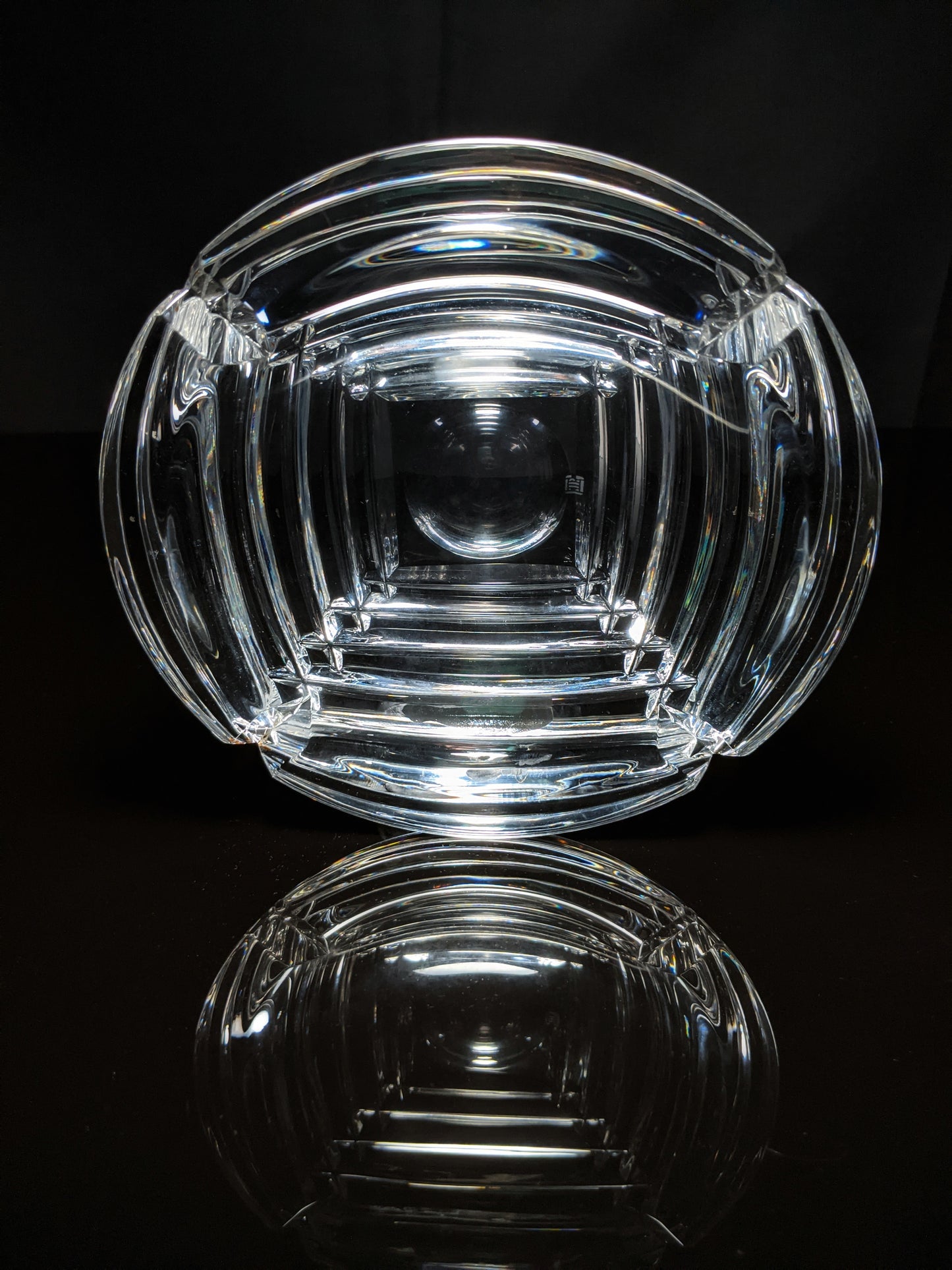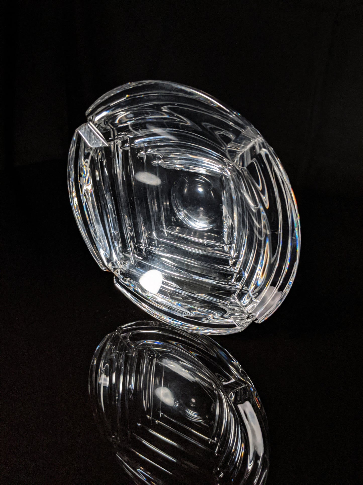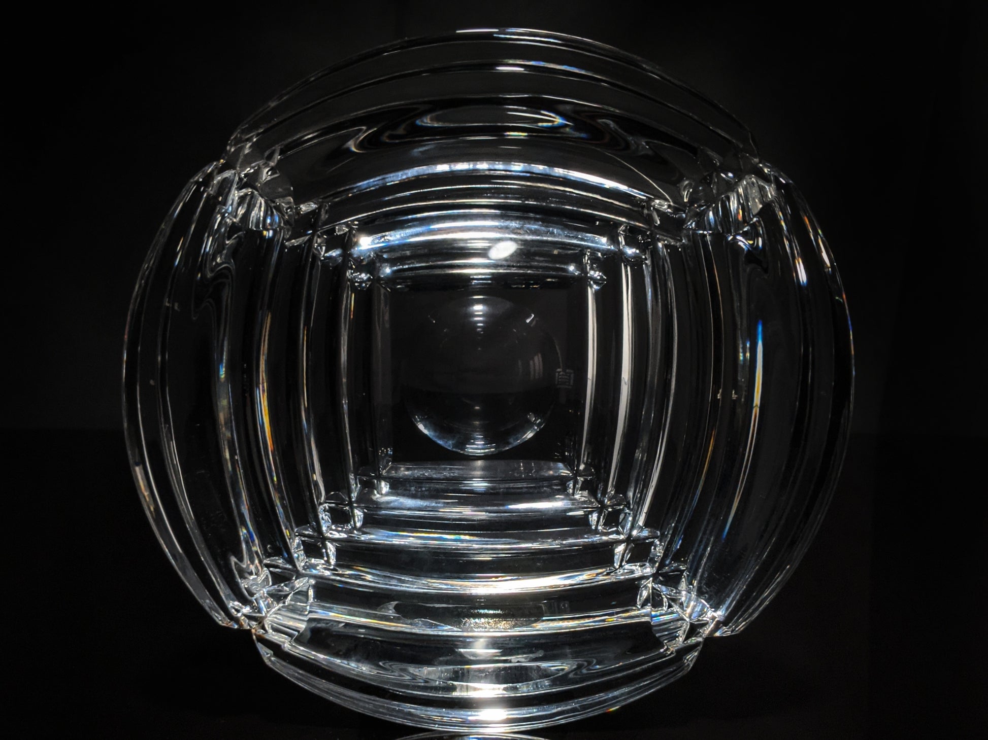 This is a heavy glass cigar ashtray. Pre-owned in good condition. Measures 7" Diameter by 1.75" H . Weighs 3.6 pounds. We ship fully insured.