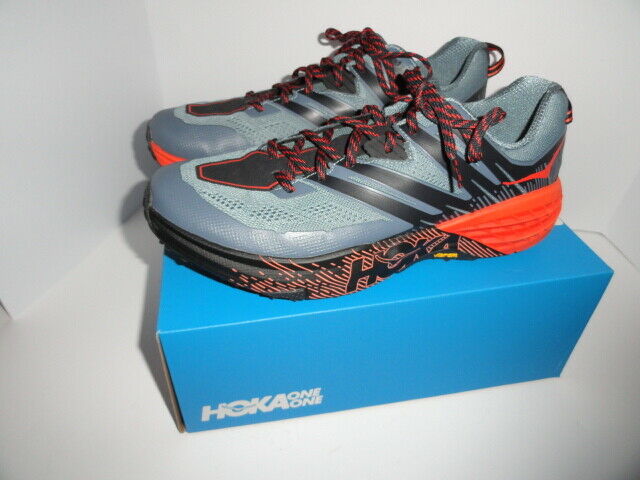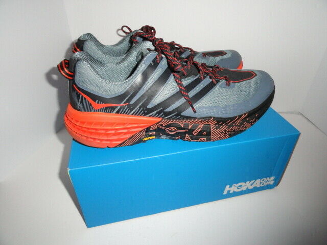 Thjs is a new pre-owned of Hoka One Speedcoat 3 Gray & Orange colored sneakers. Size 13 with Medium width. These are in good condiiton and come in the original box. We ship Worldwide fully insured.