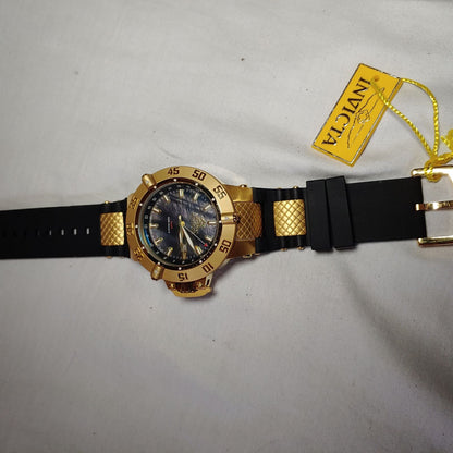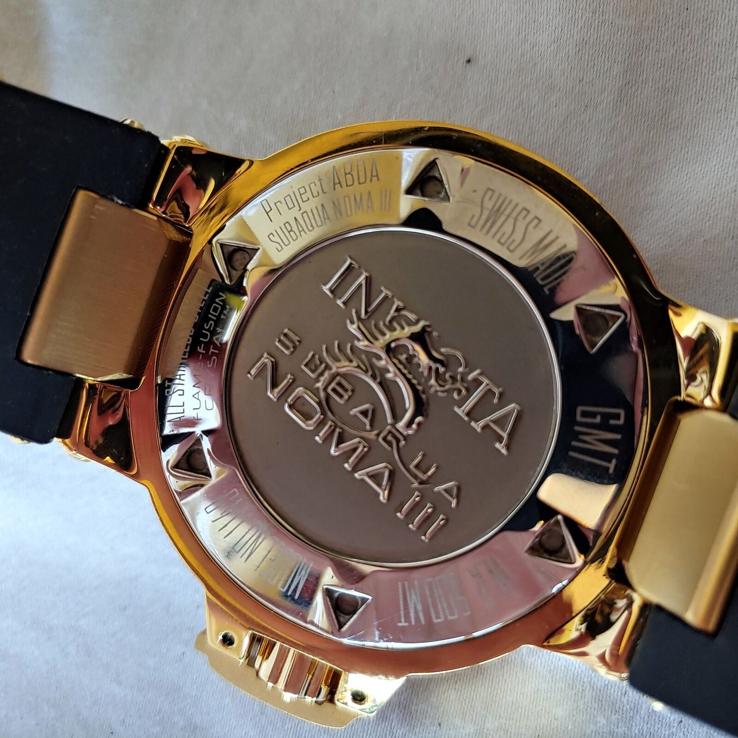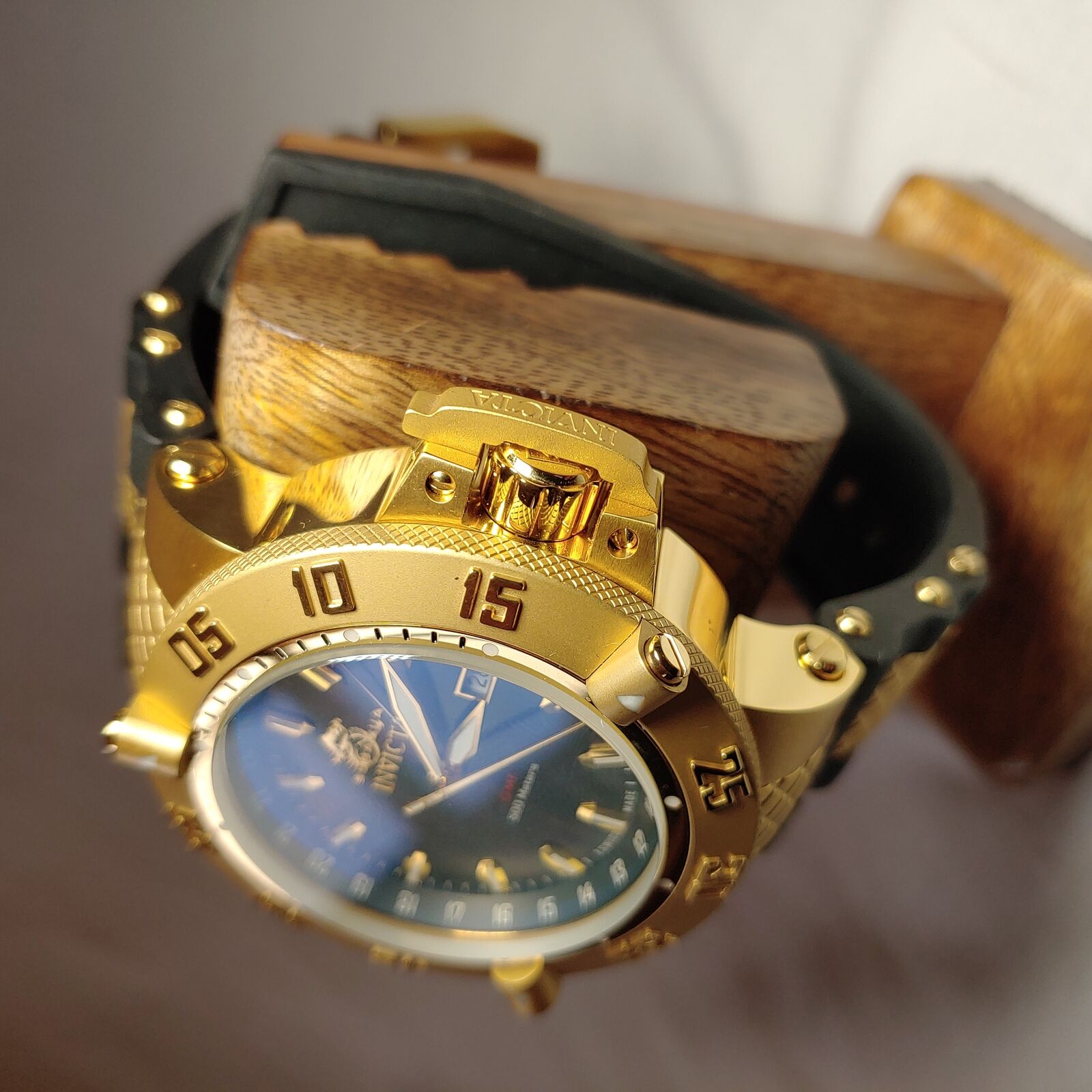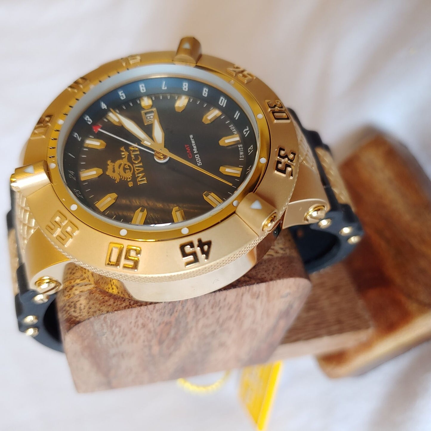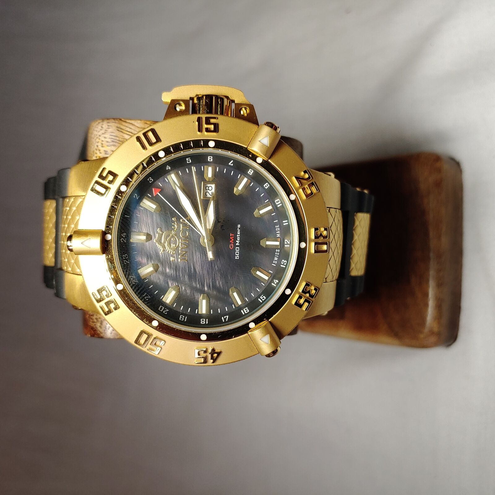 From the renowned Subaqua collection by Invicta, this stylish timepiece is powered by a finely crafted Swiss Quartz movement. Featuring a stunning 50 millimeter Gold case accented by a Gold, Black tone Stainless Steel, Polyurethane band, it is the perfect accessory for function and style. Protected by a Flame Fusion crystal and water resistant up to 500 meters, Invicta model number 1149 also comes with a five year warranty from InvictaStores.com, the official online source for Invicta watches.
