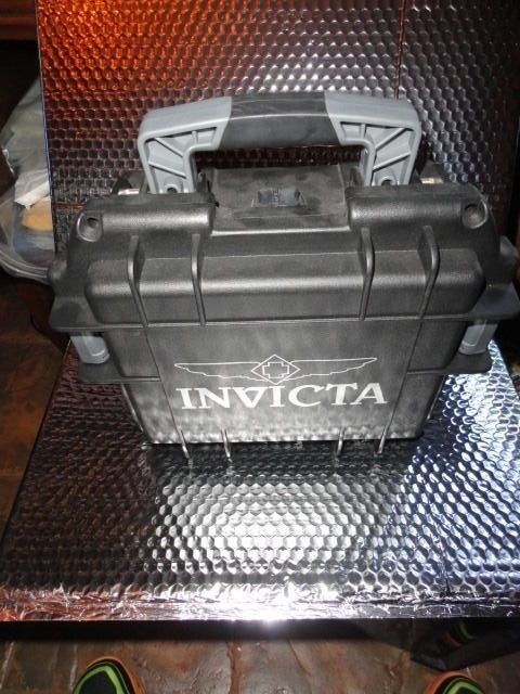 This is listing is for a preowned Invicta Black with grey handles and clasps watch carrying case. Appears to never been used. Holds up to three watches. We ship Worldwide fully insured.