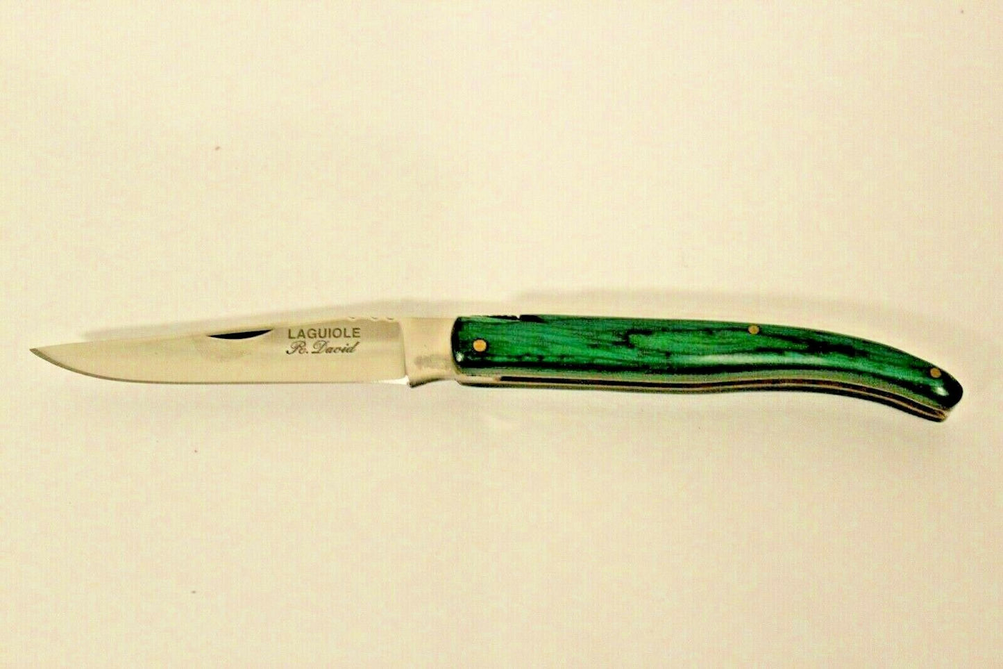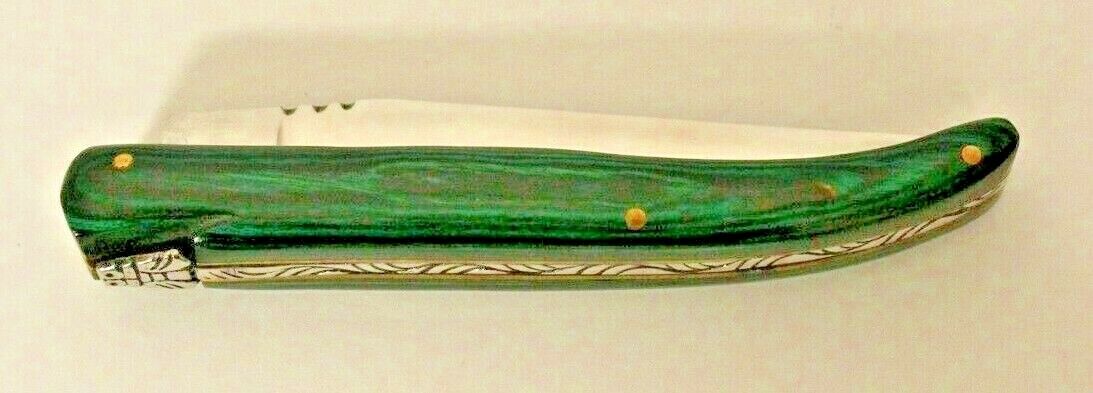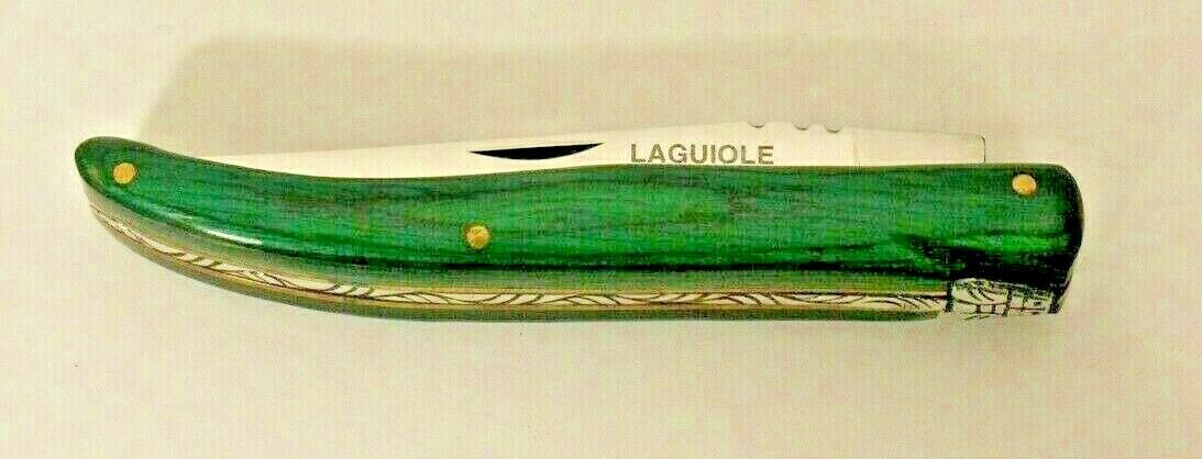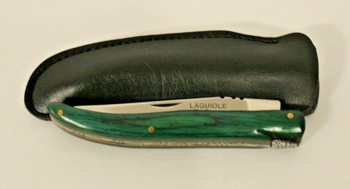 This is a preowned Laguiole Emerald Pocket Knife. Comes with leather knife holder. Blade length 3.68in. Appears not to been used. We ship Worldwide fully insured.