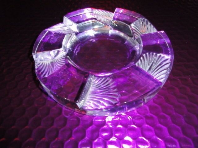 This is a preowned Lalique art deco crystal ashtray in the original box. Good condition. Only has light scratches on bottom. Free of any chips or cracks.  Measures approx 5 7/8" diameter x 3/4" H. We ship Worldwide fully insured to your door. Signature is required upon delivery. Thank you!