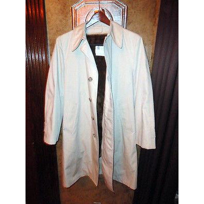This is a preowned London Fog Tan Trench Coat. Good condition. Comes with zippered fur type liner for Winter time. Size 4o Regular. We Ship Worldwide fully insured.