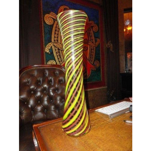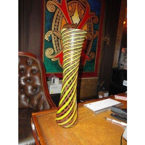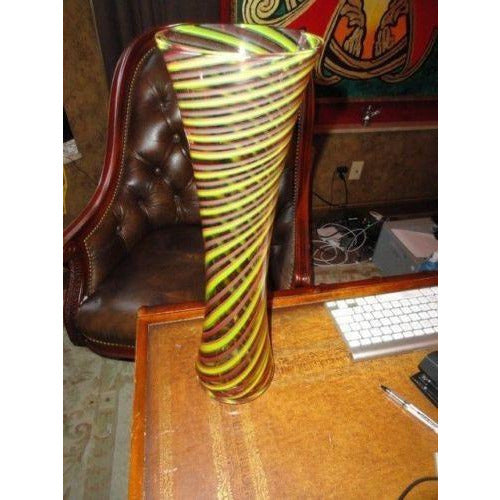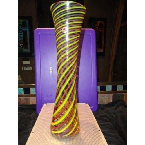 This is a Italian made in Murano ,Italy glass swirl colored tall vase. Measure approx 17 3/4" tall with 4 7/8" width at top. Comes with sticker attached. We ship Worldwide fully insured . Signature required upon delivery.