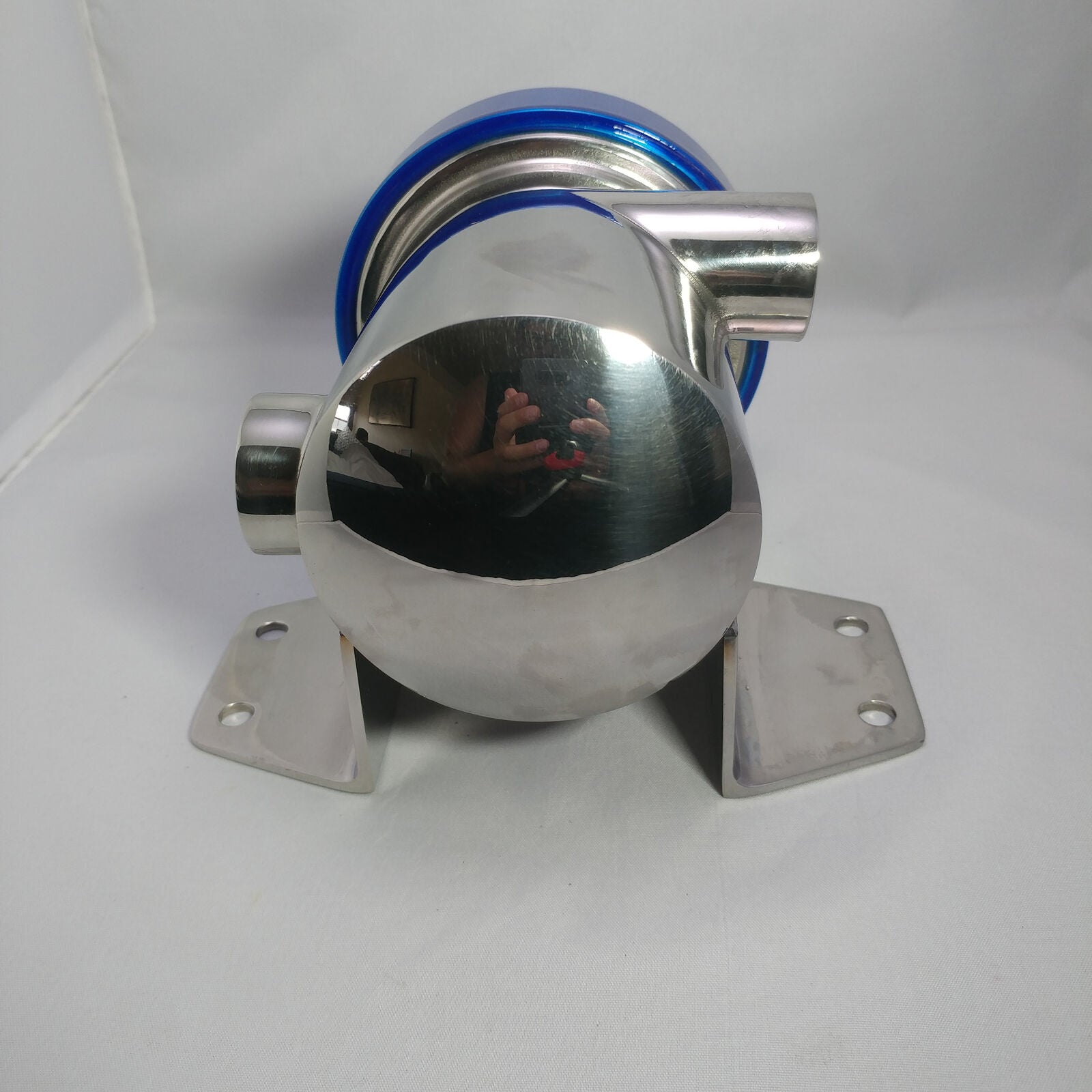 This is a Marine Machine Sea Strainer with Blue Top. Made of 316L Stainless Steel and Billet Alum. Made in USA. This is a smaller size meant for Air Conditioners or Generators etc. Has 3/4 NPT inlet and outlet. Bolts to stringer or bulkhead. Other color tops avialable .We ship Worldwide fully insured. Signature is required upon delivery.