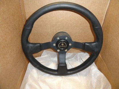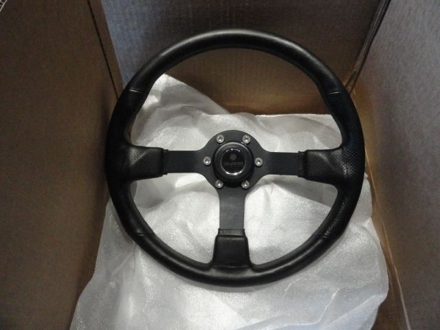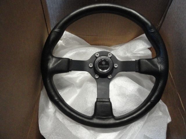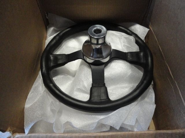 This is a new Gussi Marine Steering Wheel in Black Anoidized Spokes and Black Vinyl covered rim. Comes with Polished Billet Alum hub adaptor .  Diameter 14". We Ship Worldwide fully insured.