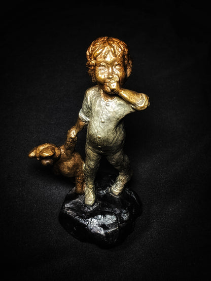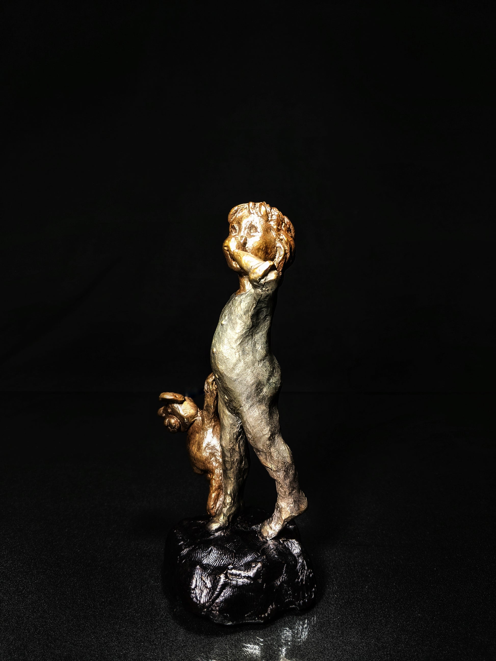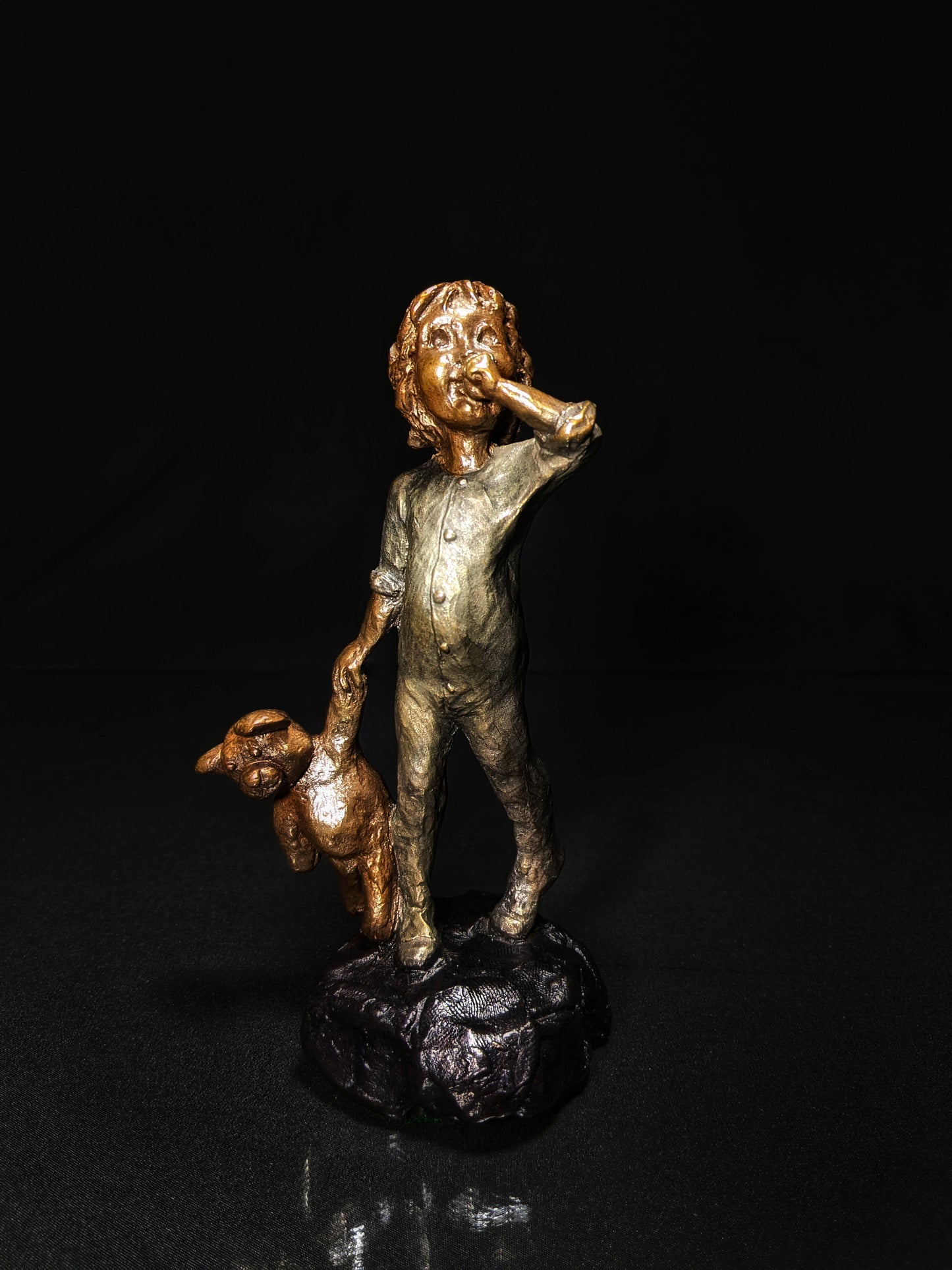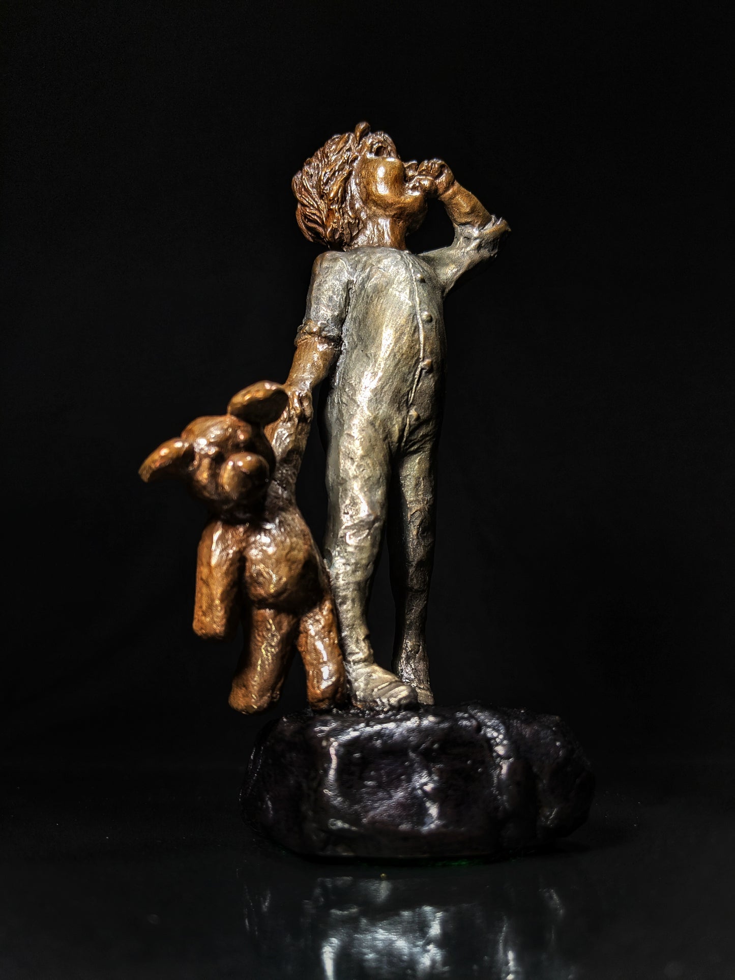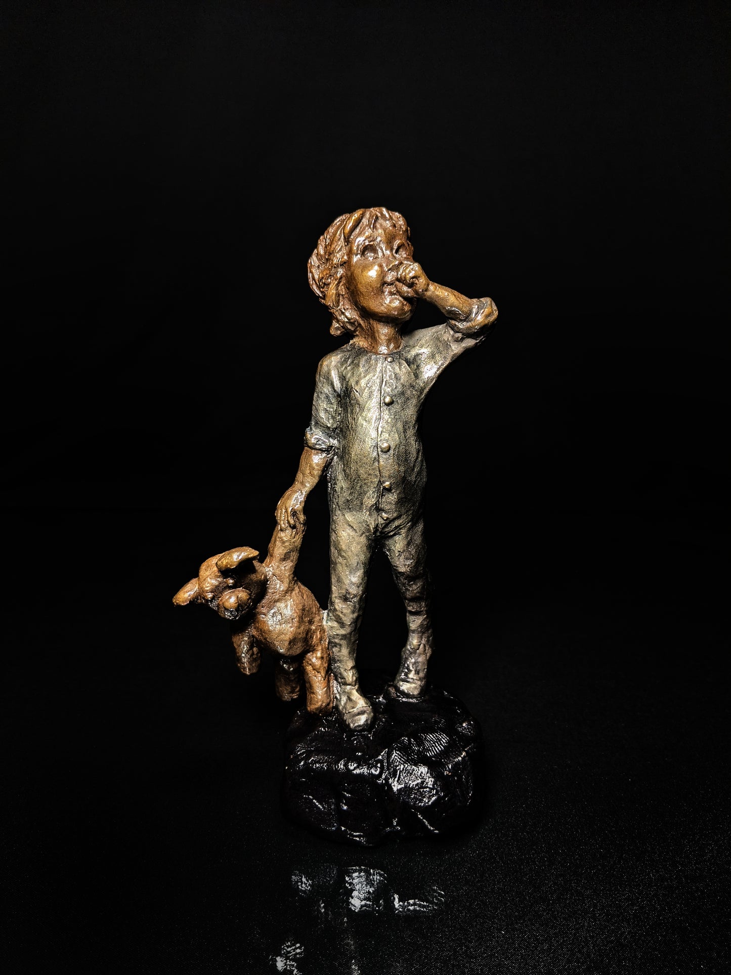This is a Mark Hopkins bronze sculpture named "Bedtime".