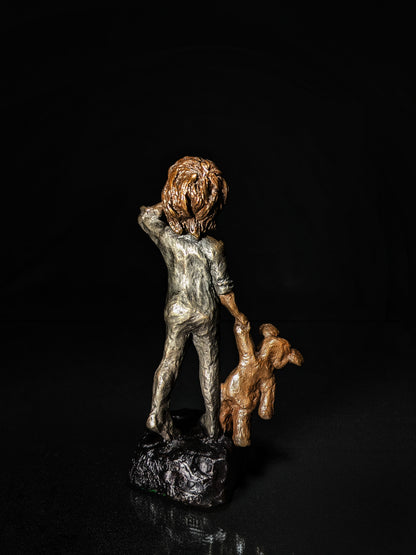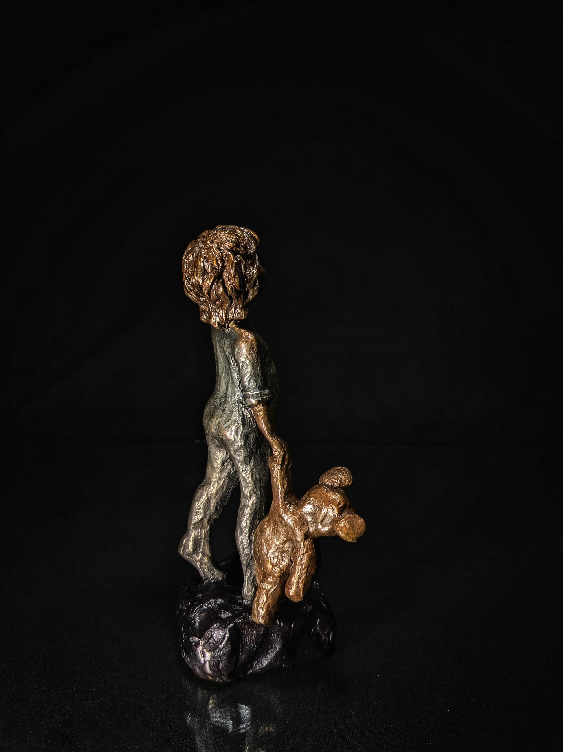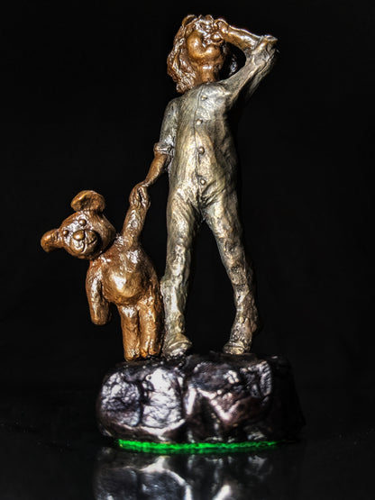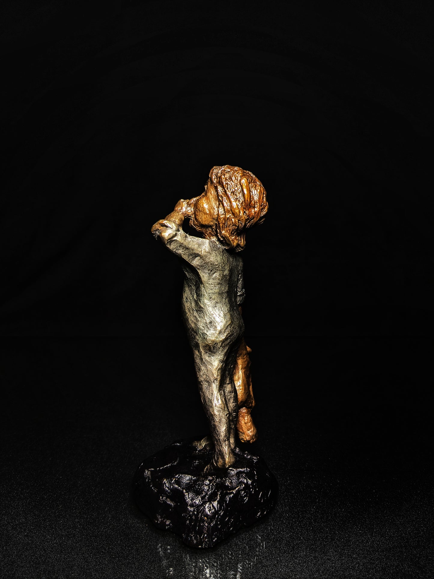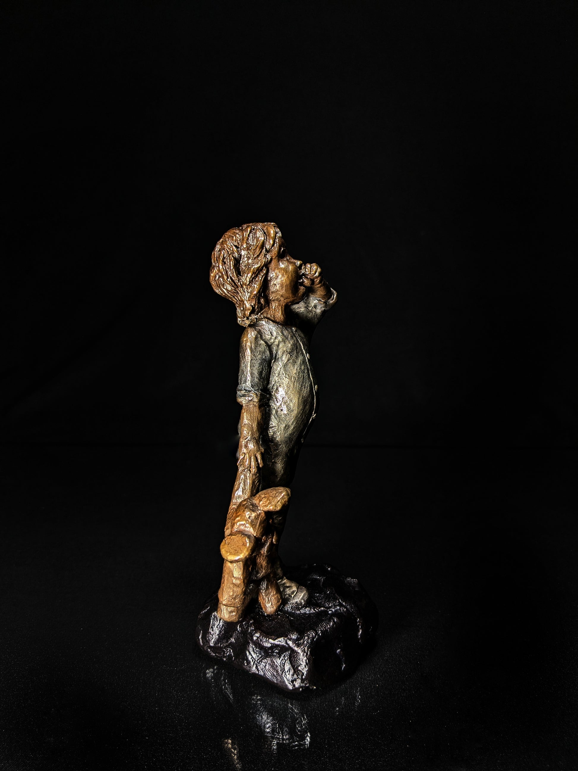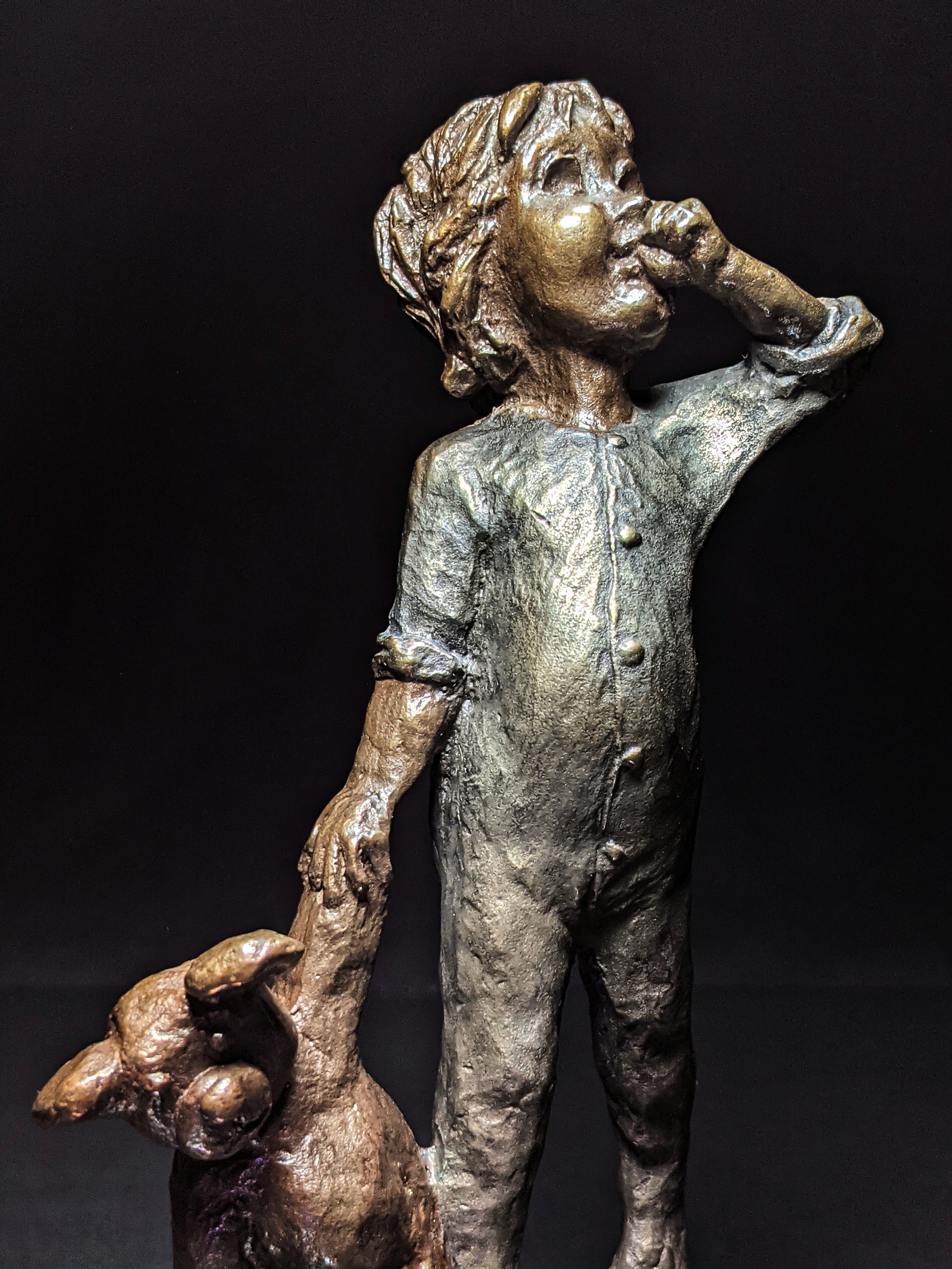 This is a Mark Hopkins bronze sculpture named "Bedtime".