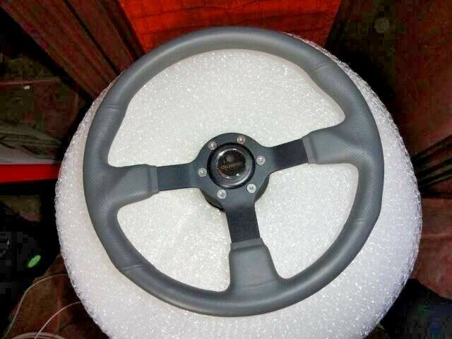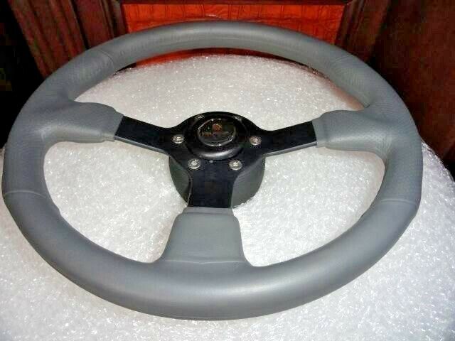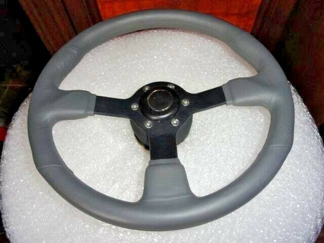 New Gussi Boat Steering Wheel Grey Urethane Black Spoke & Black Hub Adaptor