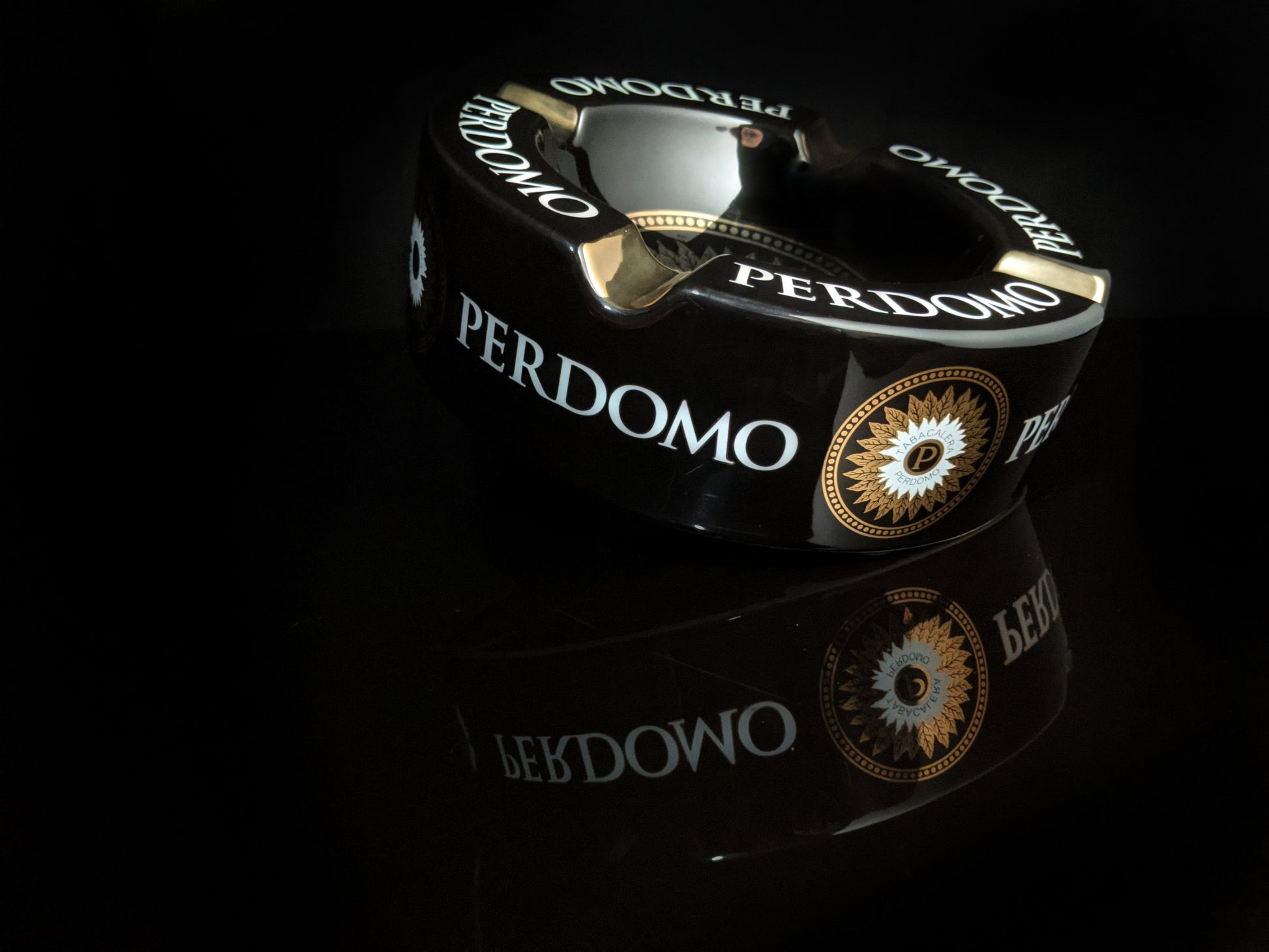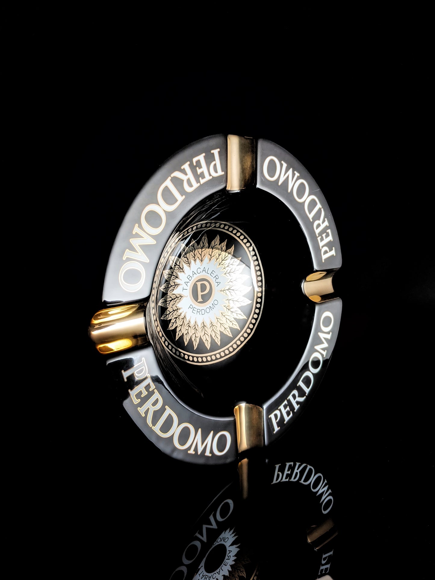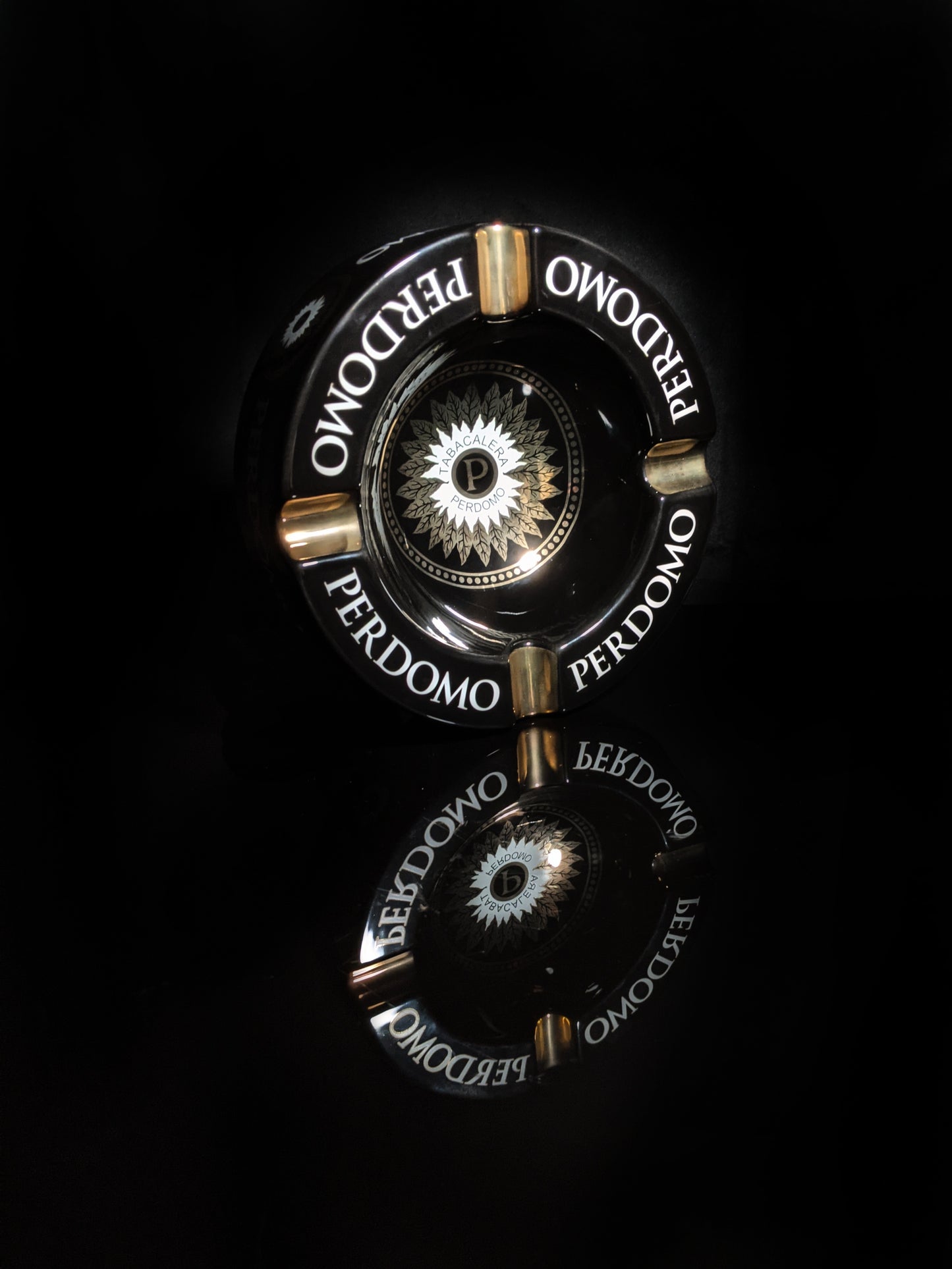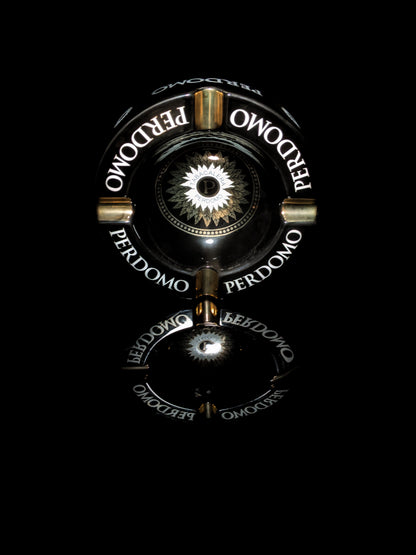 This us a new Perdomo Black and Gold large size ceramic ashtray. Measures 9" Diameter by 3" High. We ship Worldwide fully insured.
