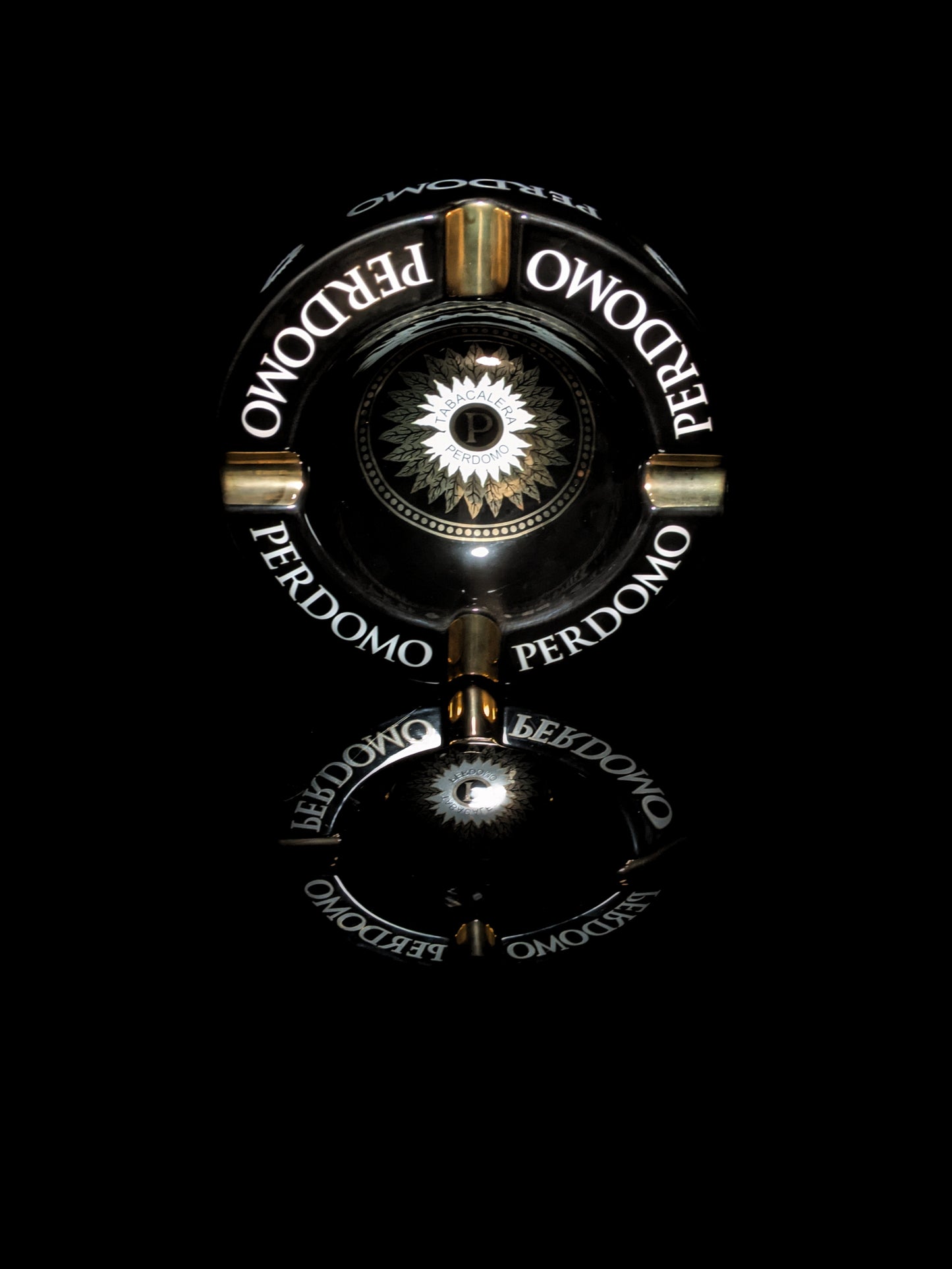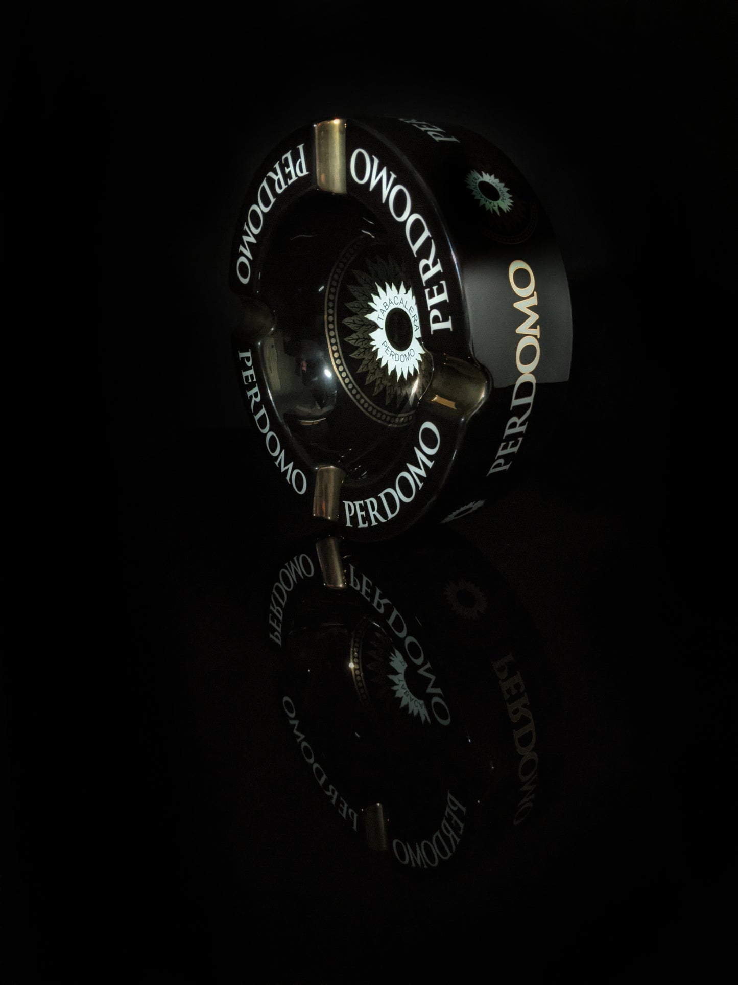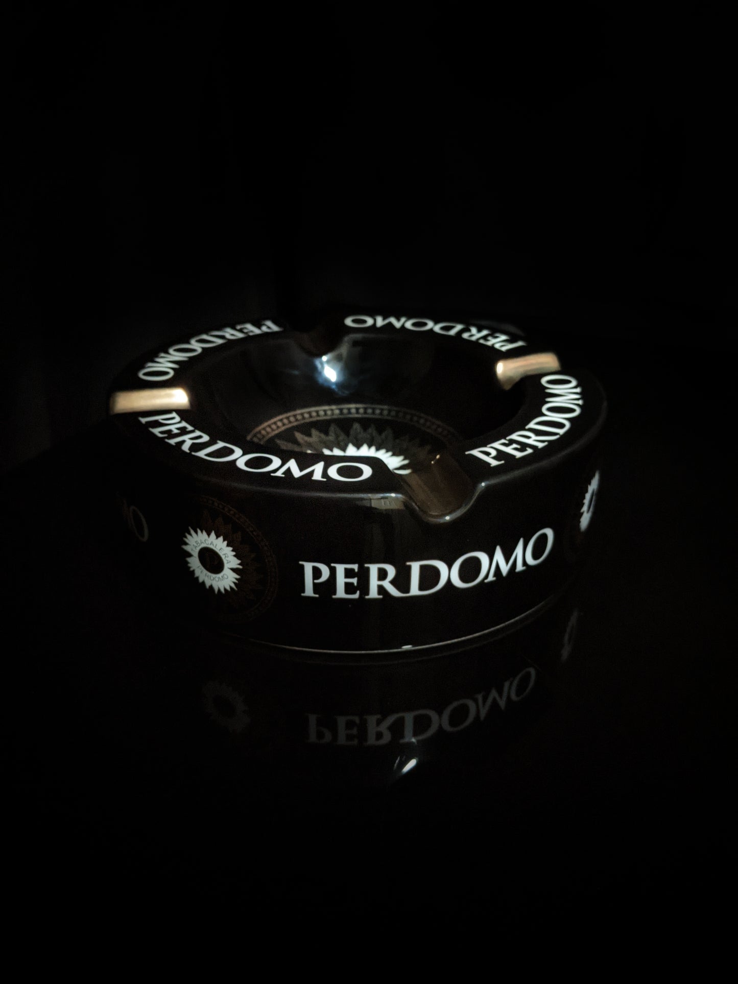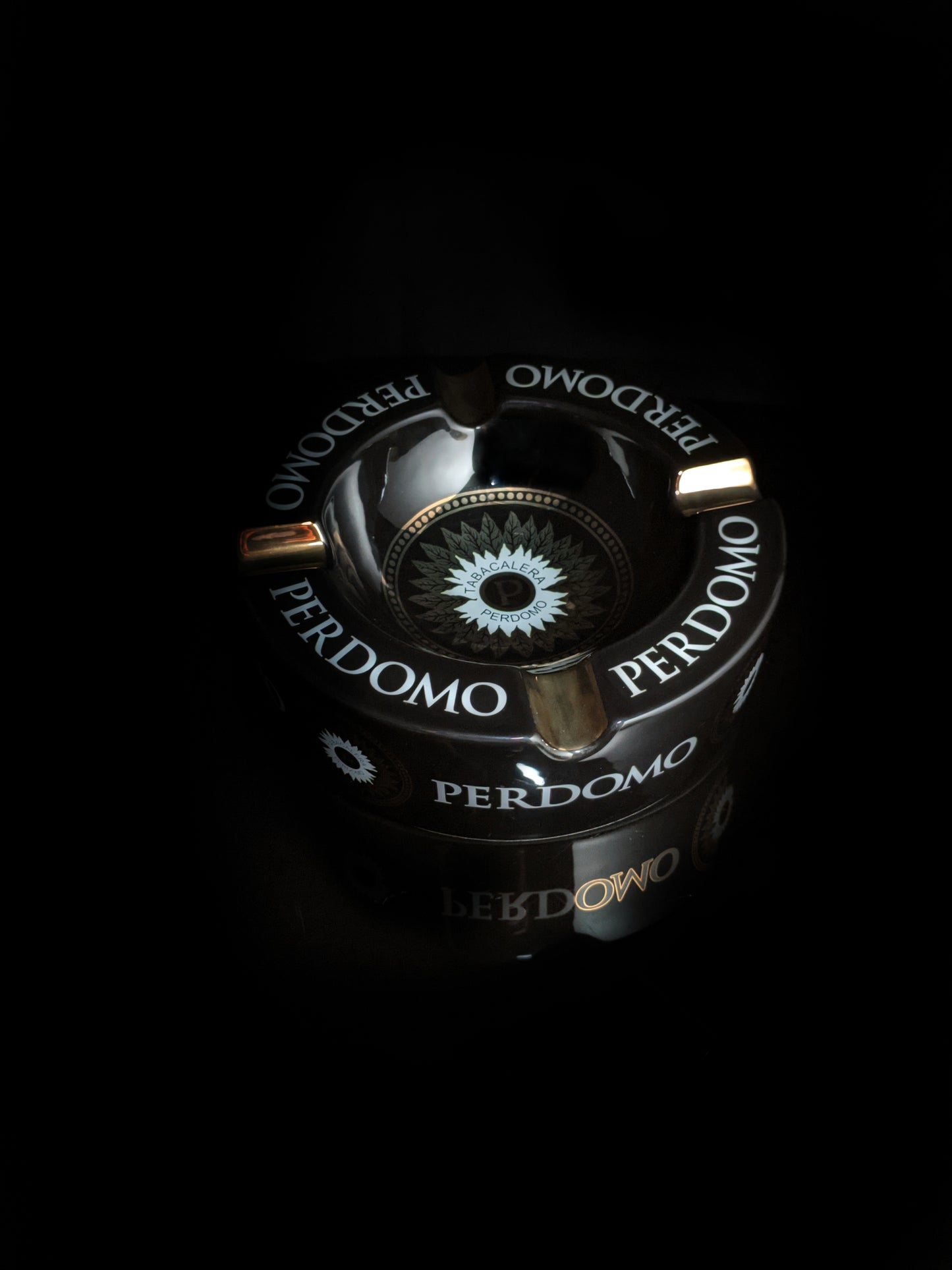 This us a new Perdomo Black and Gold large size ceramic ashtray. Measures 9" Diameter by 3" High. We ship Worldwide fully insured.