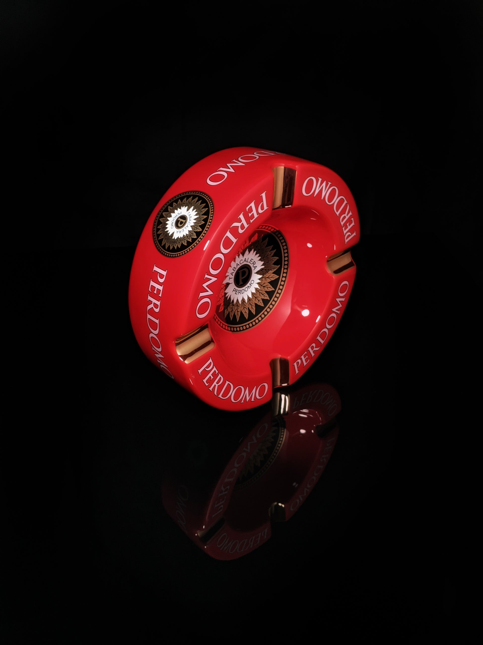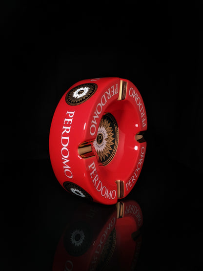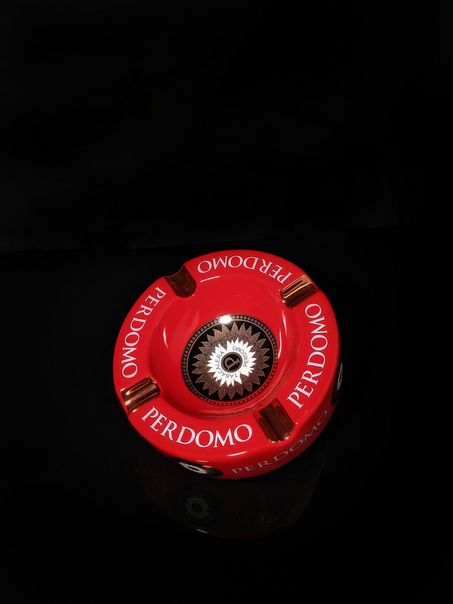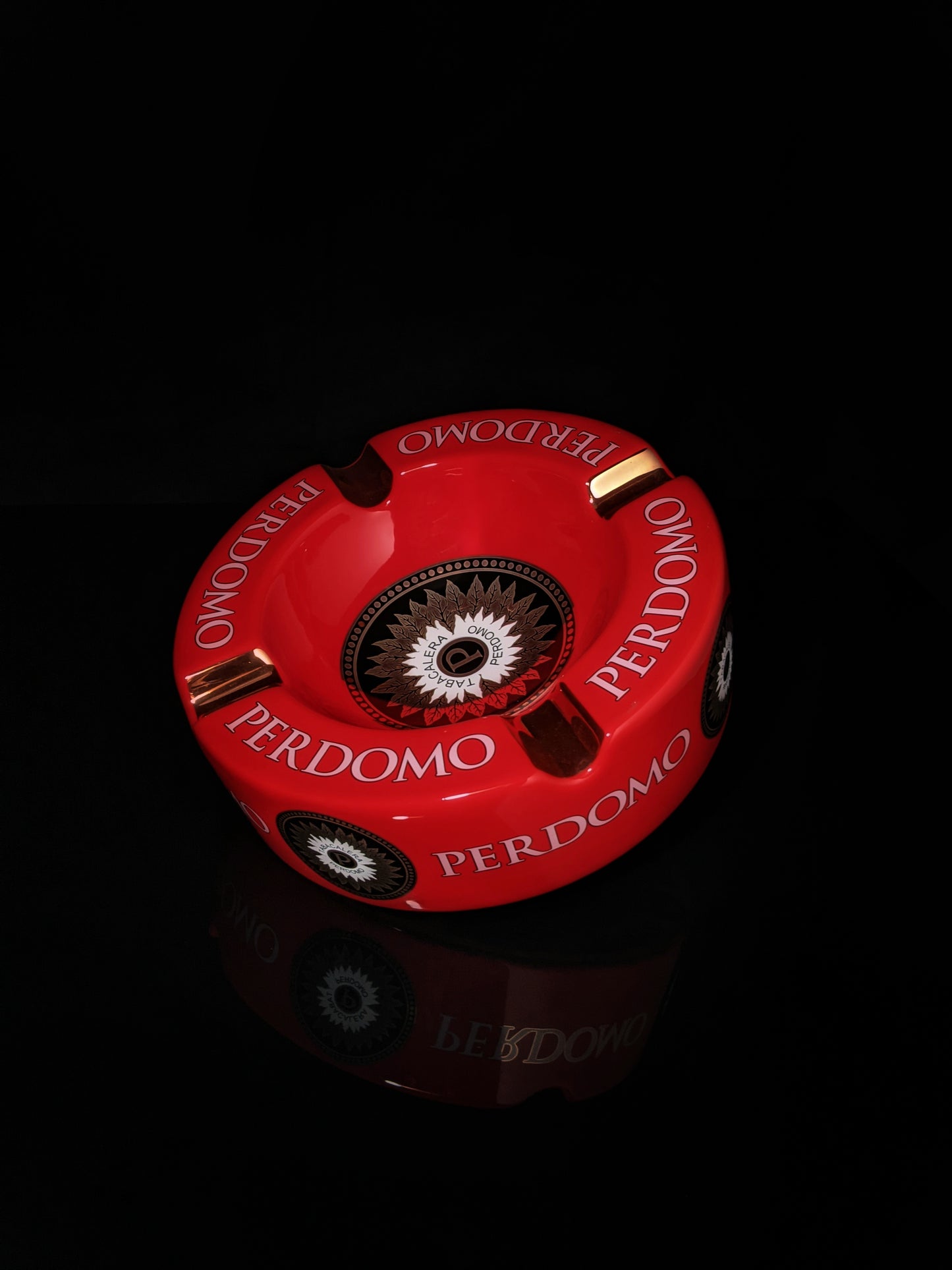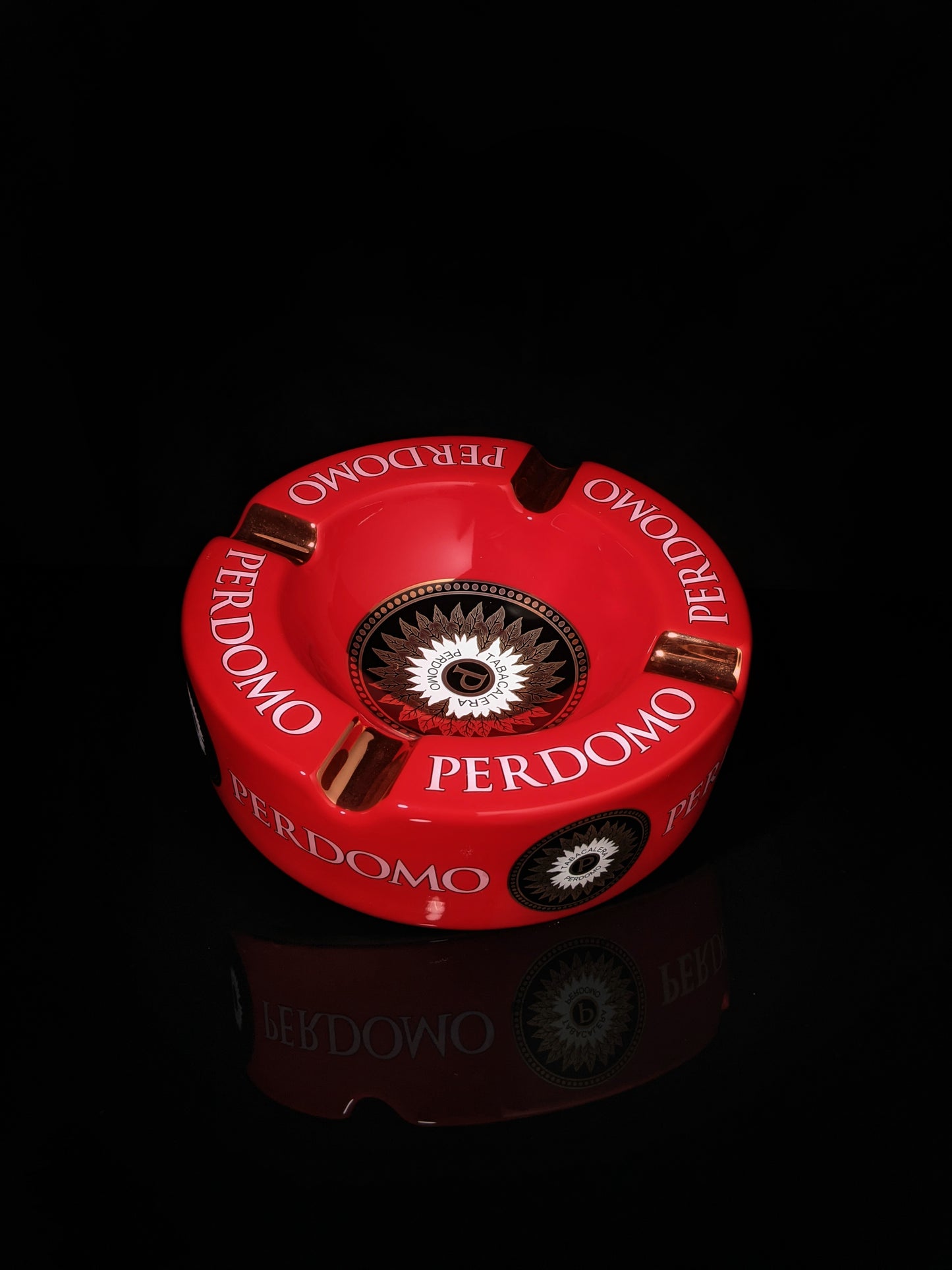 This is a new Perdomo Red and Gold large size ceramic ashtray. Measures 9" Diameter by 3" High. We ship Worldwide fully insured.