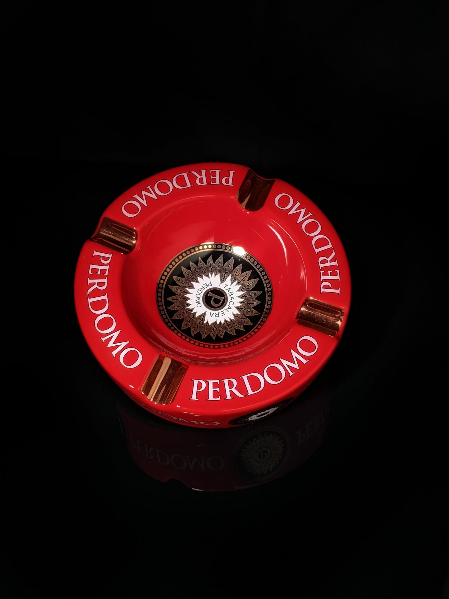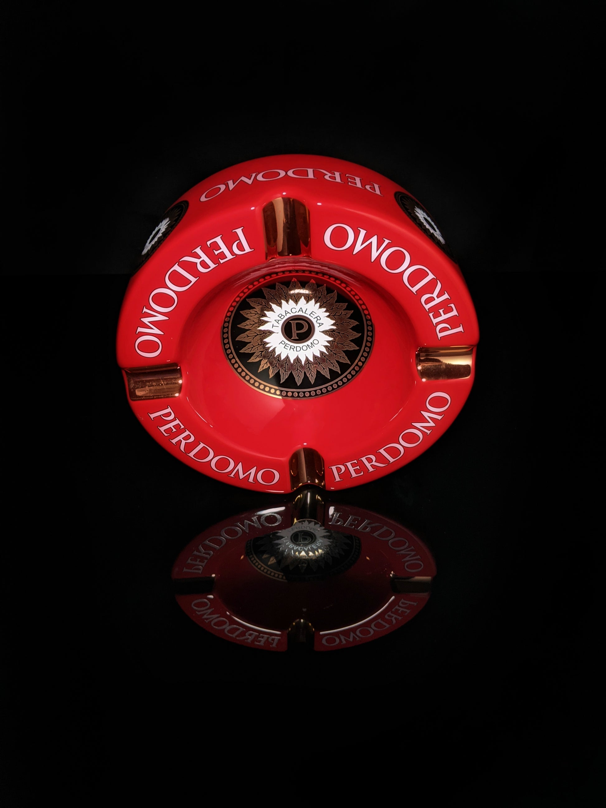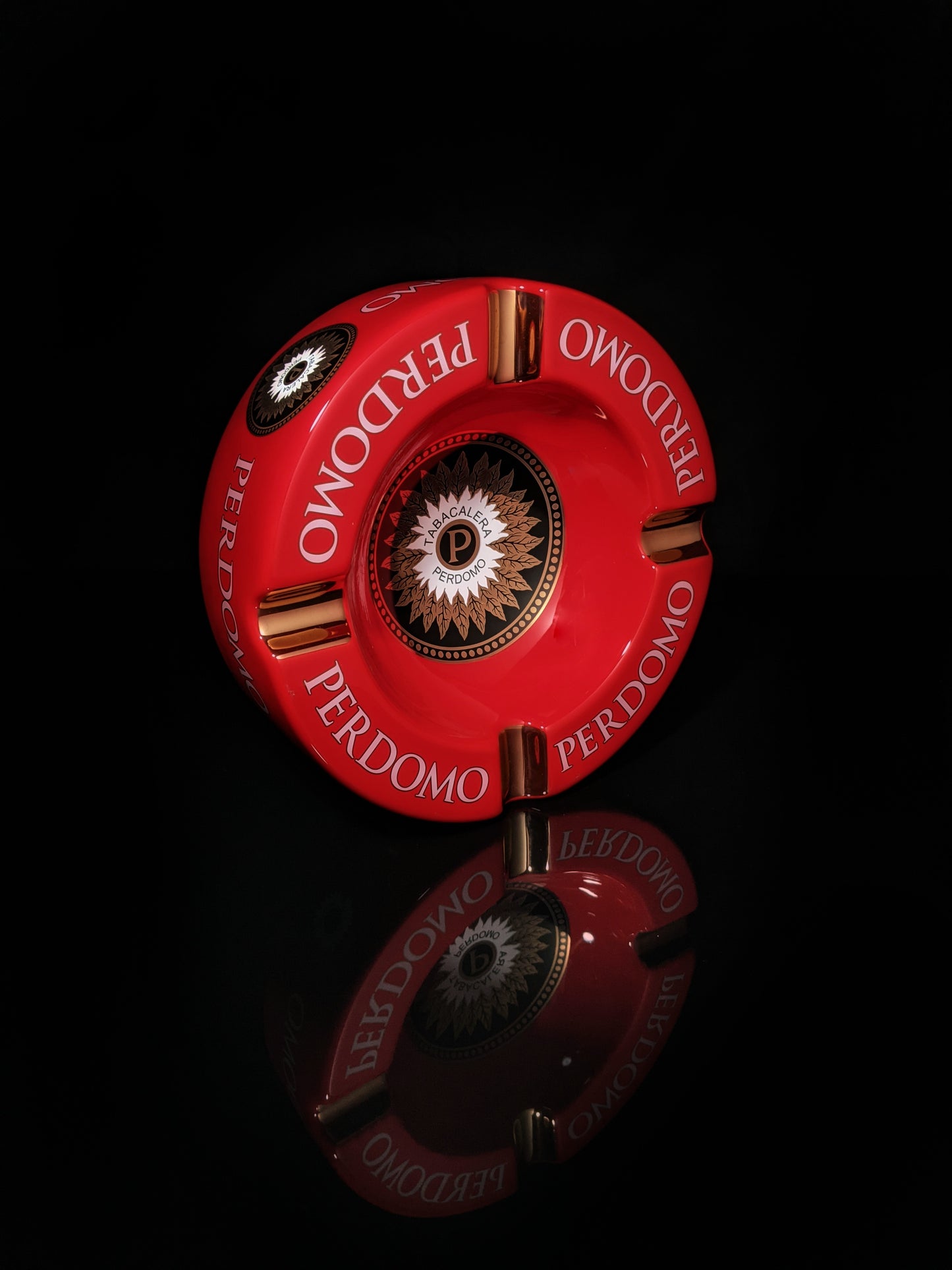 This is a new Perdomo Red and Gold large size ceramic ashtray. Measures 9" Diameter by 3" High. We ship Worldwide fully insured.
