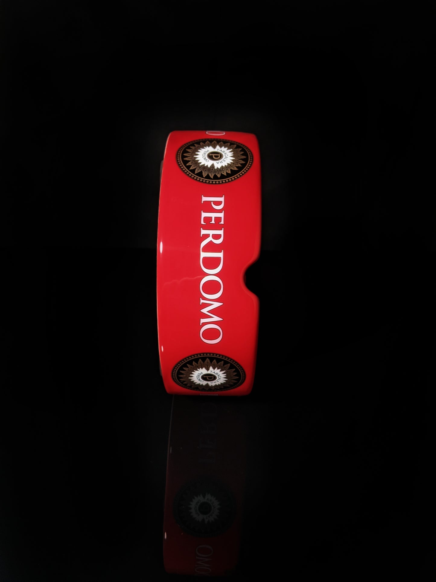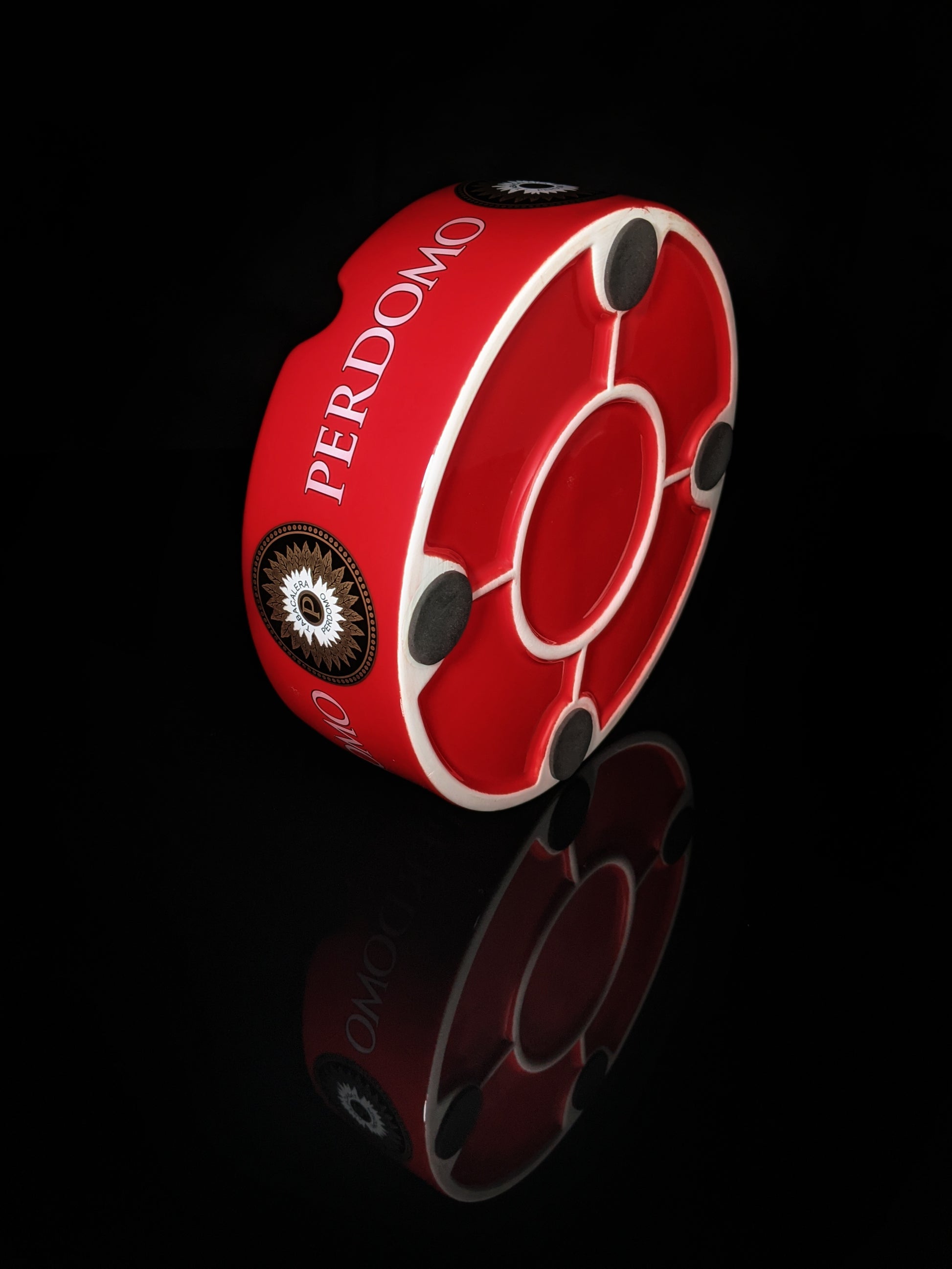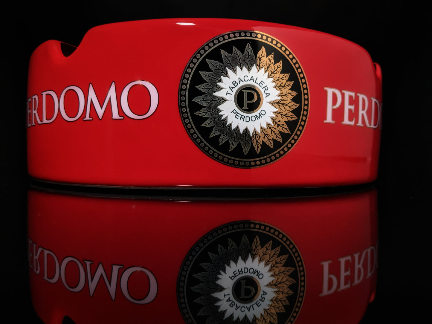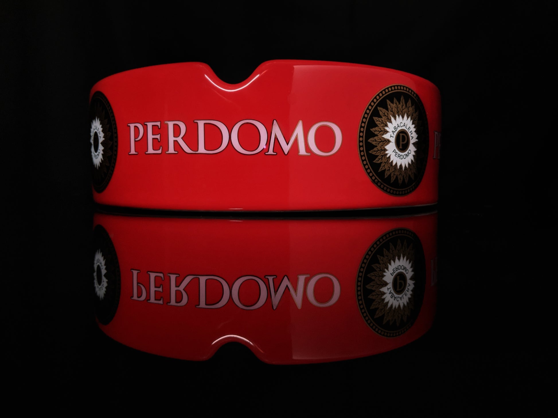 This is a new Perdomo Red and Gold large size ceramic ashtray. Measures 9" Diameter by 3" High. We ship Worldwide fully insured.