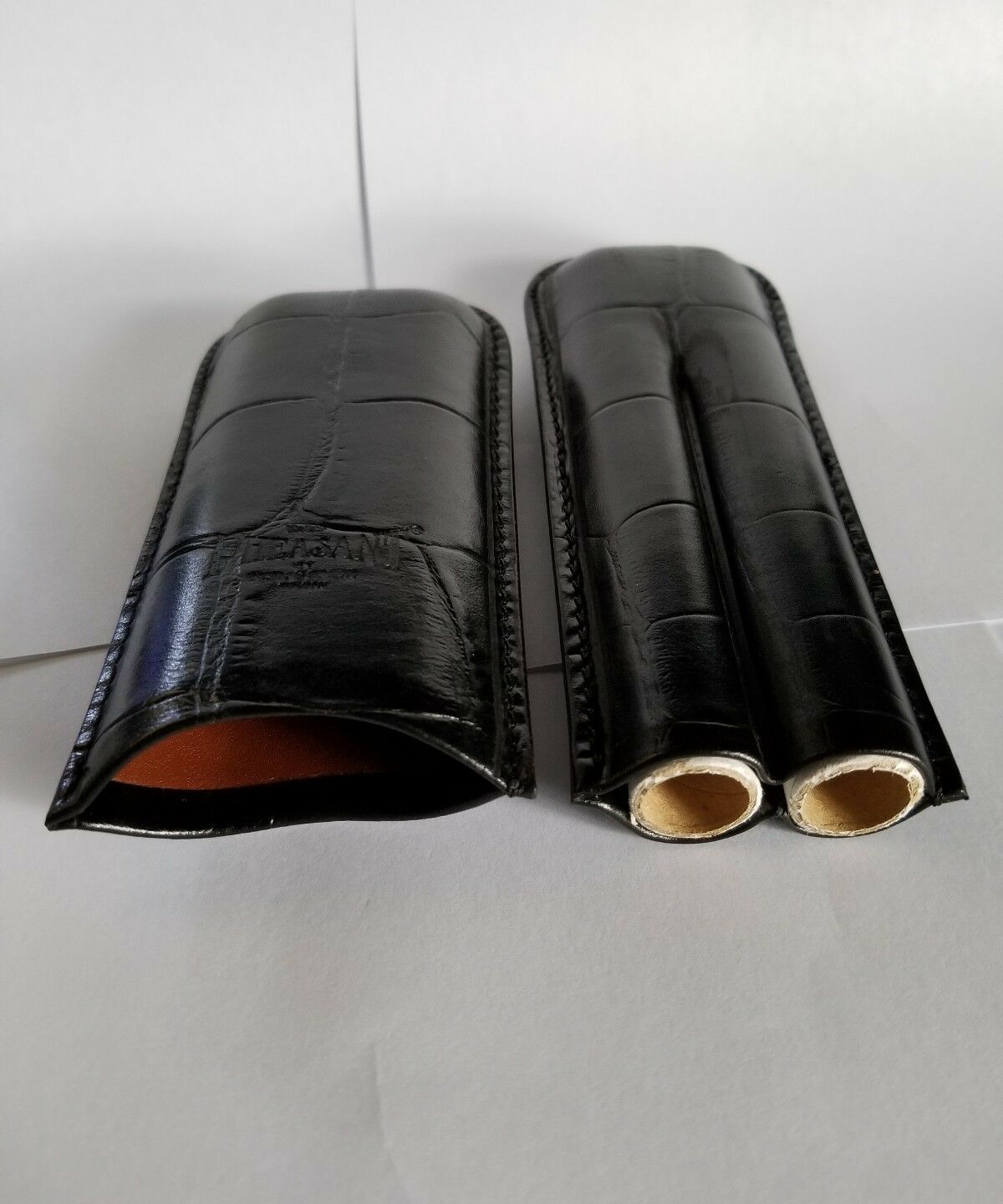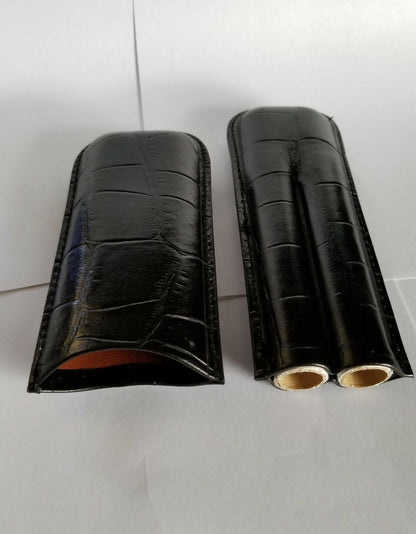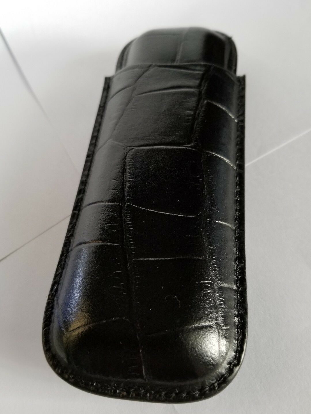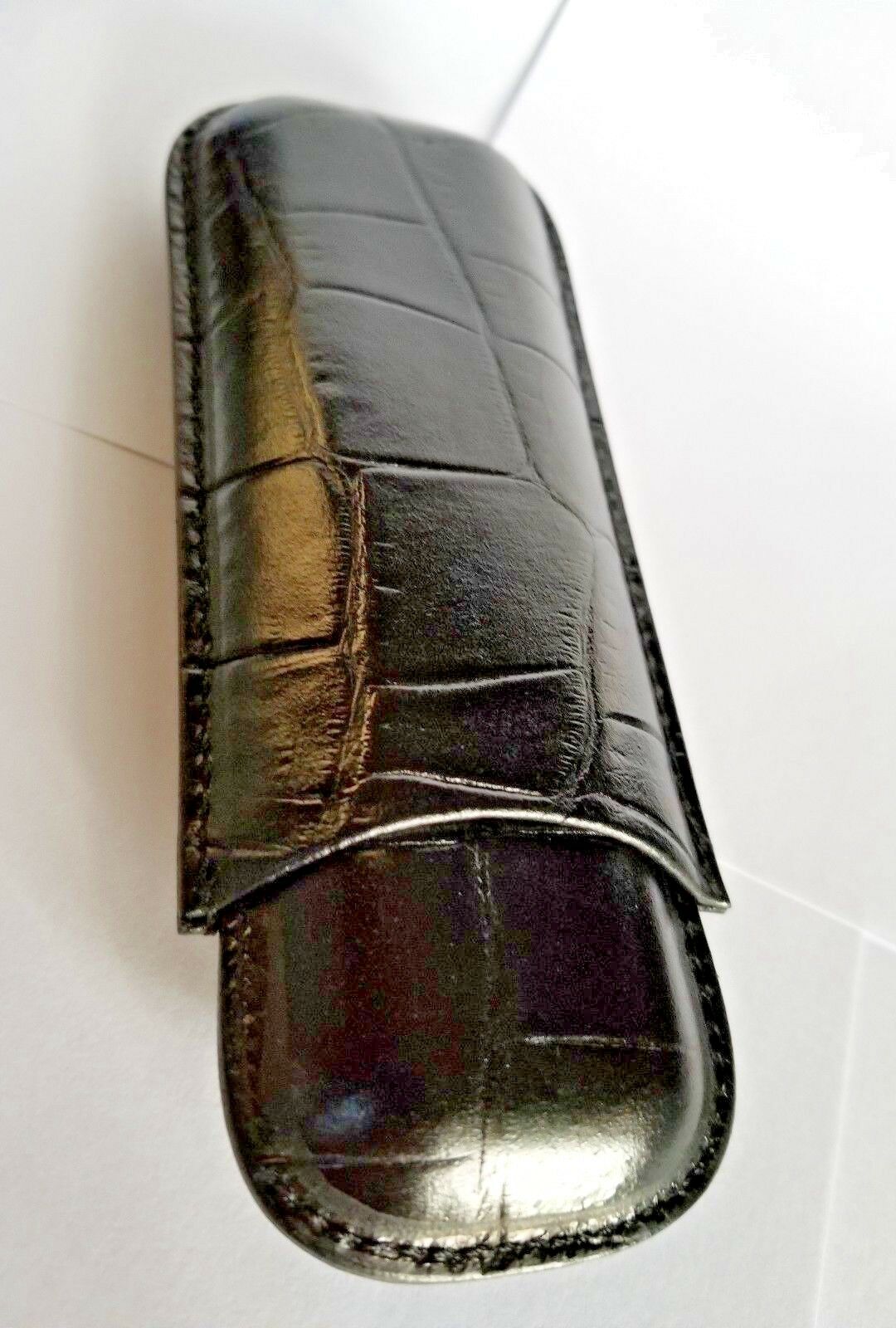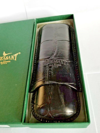 This is a new Pheasant by R.D. Gomez made in Spain . Black Croc type leather cigar carrying case in the original box. Made for 2 size Robusto size cigars to churchill size. 3/4" id and adjustable to 6"-7" . We ship Worldwide fully insured.