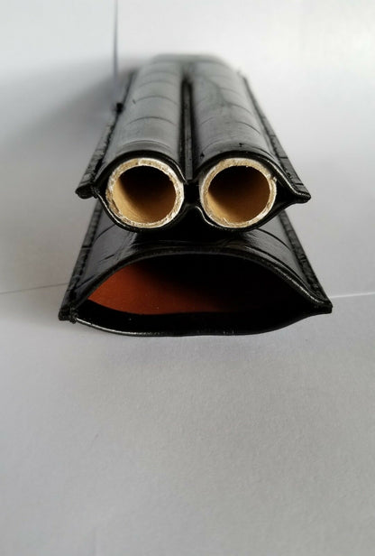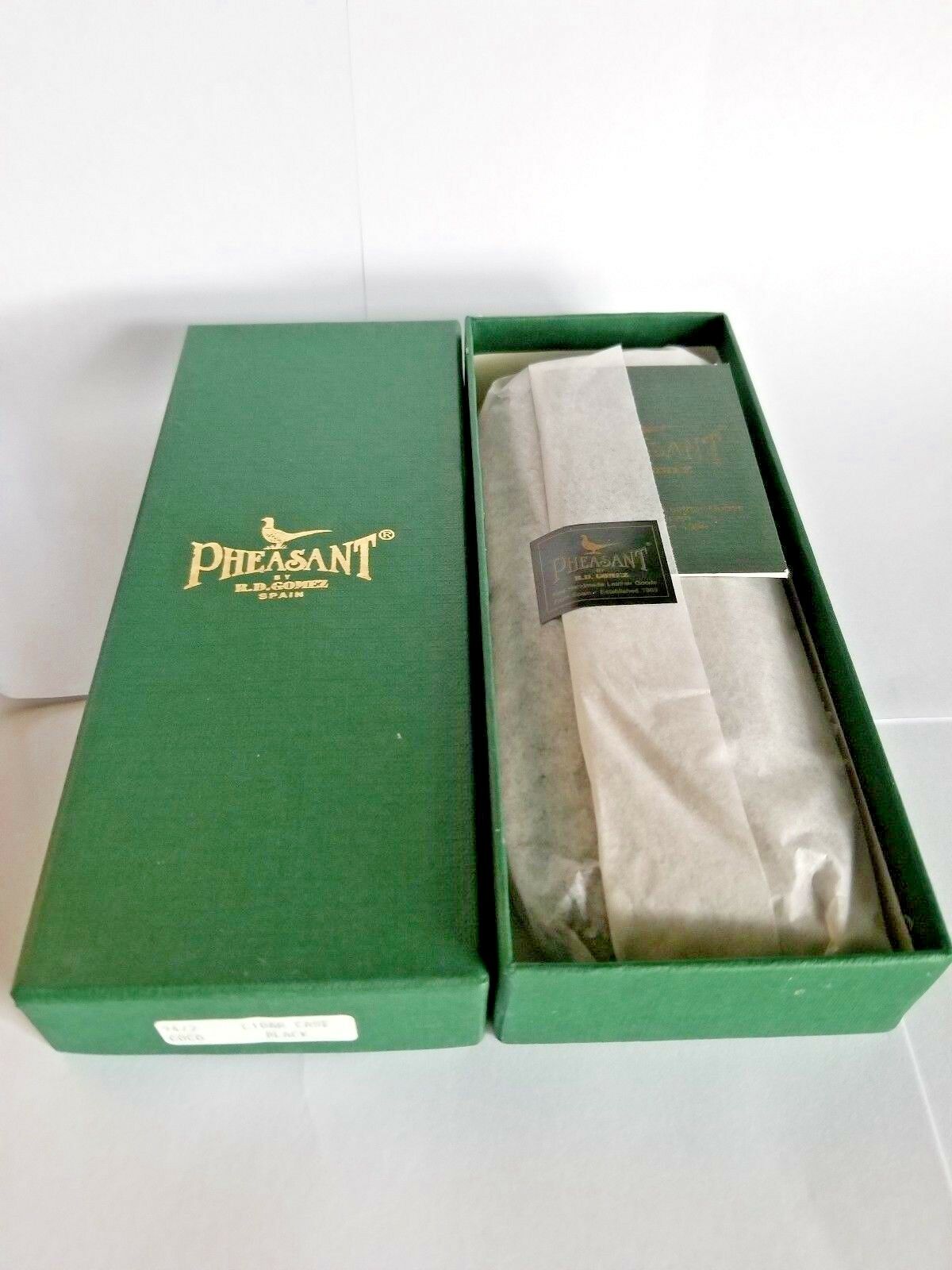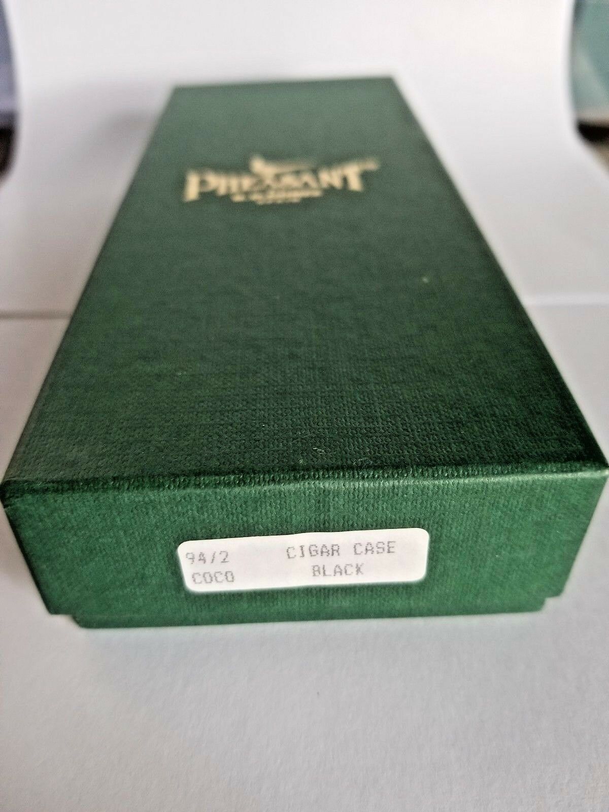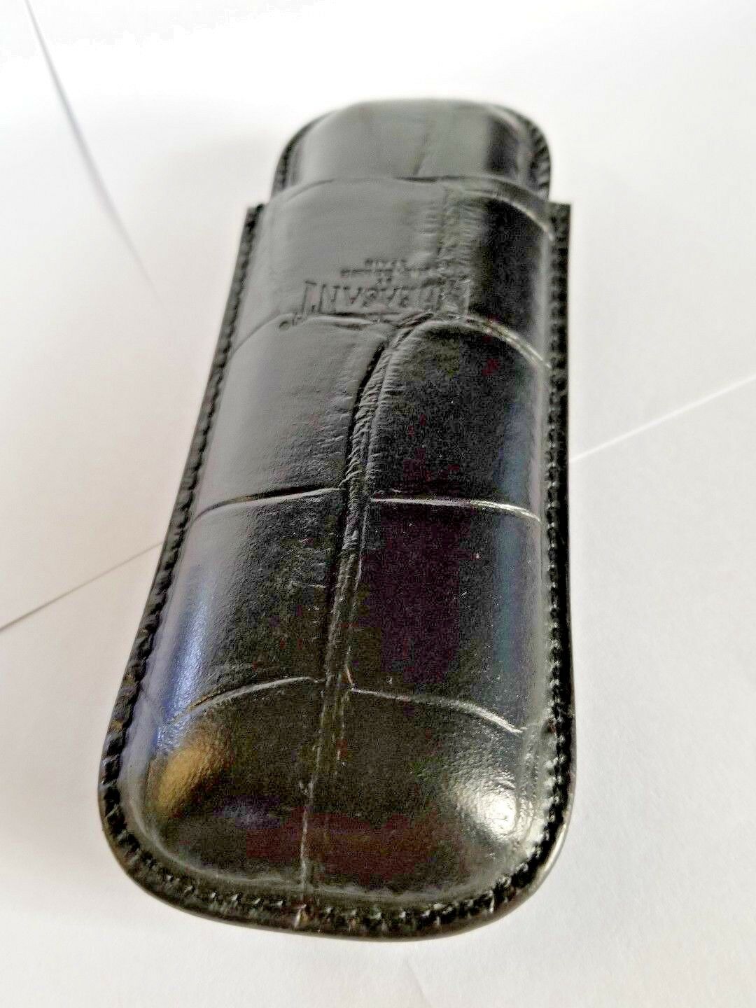 This is a pre-owned Pheasant by R.D. Gomez made in Spain . Black Croc type leather cigar carrying case in the original box. Made for 2 size Robusto size cigars to churchill size. 3/4" id and adjustable to 6"-7" . Has some chaffing on the enter sliding holder. We ship Worldwide fully insured.